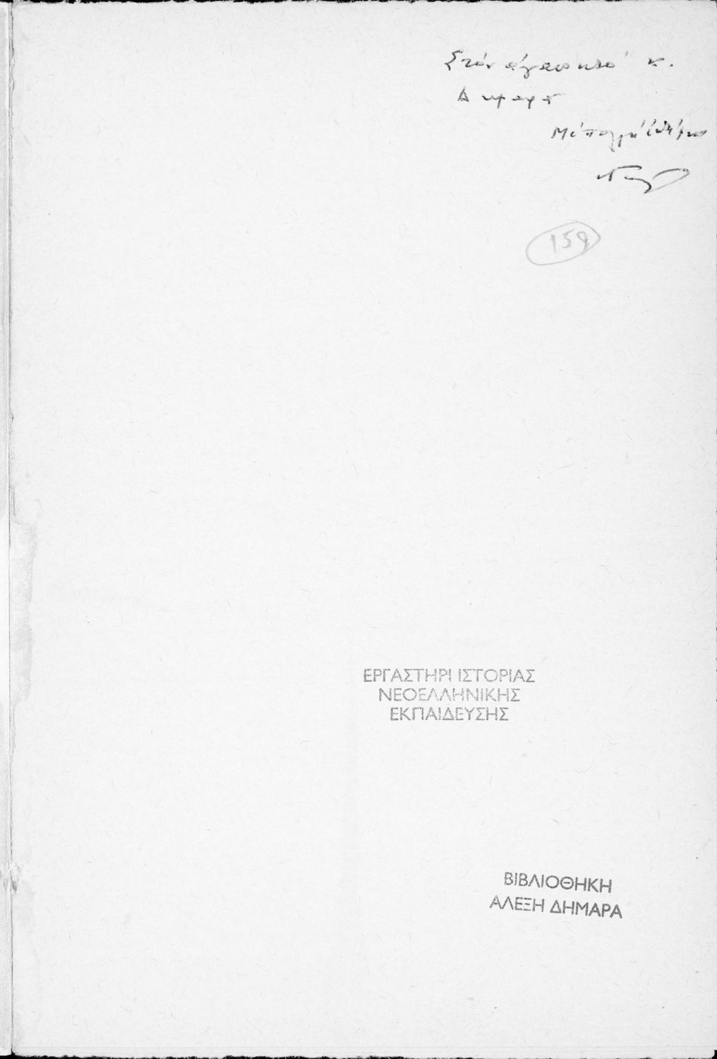 Εντοπισμός πρωτοτύπου: Εργαστήρι Ιστορίας Ν.Ε. Εκπαίδευσης, Πανεπιστήμιο Ιωαννίνων Κωδικός βιβλιοθήκης: 159 |