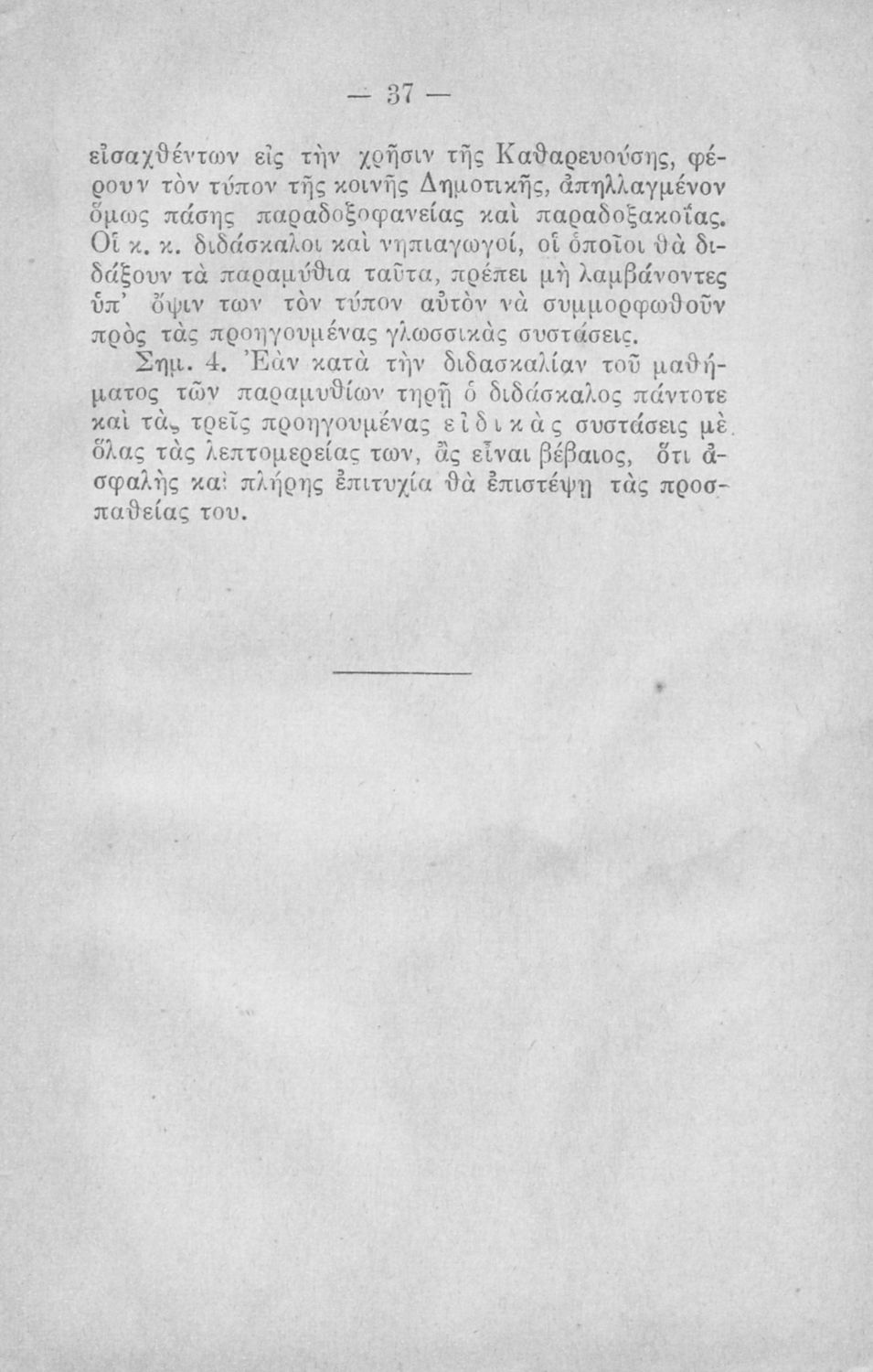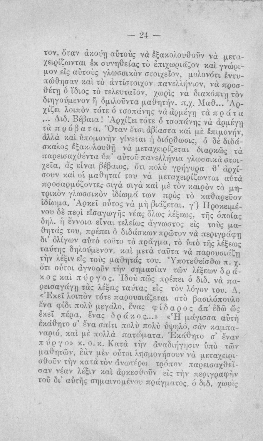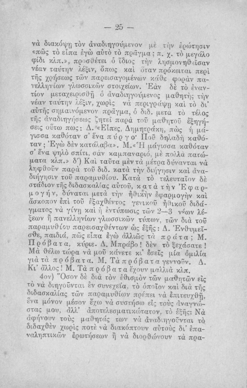 Βαθμίδα εκπαίδευσης: Πρωτοβάθμια Γλώσσα: Καθαρεύουσα Παρουσίαση περιεχομένου: Παιδαγωγικό βοήθημα το οποίο σκοπό είχε τη θεωρητική και πρακτική προετοιμασία των δασκάλων στη διδασκαλία των παραμυθιών στο Νηπιαγωγείο και το Δημοτικό. |