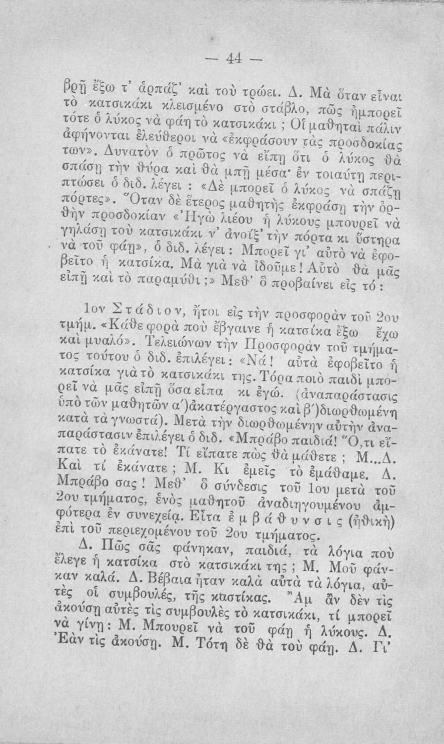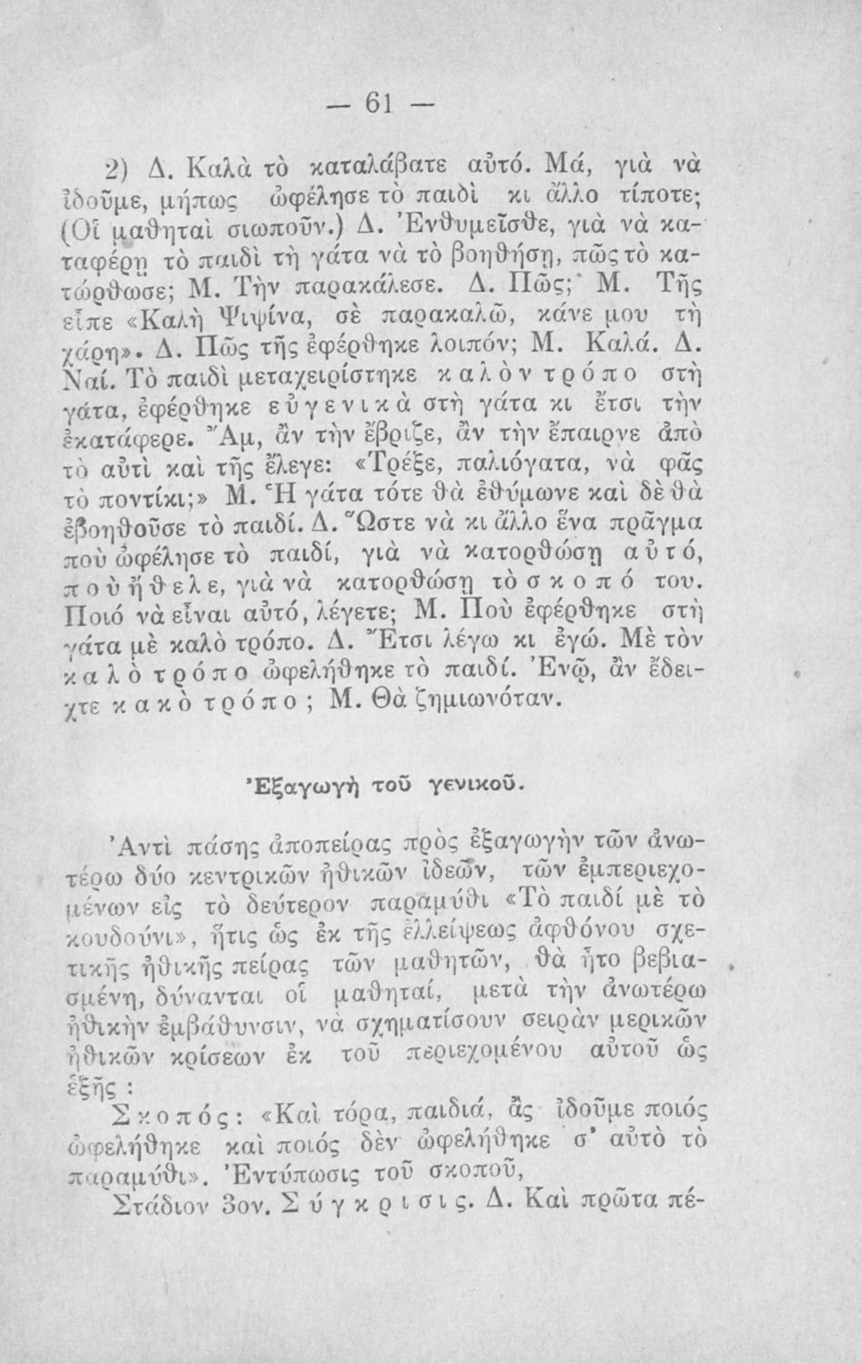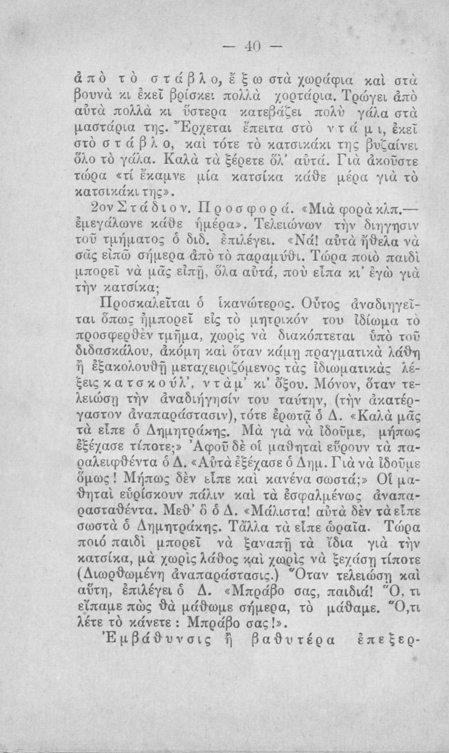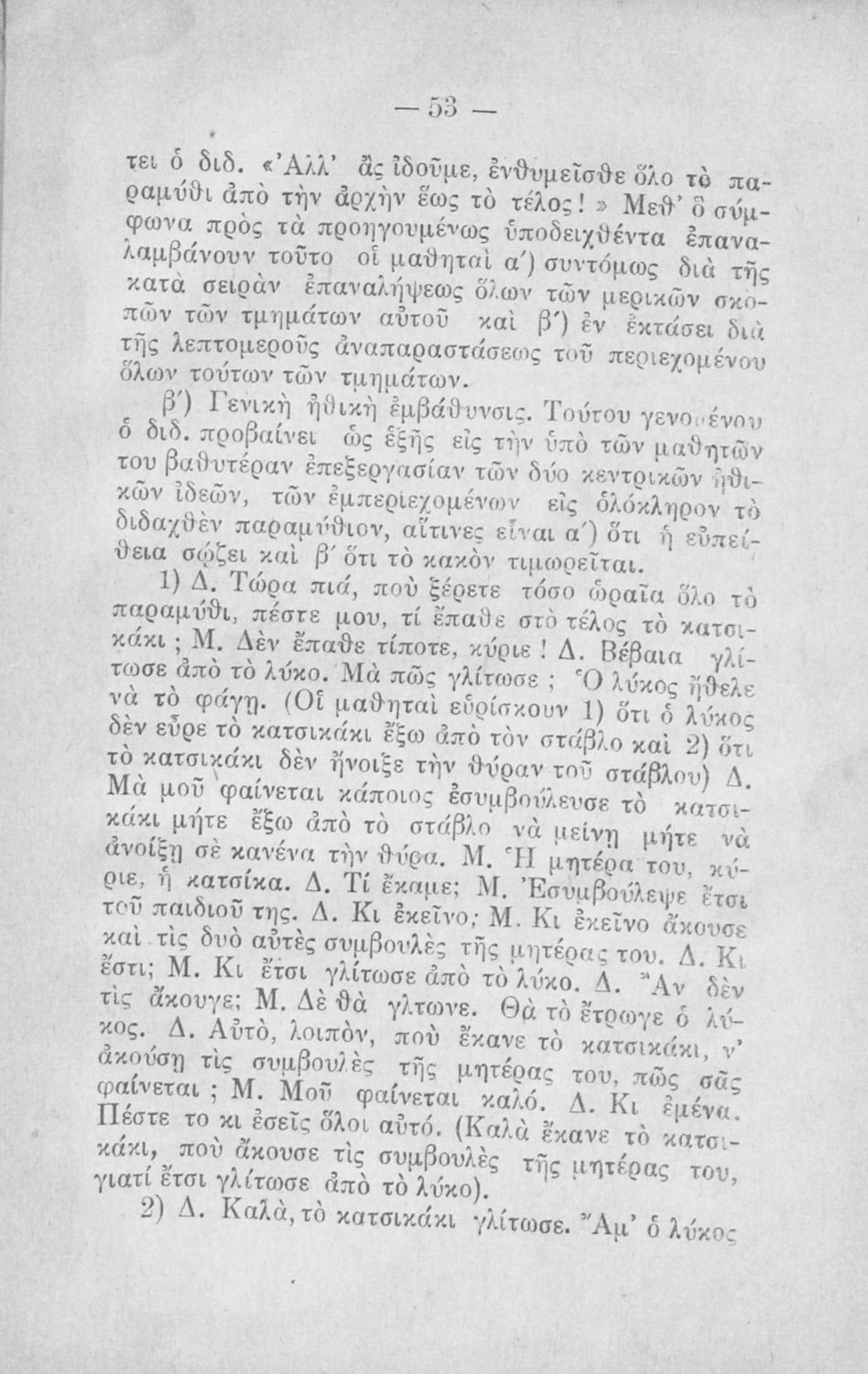 Βαθμίδα εκπαίδευσης: Πρωτοβάθμια Γλώσσα: Καθαρεύουσα Παρουσίαση περιεχομένου: Παιδαγωγικό βοήθημα το οποίο σκοπό είχε τη θεωρητική και πρακτική προετοιμασία των δασκάλων στη διδασκαλία των παραμυθιών στο Νηπιαγωγείο και το Δημοτικό. |