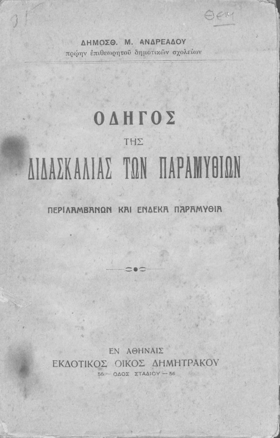 Παιδαγωγικό βοήθημα το οποίο σκοπό είχε τη θεωρητική και πρακτική προετοιμασία των δασκάλων στη διδασκαλία των παραμυθιών στο Νηπιαγωγείο και το Δημοτικό.