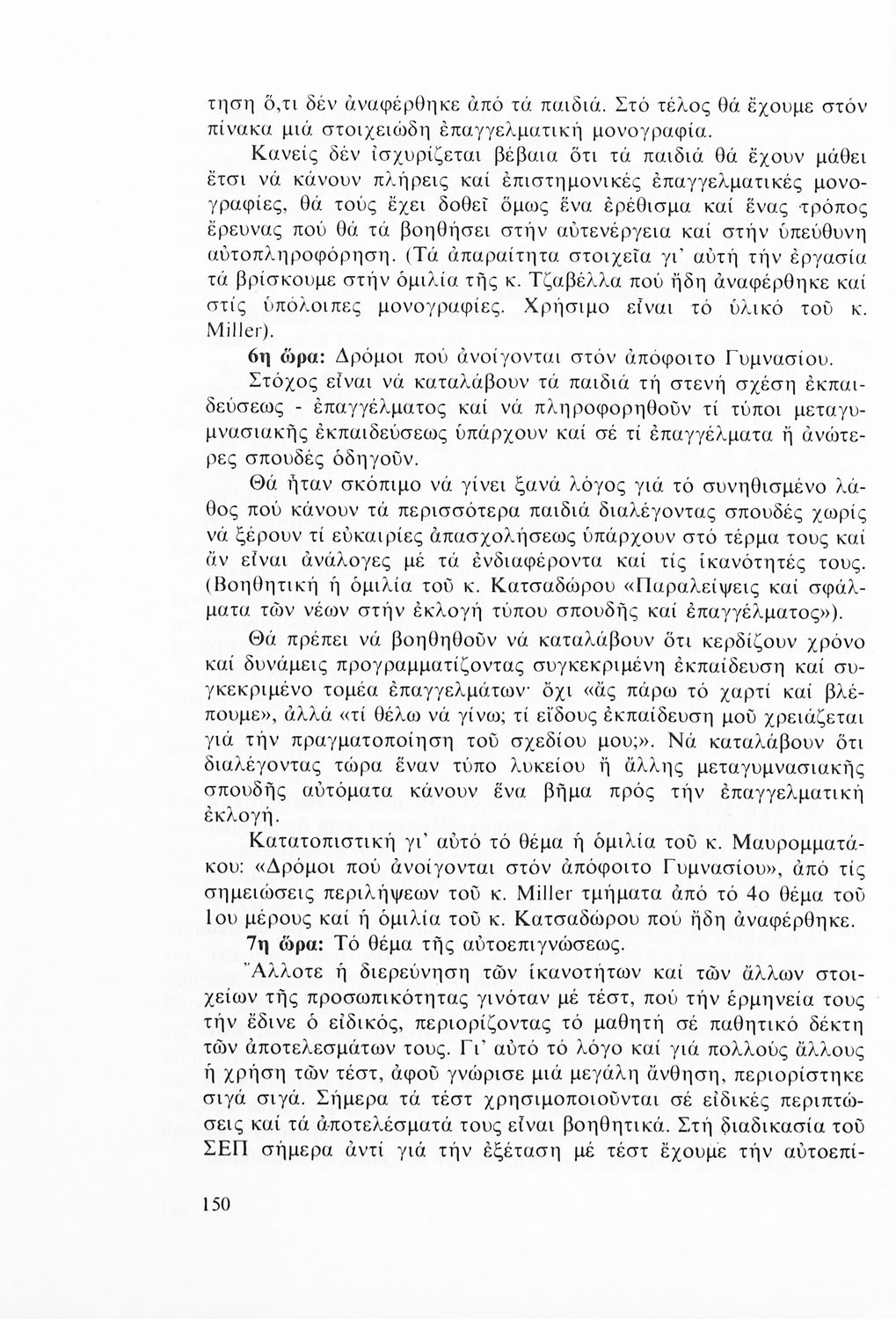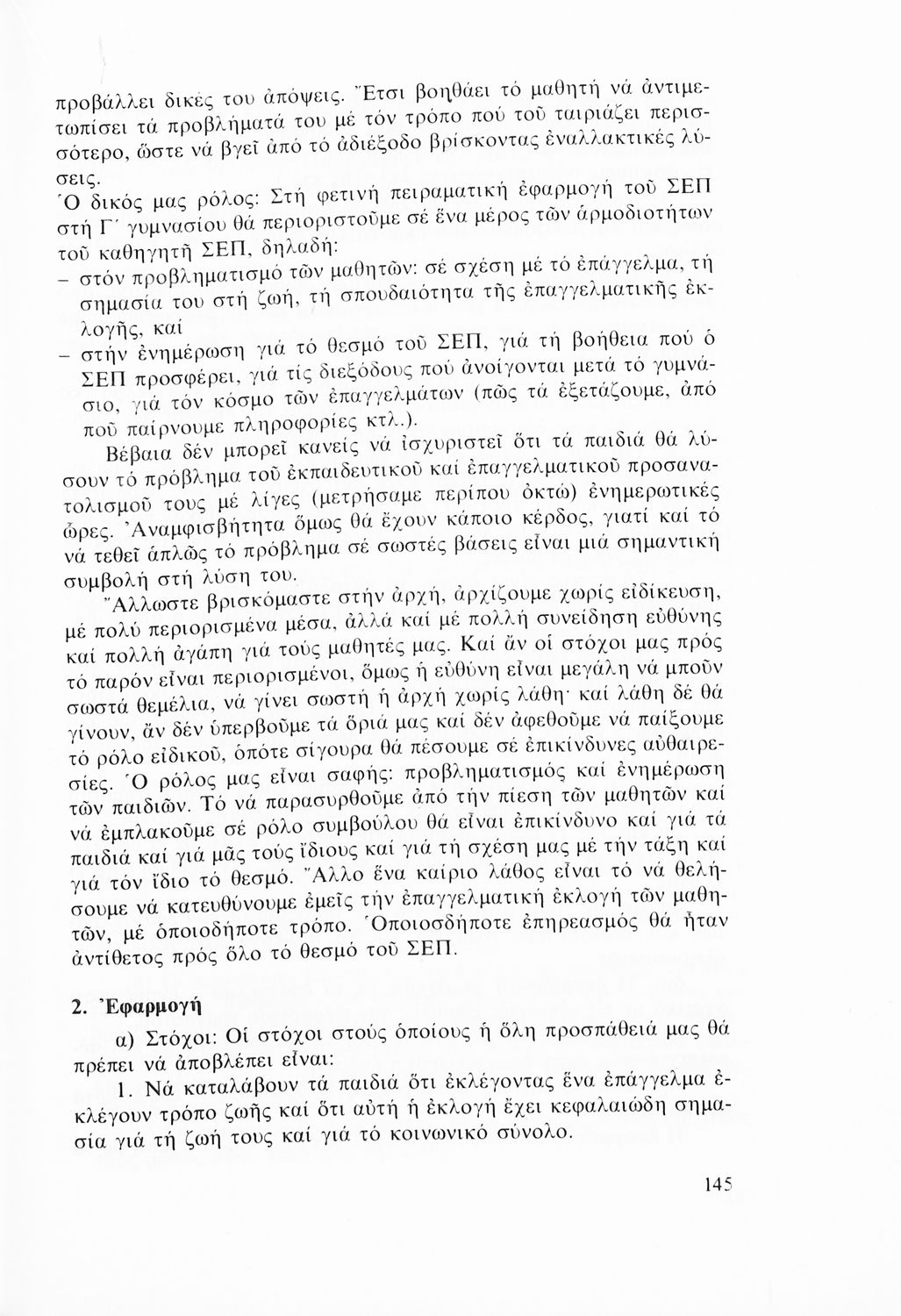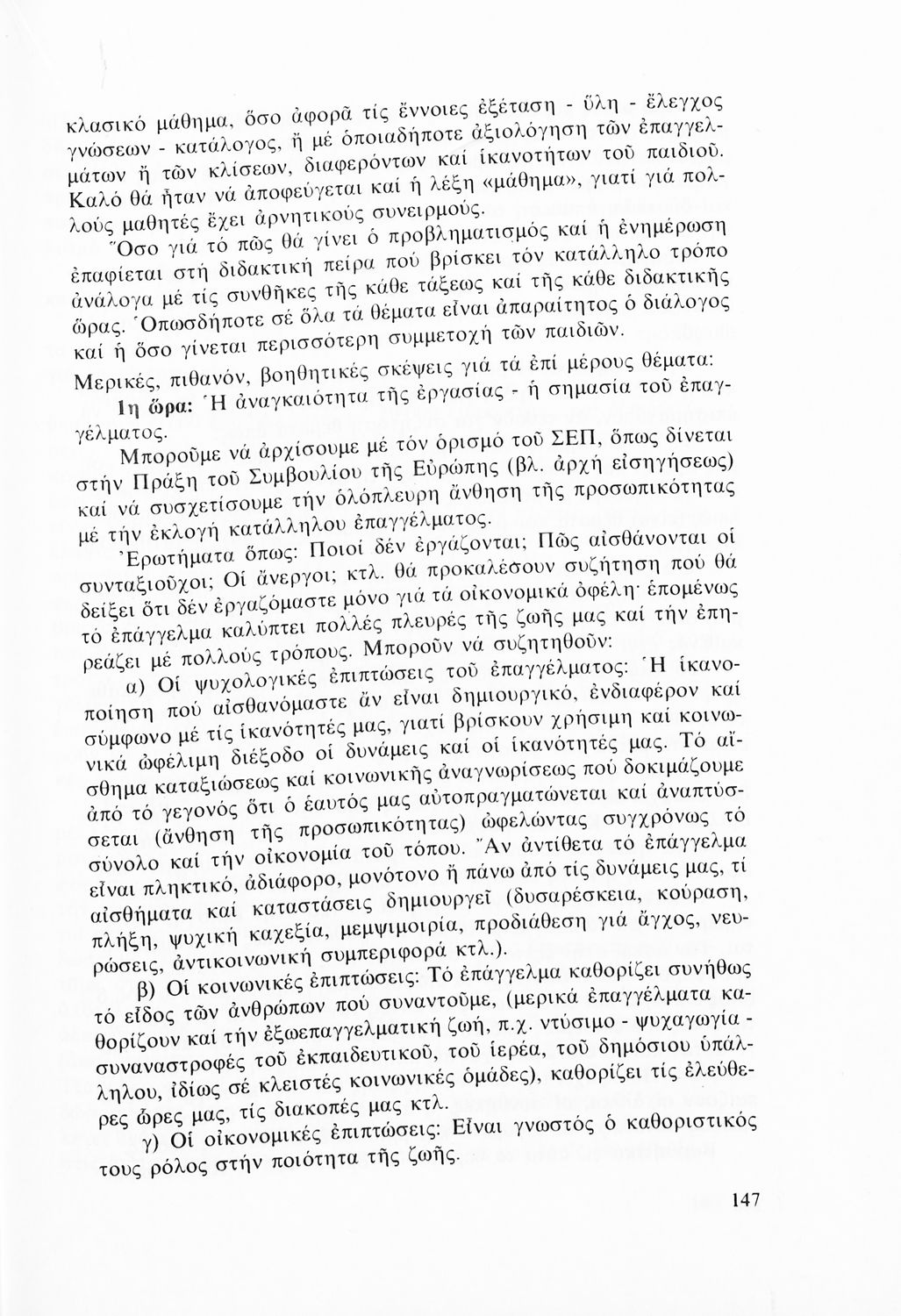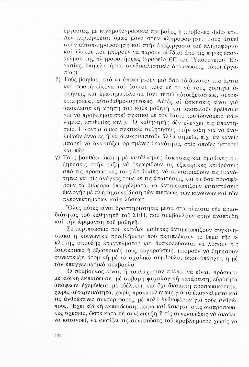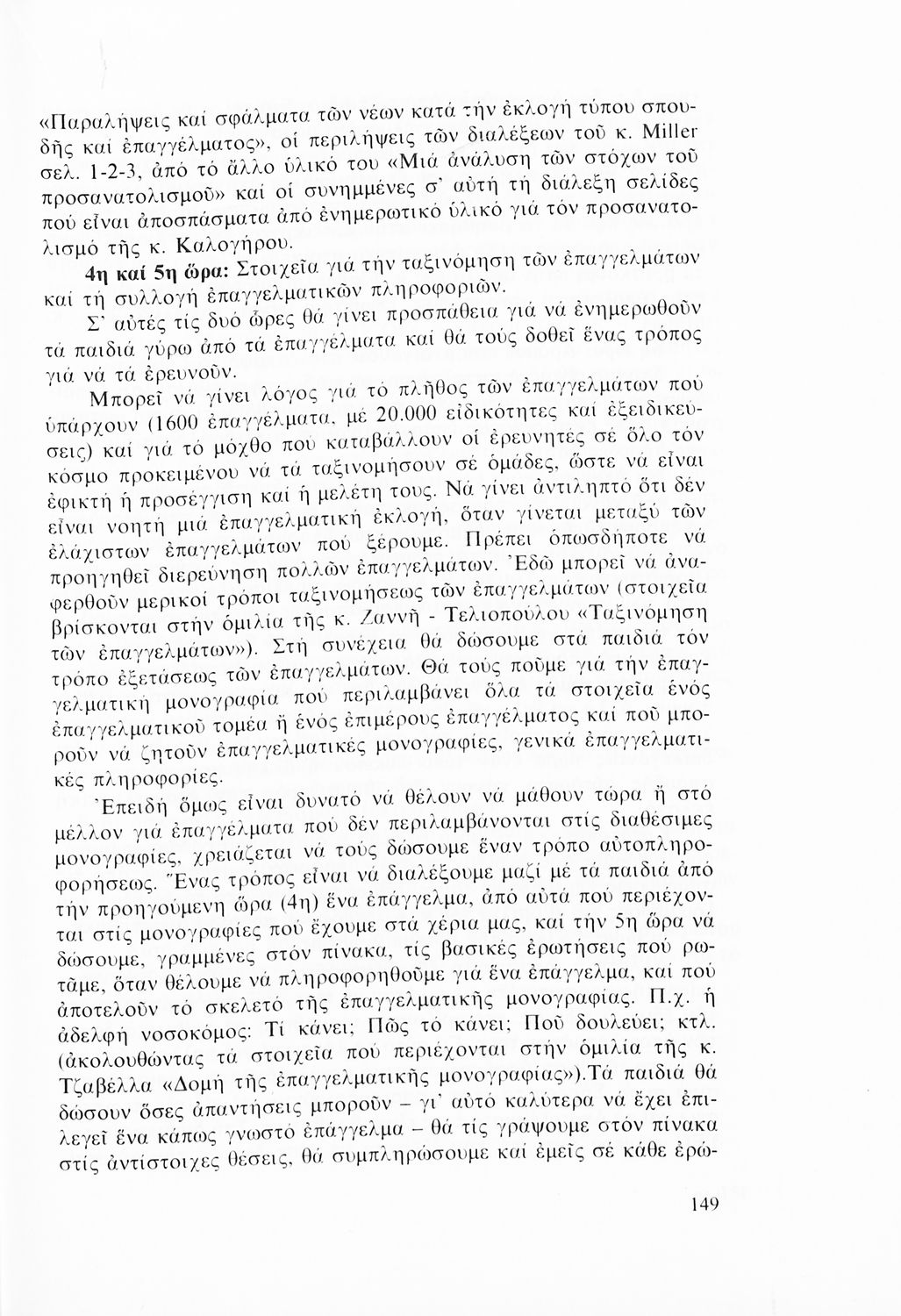 Σχολικό εγχειρίδιο Επαγγελματικού Προσανατολισμού για τις Β΄ και Γ΄ Γυμνασίου που περιέχει γενικές αρχές επαγγελματικής σταδιοδρομίας και συγκεκριμένες πληροφορίες για την επιστημονική εξέλιξη και ...