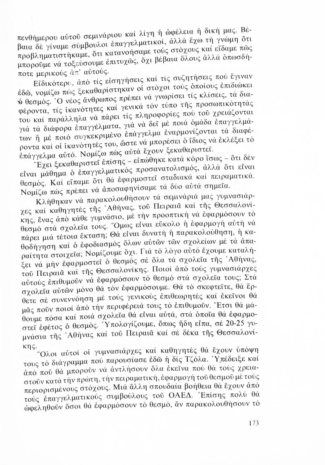 Τόμος που περιλαμβάνει τα πρακτικά και τις συζητήσεις τριών ειδικών σεμιναρίων που οργανώθηκαν από το ΚΕΜΕ και τον ΟΑΕΔ για να προωθήσουν την εισαγωγή του Σχολικού Προσανατολισμού στην εκπαίδευση.