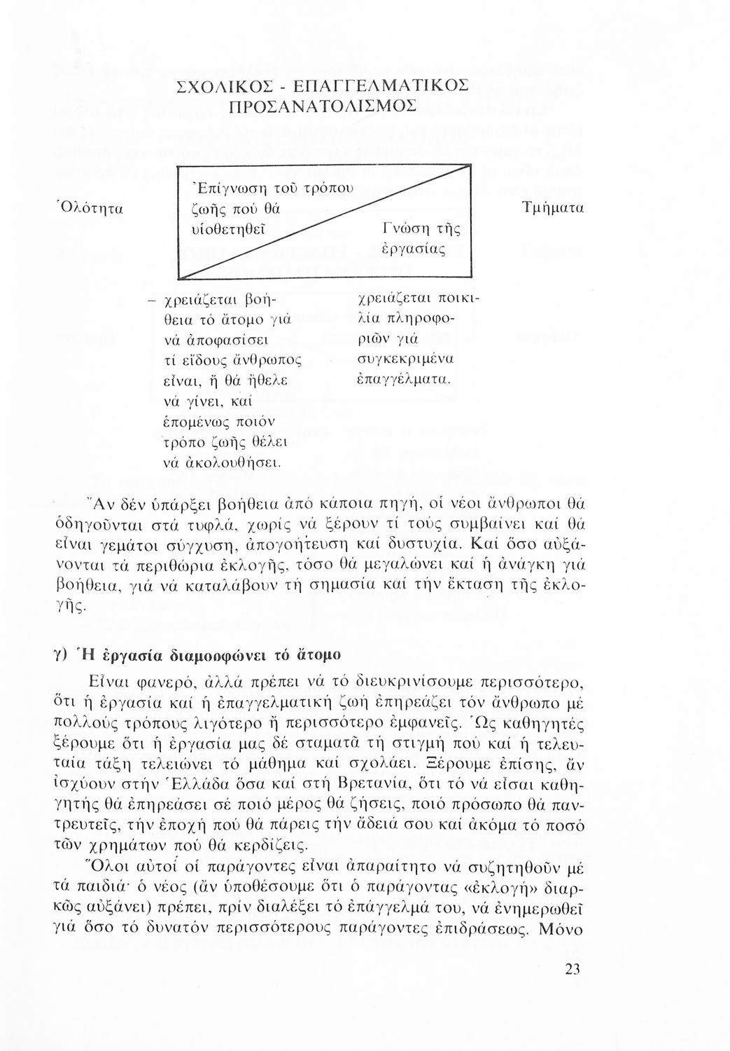 Σχολικό εγχειρίδιο Επαγγελματικού Προσανατολισμού για τις Β΄ και Γ΄ Γυμνασίου που περιέχει γενικές αρχές επαγγελματικής σταδιοδρομίας και συγκεκριμένες πληροφορίες για την επιστημονική εξέλιξη και ...