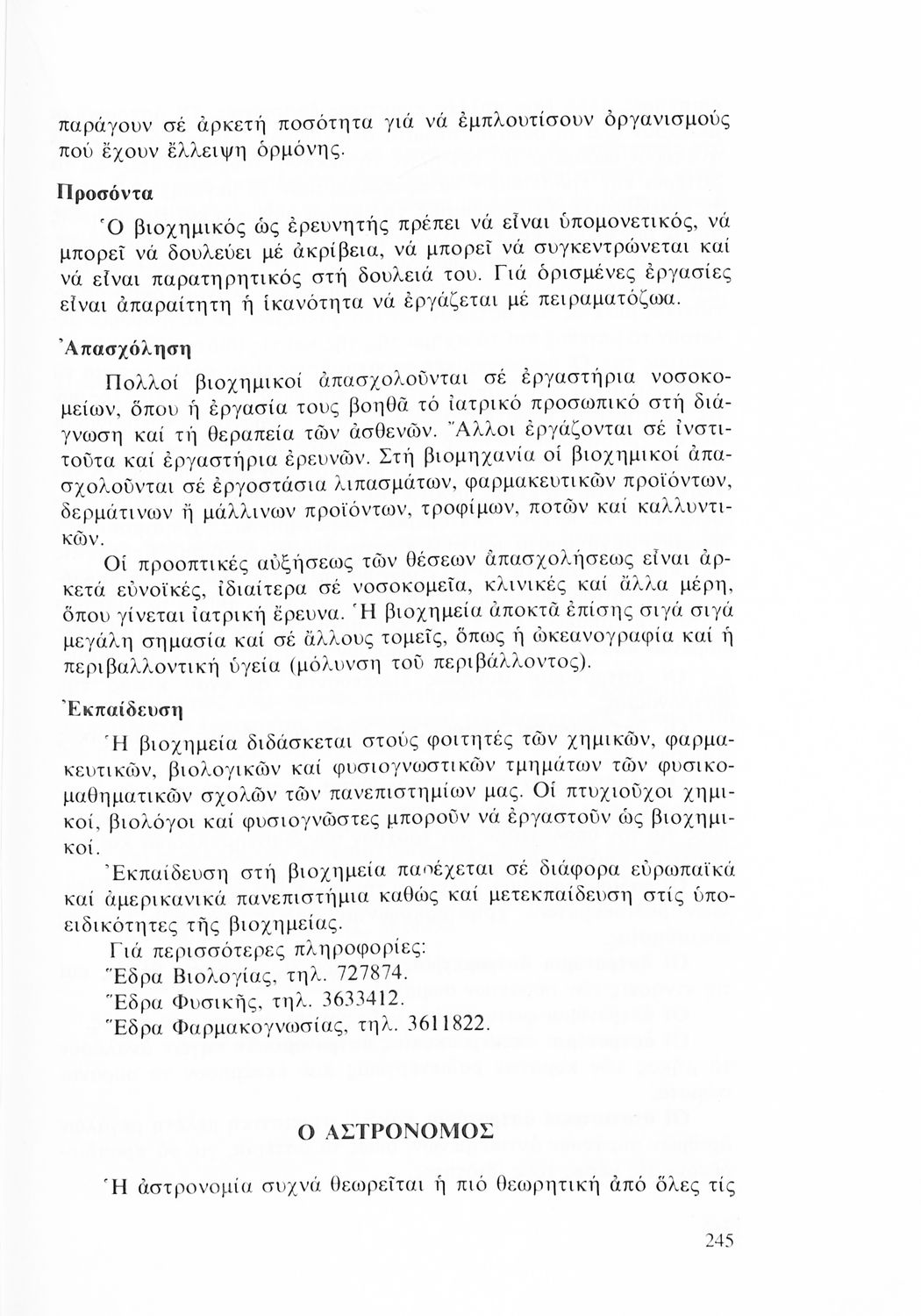 Μαθητικό βοήθημα Επαγγελματικού Προσανατολισμού για τους μαθητές και σπουδαστές που περιέχει πληροφορίες για τις πανεπιστημιακές, επαγγελματικές νυχτερινές κλπ σχολές. Ο συγγραφέας ήταν υπάλληλος της Κεντρικής