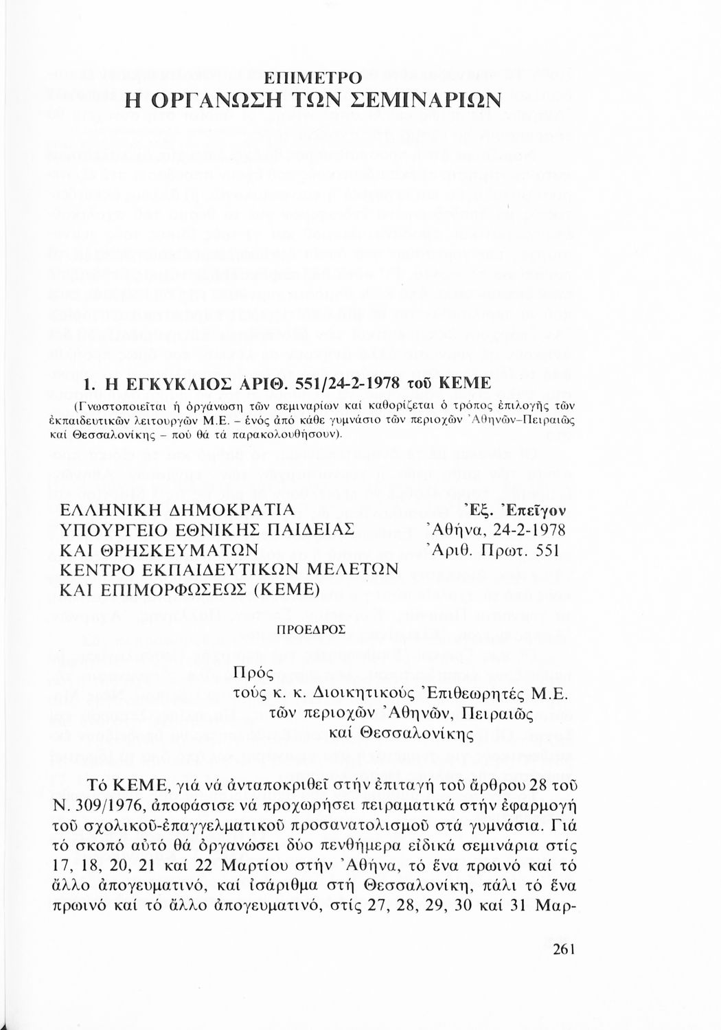 Τόμος που περιλαμβάνει τα πρακτικά και τις συζητήσεις τριών ειδικών σεμιναρίων που οργανώθηκαν από το ΚΕΜΕ και τον ΟΑΕΔ για να προωθήσουν την εισαγωγή του Σχολικού Προσανατολισμού στην εκπαίδευση.