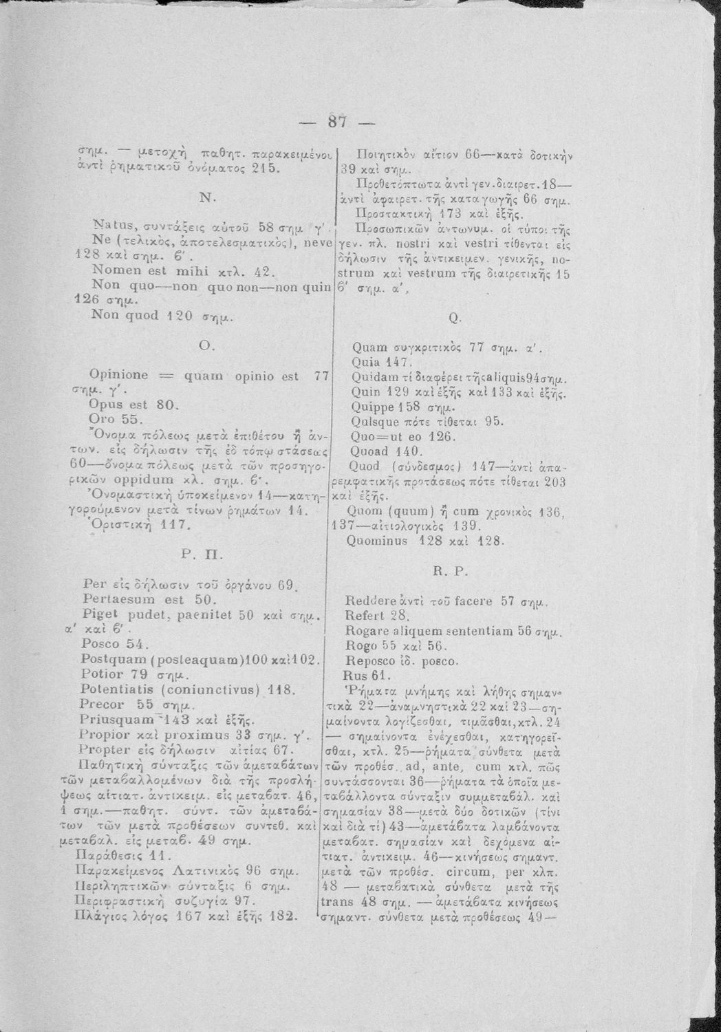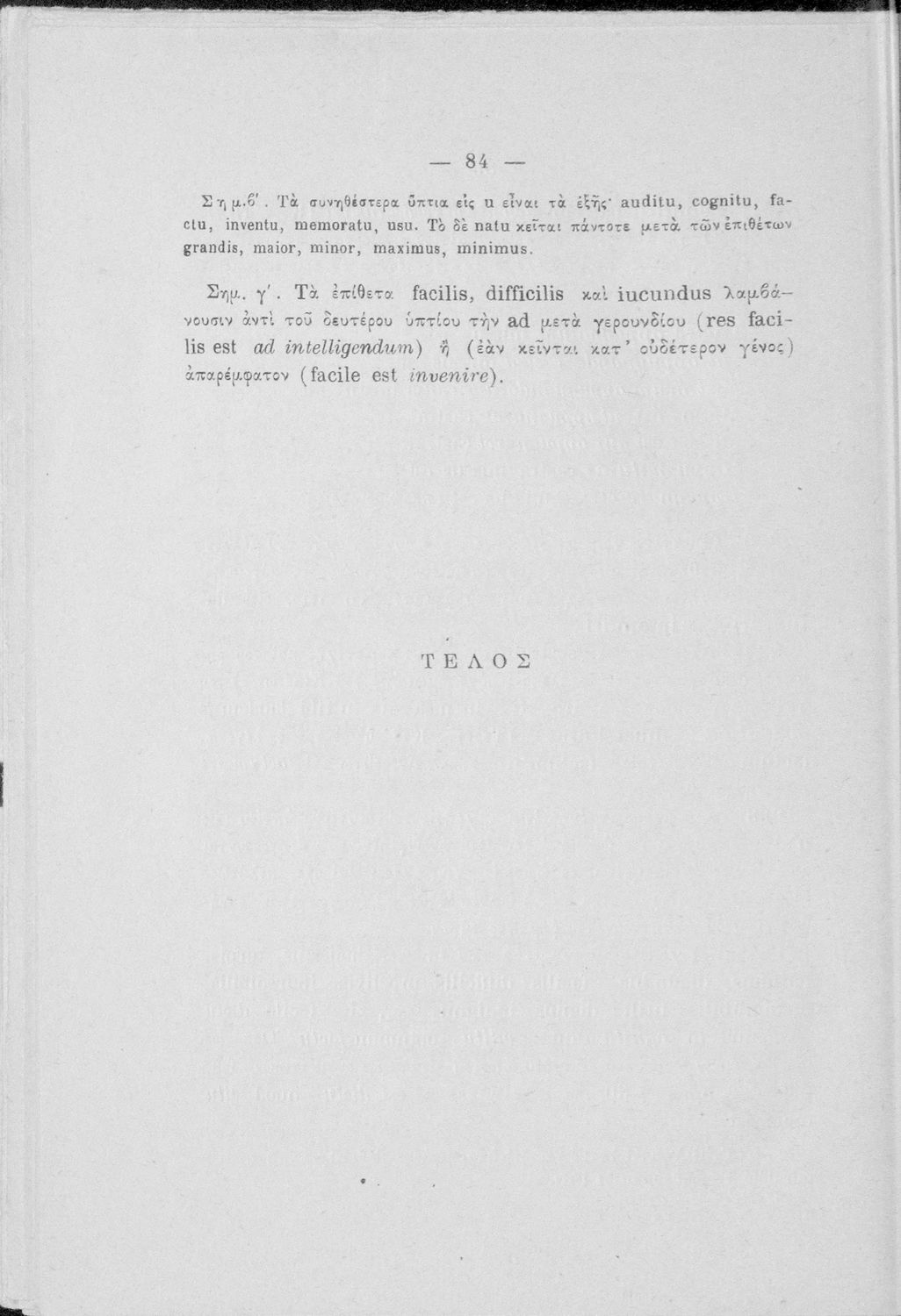 Σχολικό εγχειρίδιο Λατινικών Α΄, Β΄, Γ' Γυμνασίου που περιλαμβάνει γραμματική και συντακτικό και είναι χωρισμένο σε φθογγολογικό, τυπολογικό και ετυμολογικό μέρος.