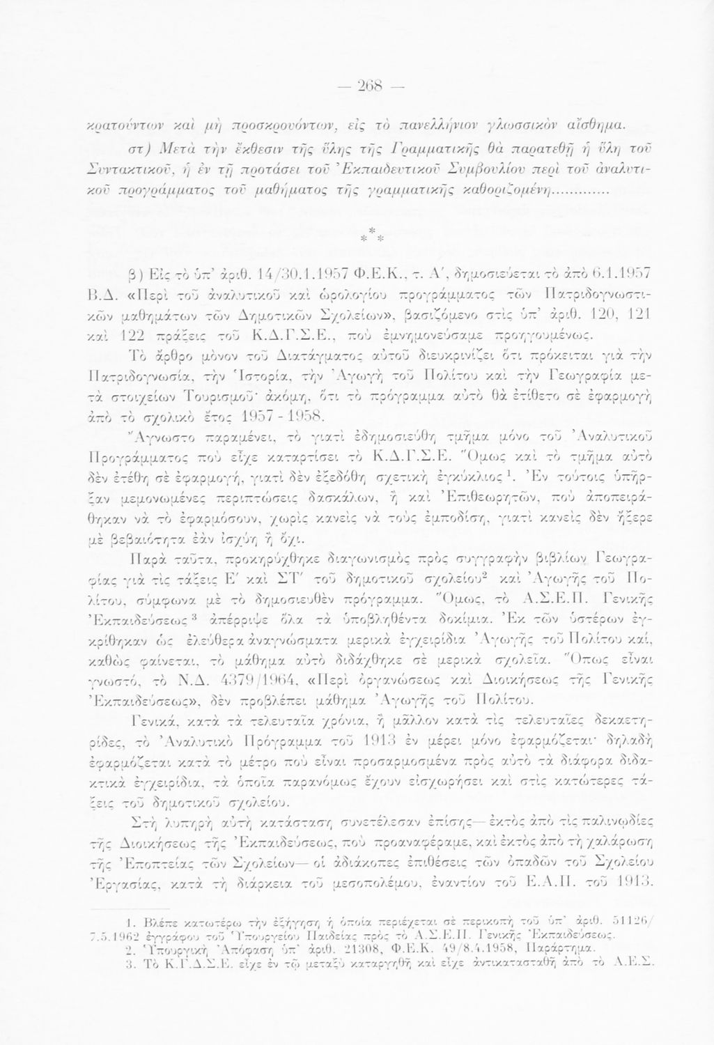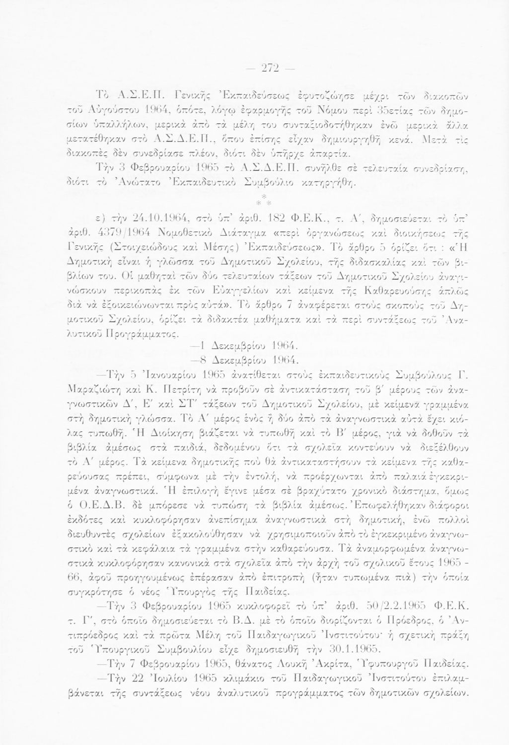 Αναλυτικό πρόγραμμα που υπογράφεται από τον Βασιλιά Κωνσταντίνο. Σε χειρόγραφη σημείωση στο εσωτερικό του αναφέρεται ότι πρόκειται για Το Ωρολόγιο και Αναλυτικό Πρόγραμμα των Δημοτικών που δημοσιεύτηκε στο ΦΕΚ