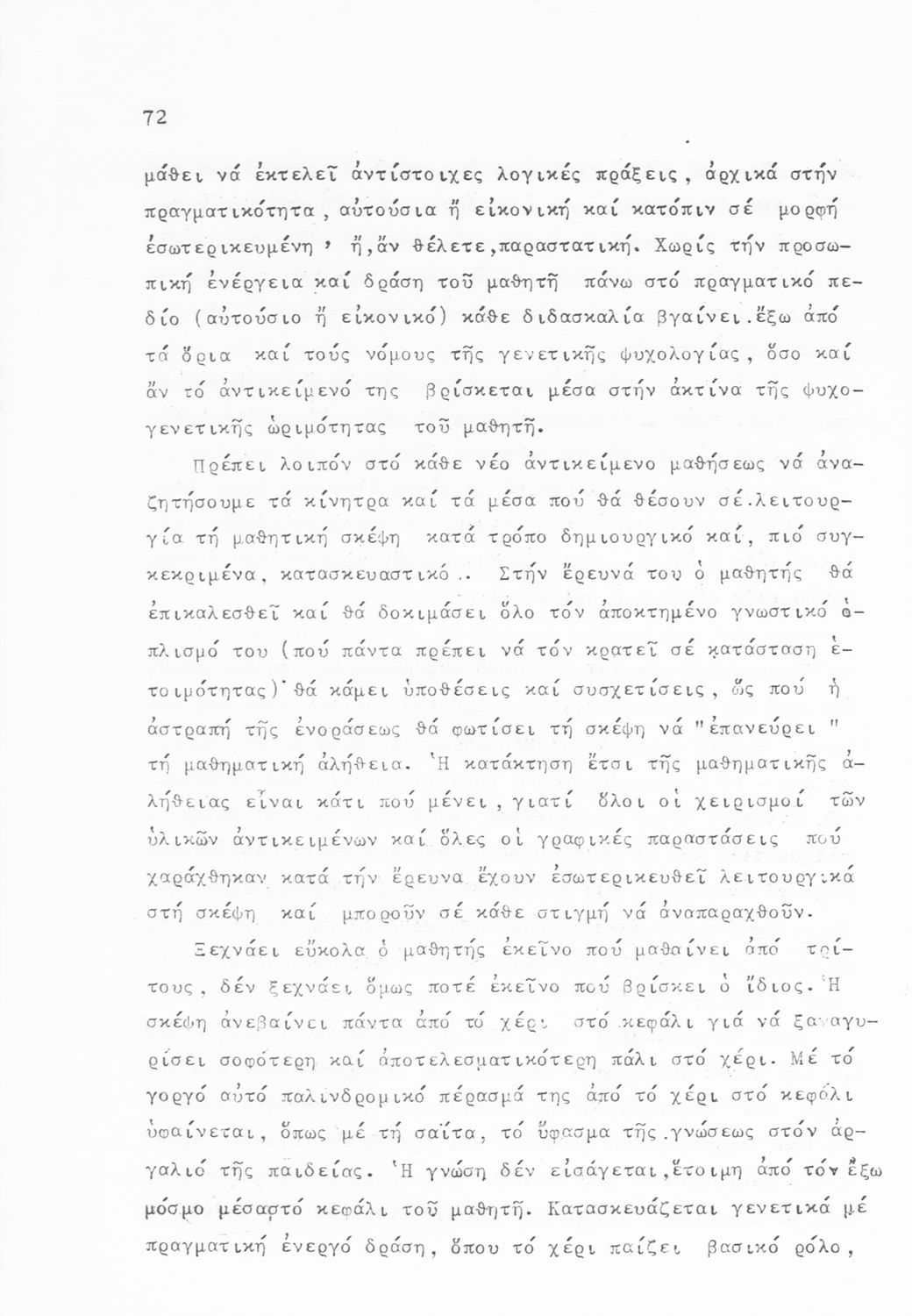 520 ## _aΈκδοση της Υπηρεσίας Μελετών και Συντονισμού του Υπουργείου Παιδείας που περιλαμβάνει τρεις διαλέξεις που παρουσιάστηκαν σε σεμινάριο του Υπουργείου και εστιάζουν στα ψυχολογικά χαρακτηριστικά του εφήβου κατά τη διαδικασία της διδασκαλίας των Μαθηματικών.