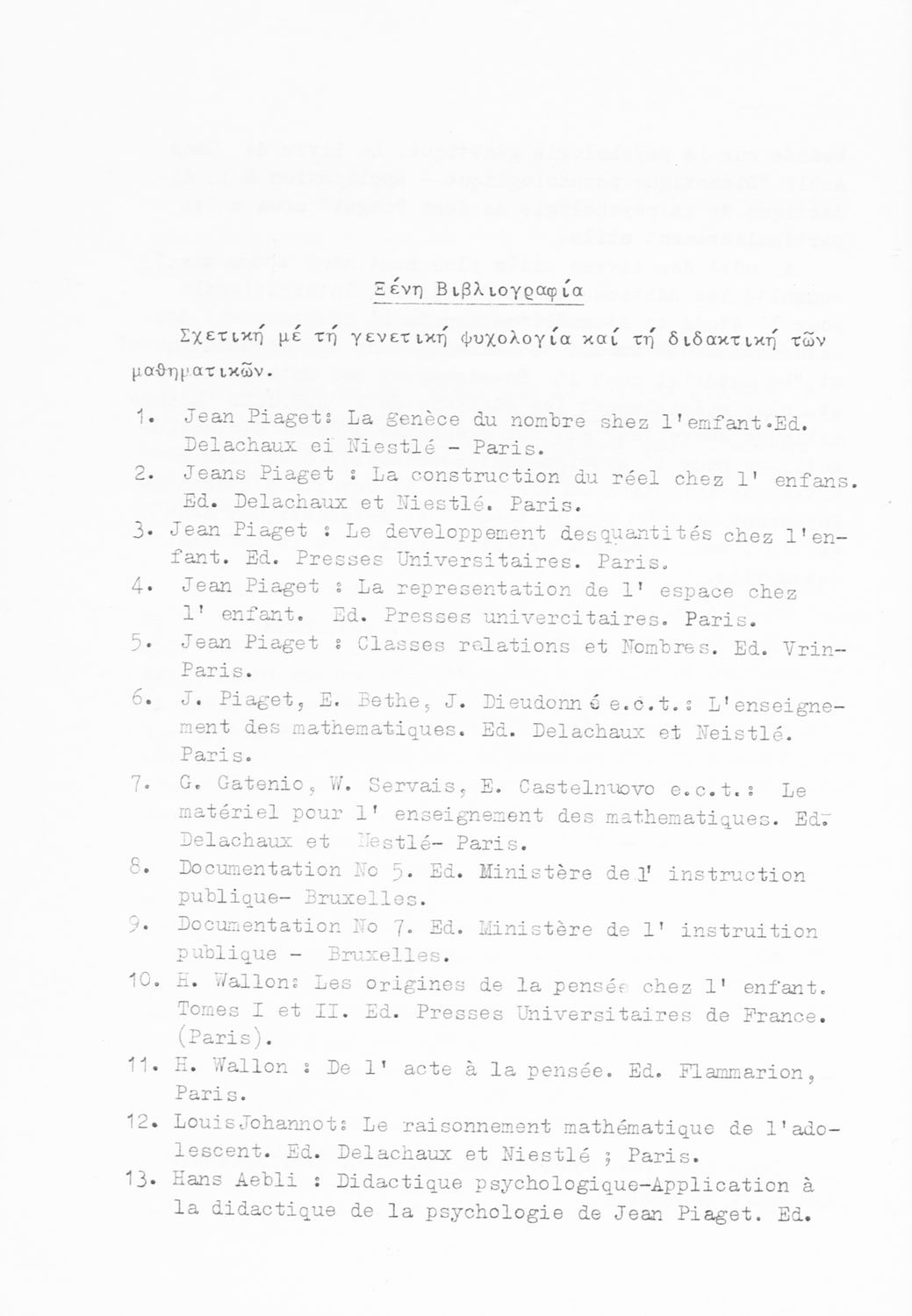 Έκδοση της Υπηρεσίας Μελετών και Συντονισμού του Υπουργείου Παιδείας που περιλαμβάνει τρεις διαλέξεις που παρουσιάστηκαν σε σεμινάριο του Υπουργείου και εστιάζουν στα ψυχολογικά χαρακτηριστικά του εφήβου κατά τη διαδικασία της διδασκαλίας των Μαθηματικών.