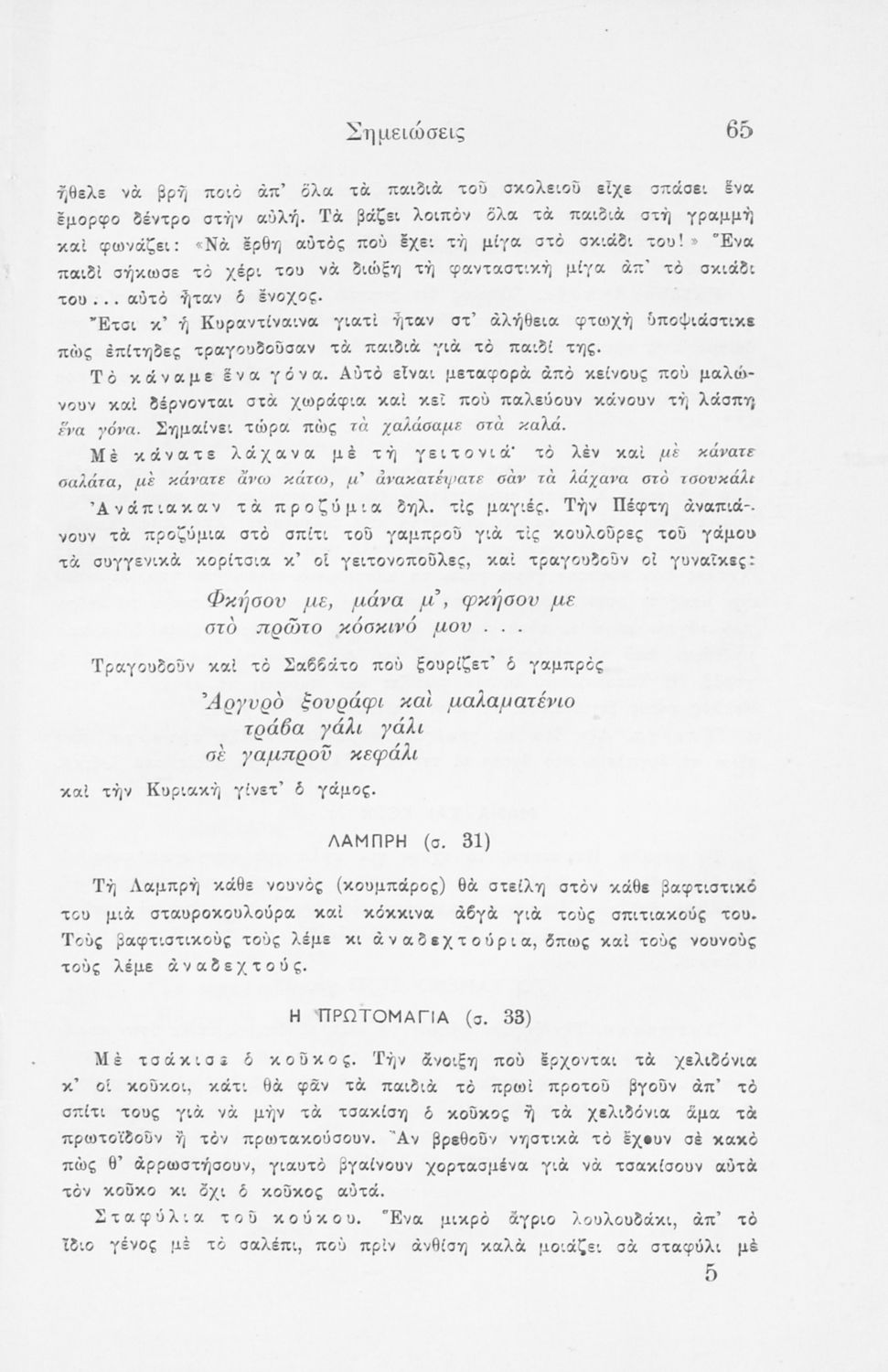 Σχολικό εγχειρίδιο γλώσσας Ε΄ Δημοτικού που περιλαμβάνει ποιήματα και πεζά εμπνευσμένα από τη ζωή στο χωριό και την ελληνική ύπαιθρο, την πατρίδα, την καθημερινότητα και τη θρησκεία.