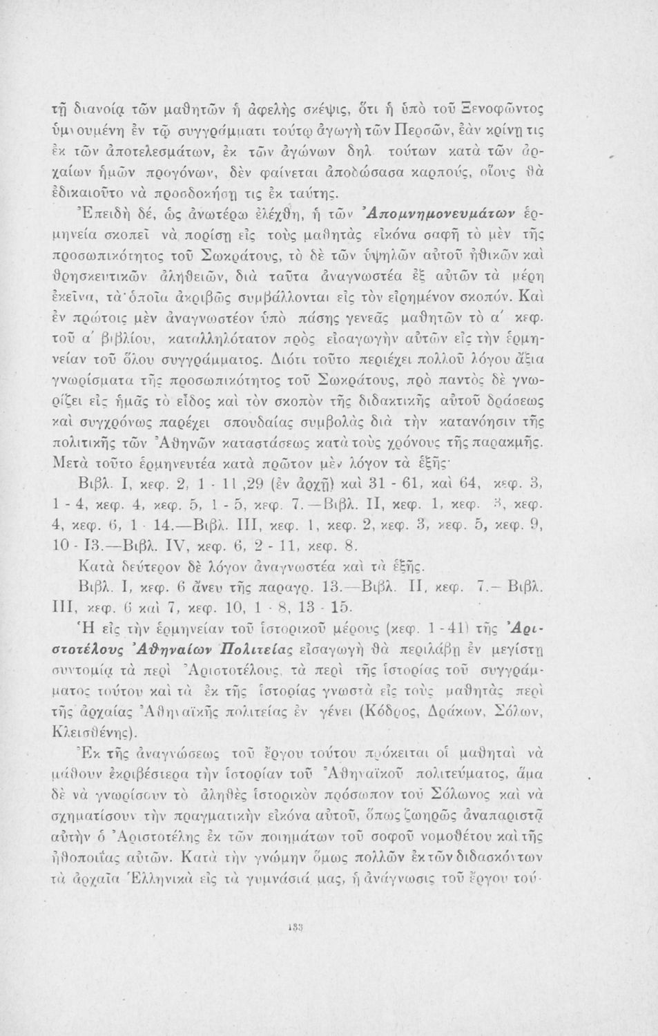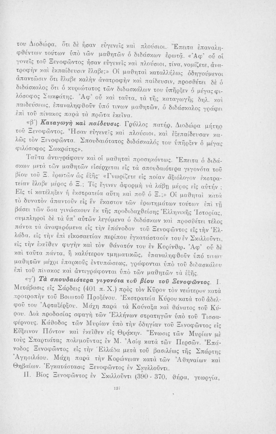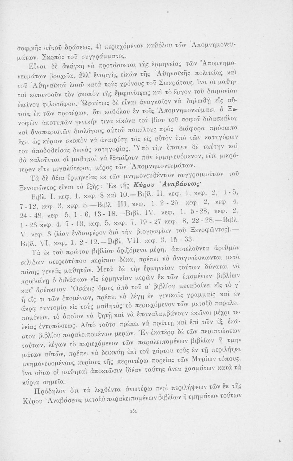Μαθητικό βοήθημα Β΄ Τετραταξίου Γυμνασίου που περιλαμβάνει την μετάφραση αποσπασμάτων από το έργο του Ξενοφώντα Απομνημονεύματα και πραγματολογικά, γραμματικά και λεξιλογικά σχόλια.