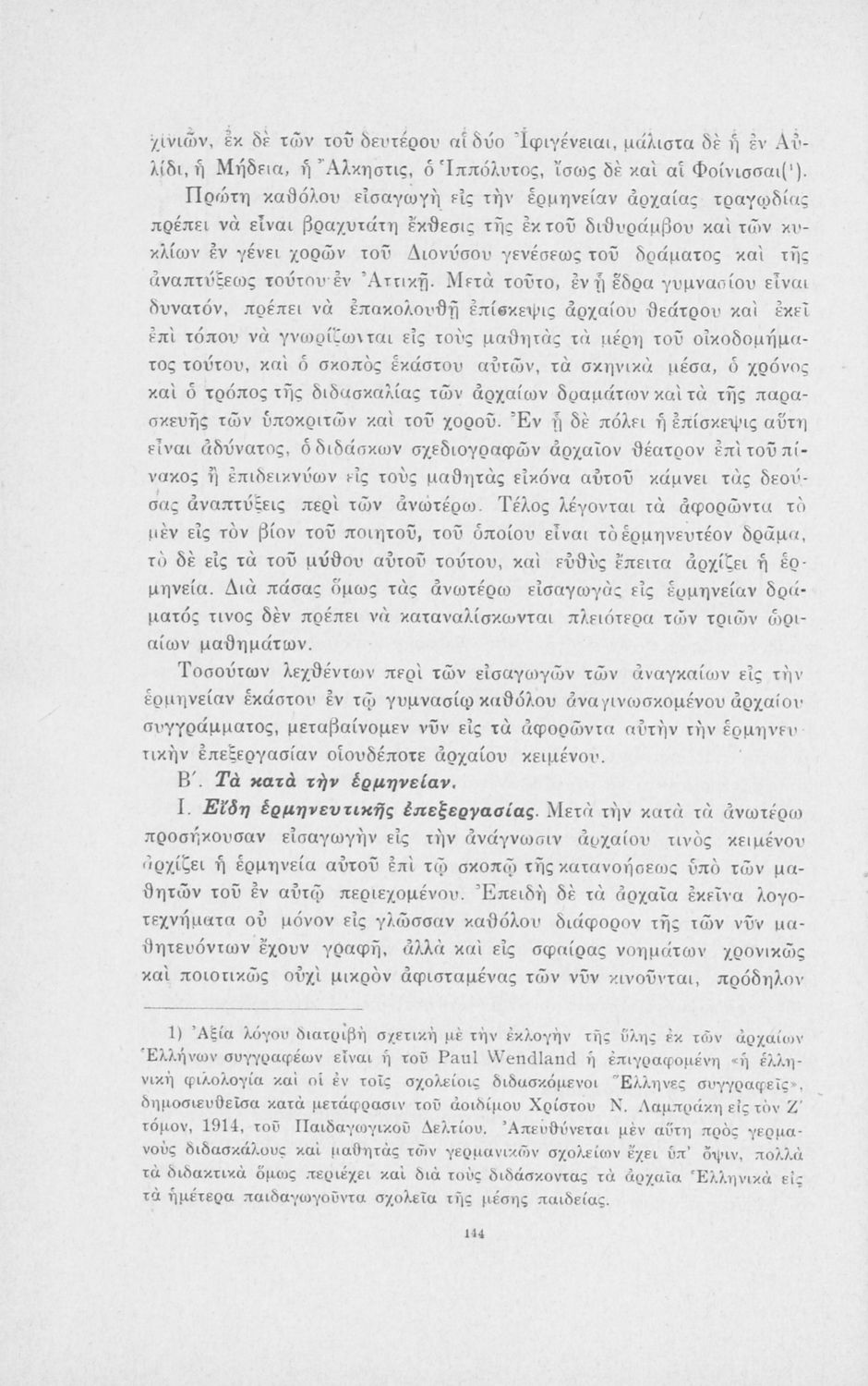 Οδηγίαι προς μεθοδικήν διδασκαλίαν των εν τοις σχολείοις της Μέσης Παιδείας διδασκομένων μαθημάτων. Μέρος Α΄ . Θρησκευτικά και Αρχαία Ελληνικά