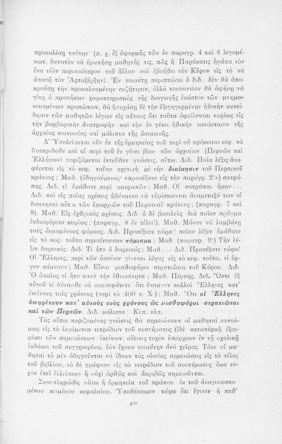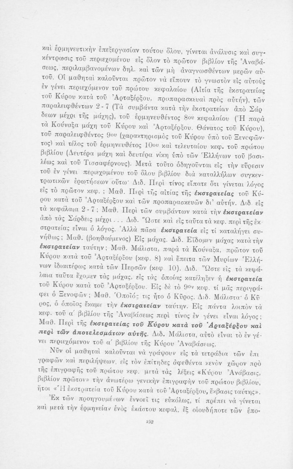 Μαθητικό βοήθημα Β΄ Τετραταξίου Γυμνασίου που περιλαμβάνει την μετάφραση αποσπασμάτων από το έργο του Ξενοφώντα Απομνημονεύματα και πραγματολογικά, γραμματικά και λεξιλογικά σχόλια.