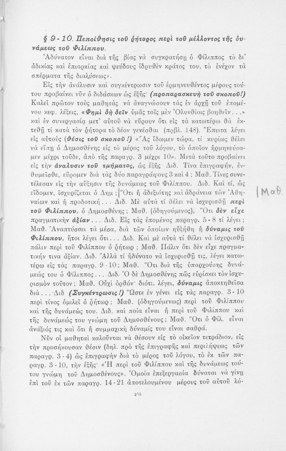 Σχολικό εγχειρίδιο Αρχαίων Ελληνικών Δ΄ Γυμνασίου που περιλαμβάνει εισαγωγή στη ζωή και στο έργο του Δημοσθένη, τον Α΄ κατά Φιλίππου, και τους Α΄ και Β΄ Ολυνθιακούς και ερμηνευτικά και ετυμολογικά σχόλια.