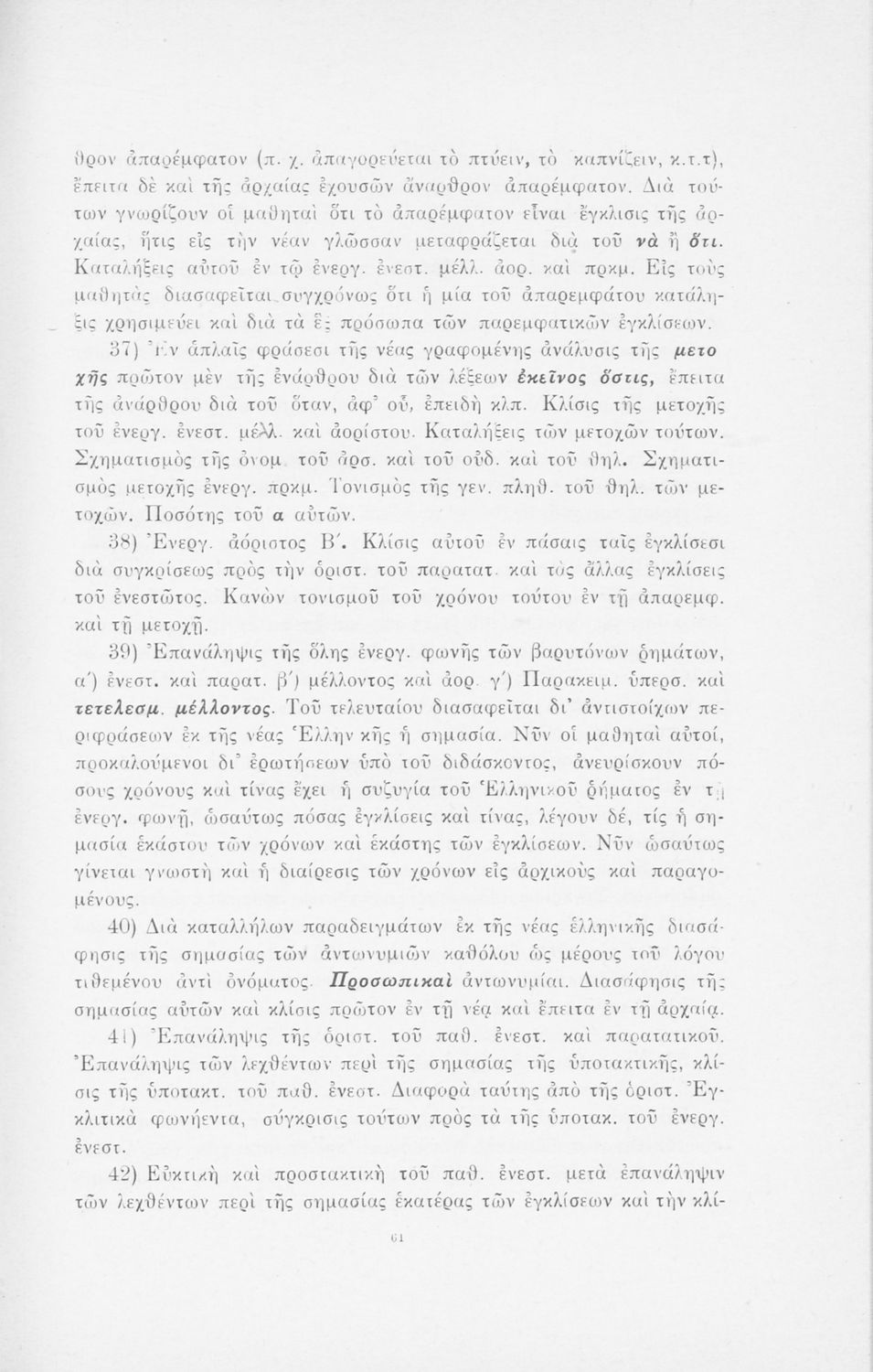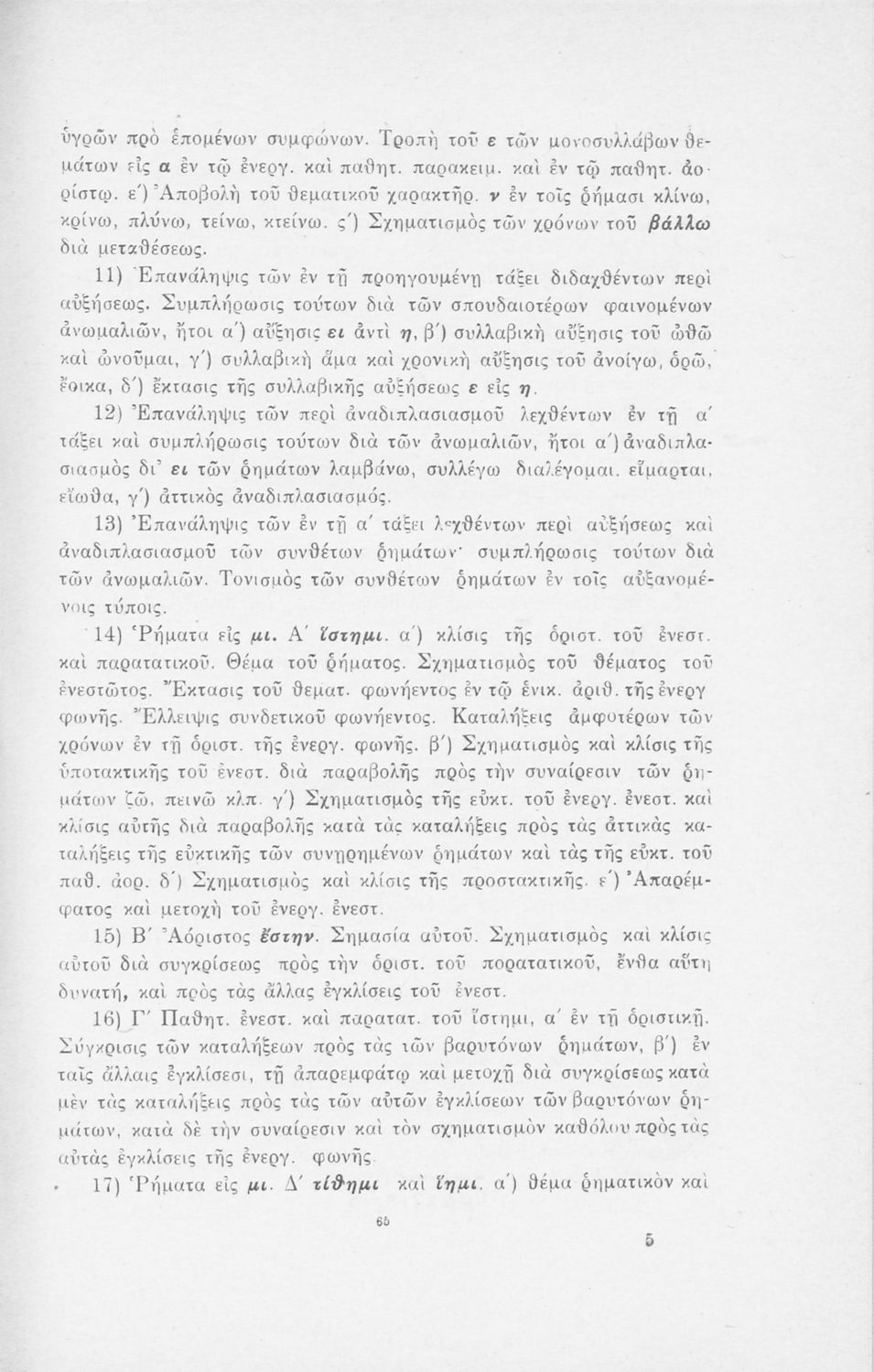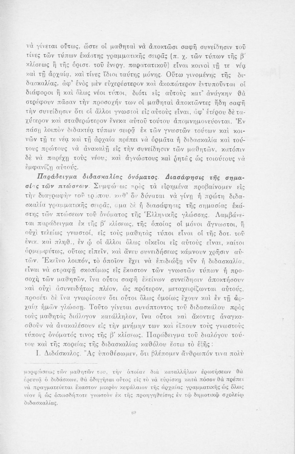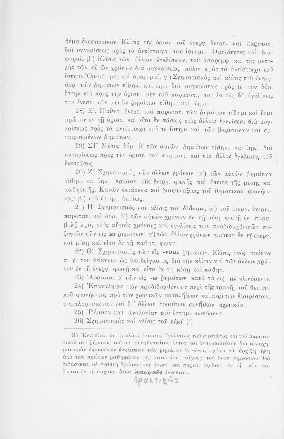 Σχολικό εγχειρίδιο για τις τάξεις του Δημοτικού και συγκεκριμένα της γραμματικής των Αρχαίων Ελληνικών. Το εγχειρίδιο χωρίζεται σε 2 μέρη. Το πρώτο μέρος περιλαμβάνει το τεχνολογικό μέρος της γραμματικής, όπου