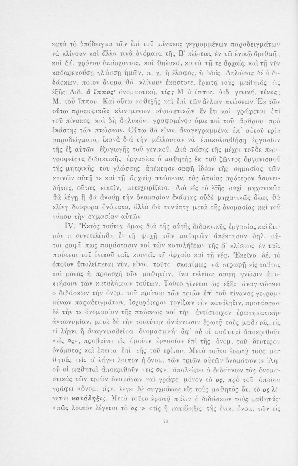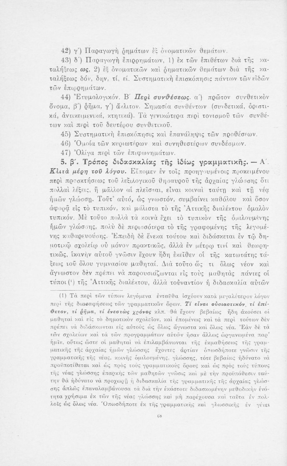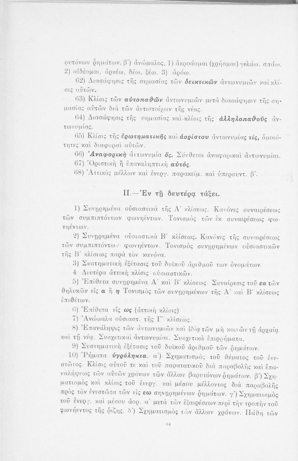 Σχολικό εγχειρίδιο για τις τάξεις του Δημοτικού και συγκεκριμένα της γραμματικής των Αρχαίων Ελληνικών. Το εγχειρίδιο χωρίζεται σε 2 μέρη. Το πρώτο μέρος περιλαμβάνει το τεχνολογικό μέρος της γραμματικής, όπου