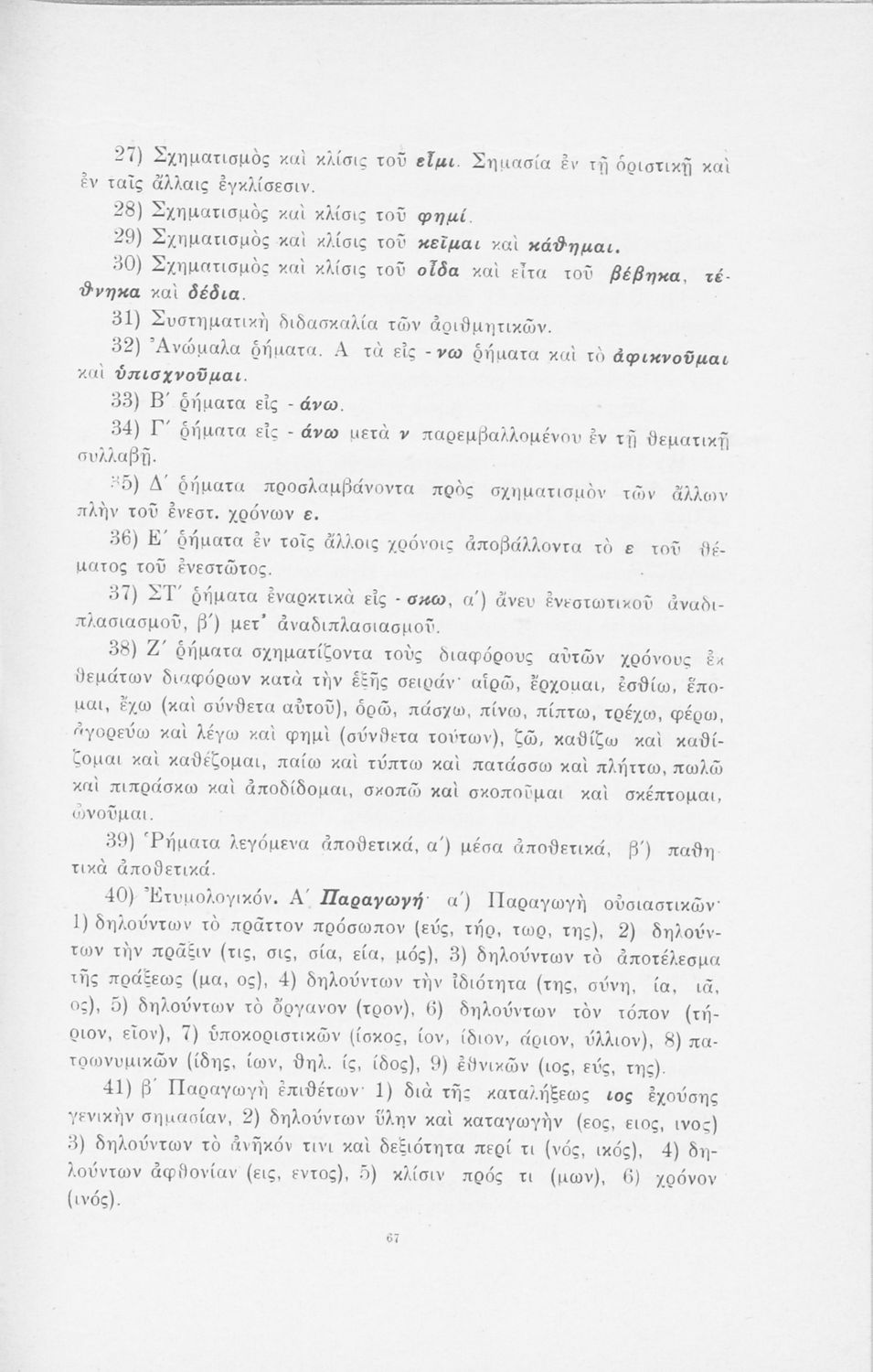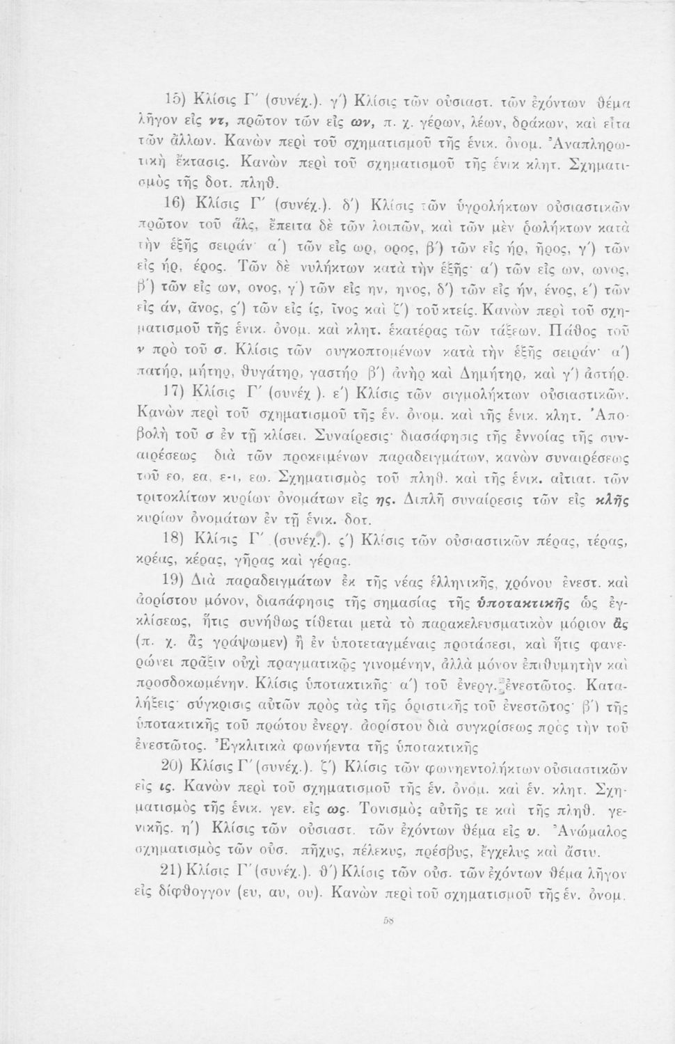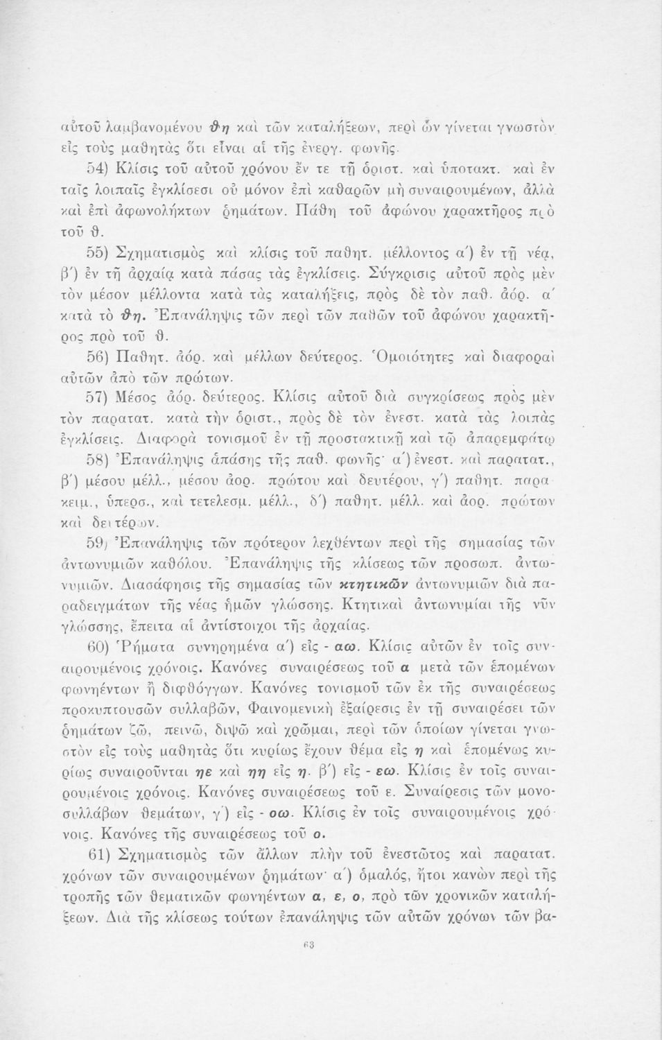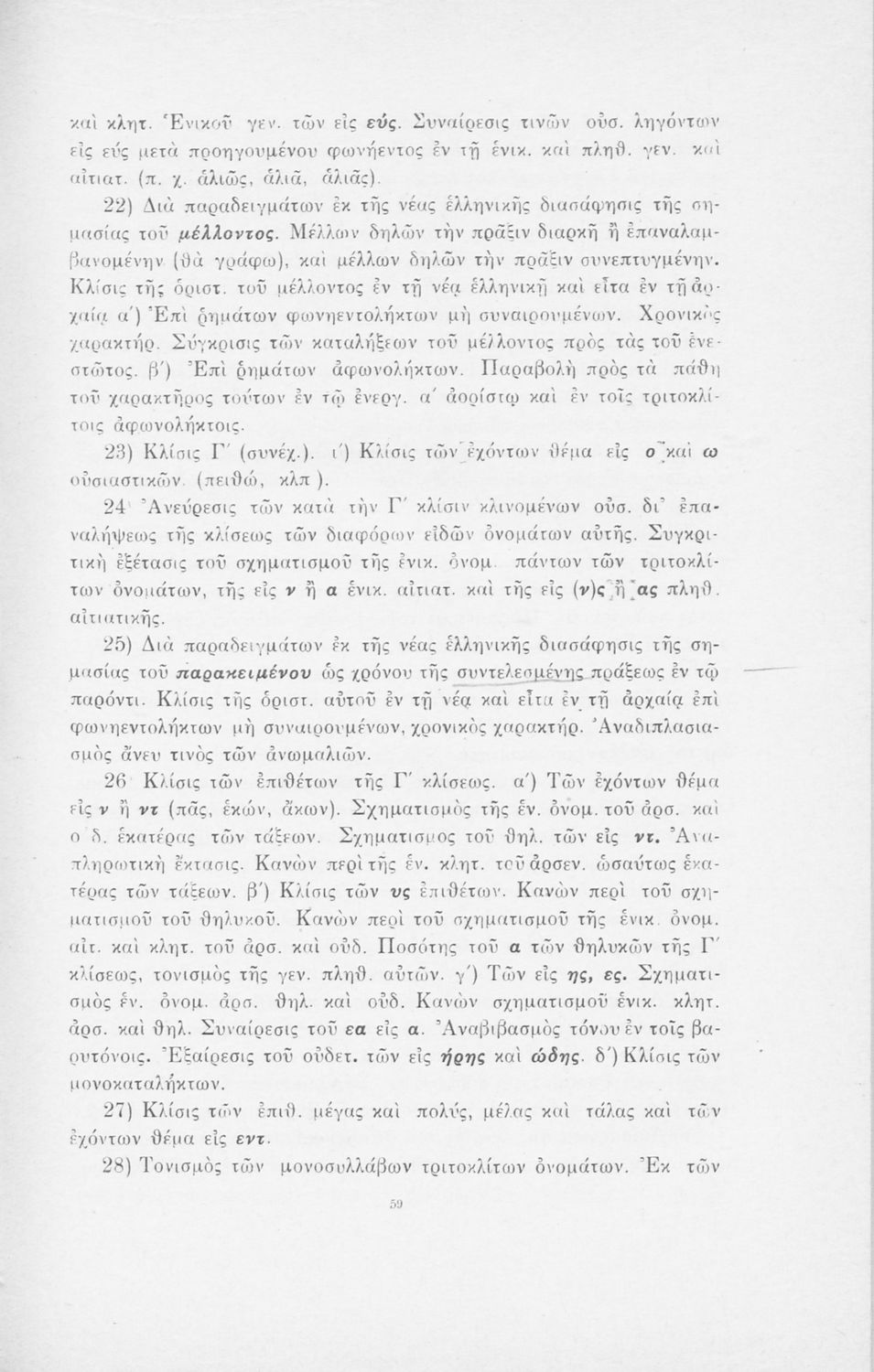 Σχολικό εγχειρίδιο για τις τάξεις του Δημοτικού και συγκεκριμένα της γραμματικής των Αρχαίων Ελληνικών. Το εγχειρίδιο χωρίζεται σε 2 μέρη. Το πρώτο μέρος περιλαμβάνει το τεχνολογικό μέρος της γραμματικής, όπου
