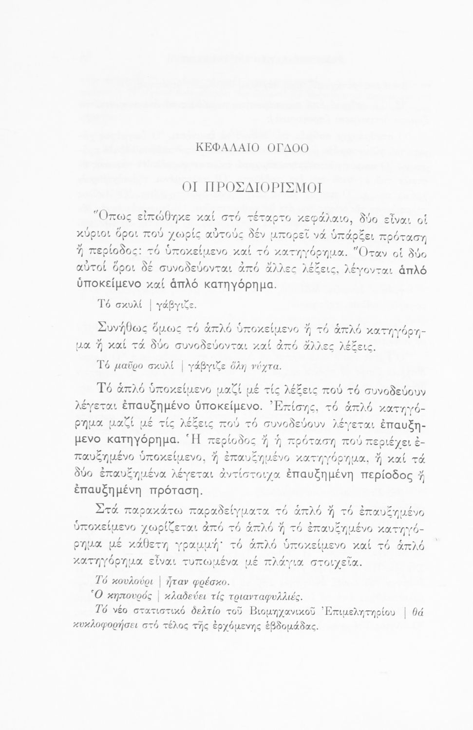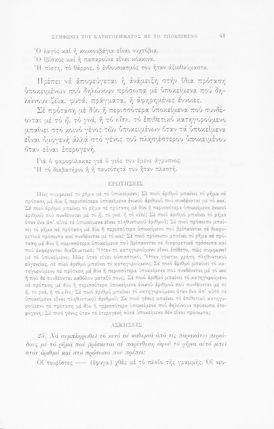 Σχολικό εγχειρίδιο Νέων Ελληνικών που παρουσιάζει το συντακτικό της κοινής δημοτικής μέσα από κανόνες και παραδείγματα.