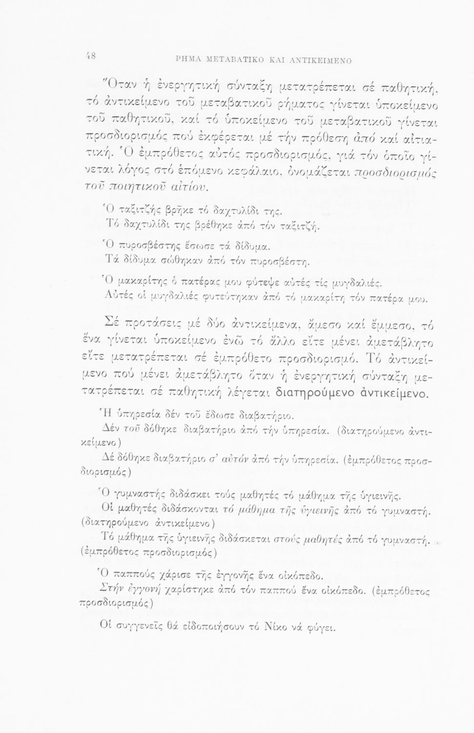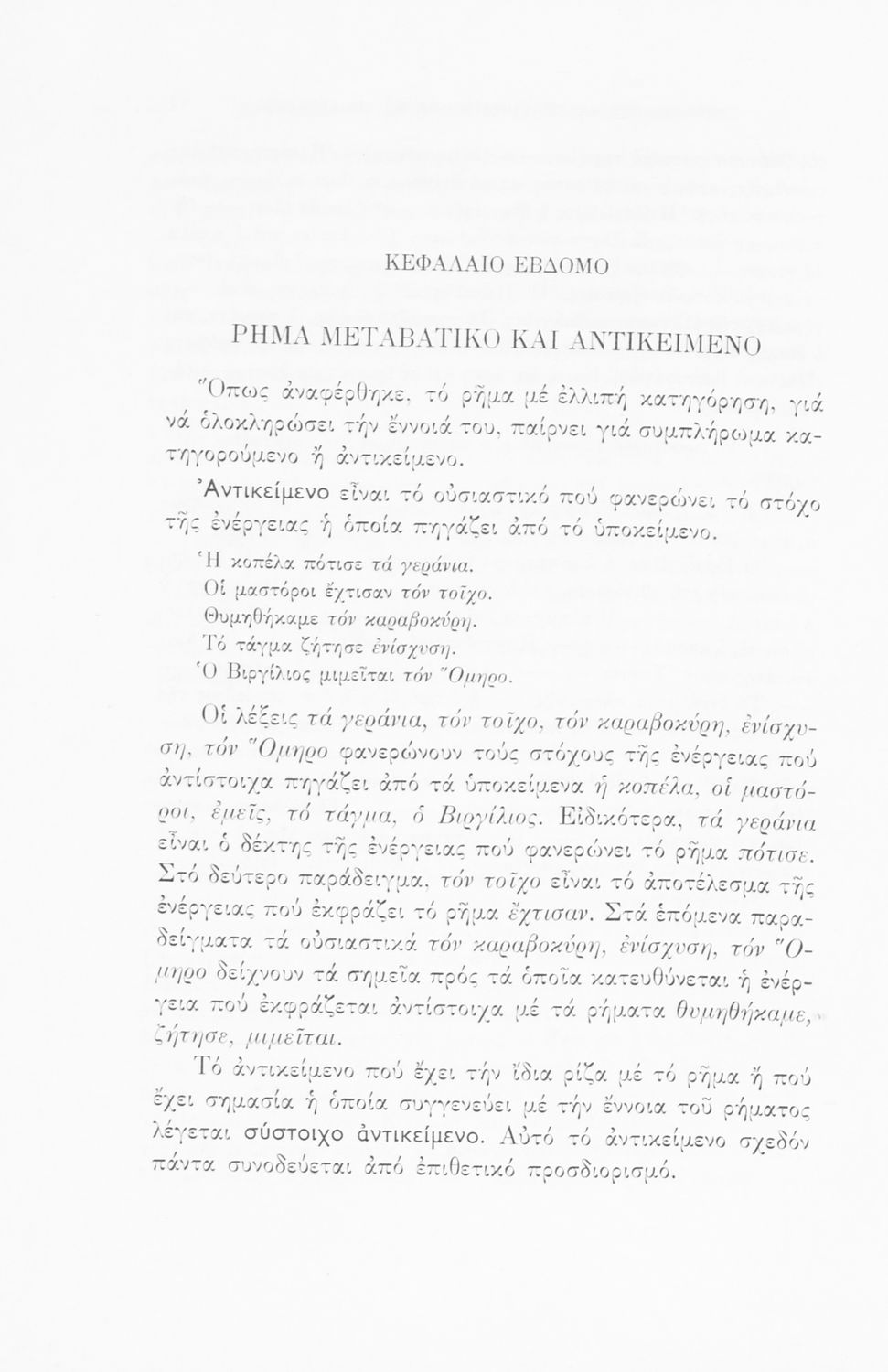 Σχολικό εγχειρίδιο για τις τάξεις του Δημοτικού και συγκεκριμένα της γραμματικής των Αρχαίων Ελληνικών. Το εγχειρίδιο χωρίζεται σε 2 μέρη. Το πρώτο μέρος περιλαμβάνει το τεχνολογικό μέρος της γραμματικής, όπου