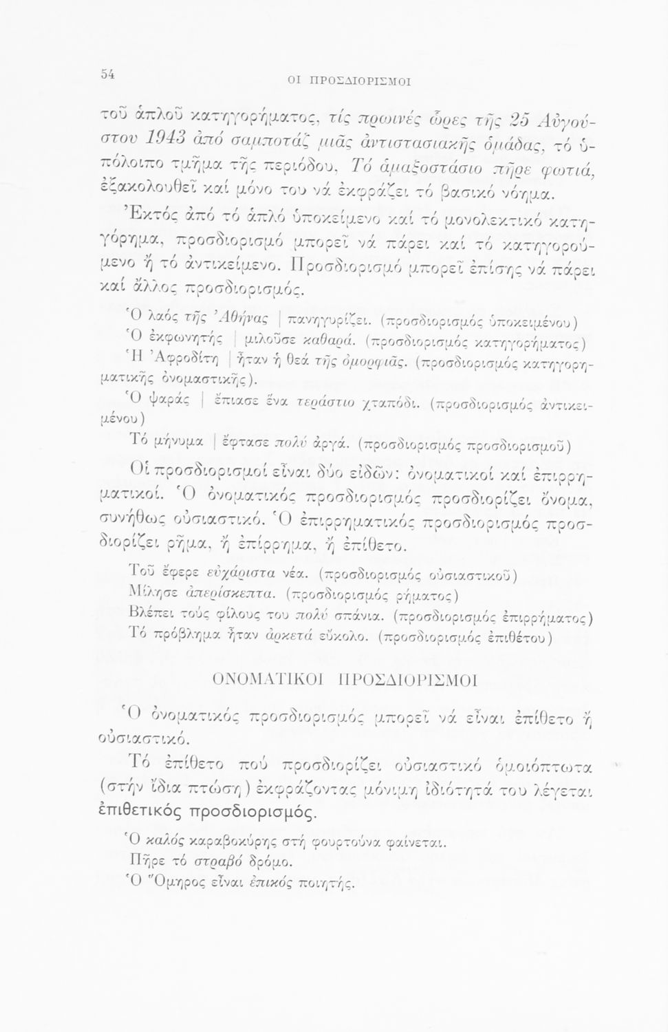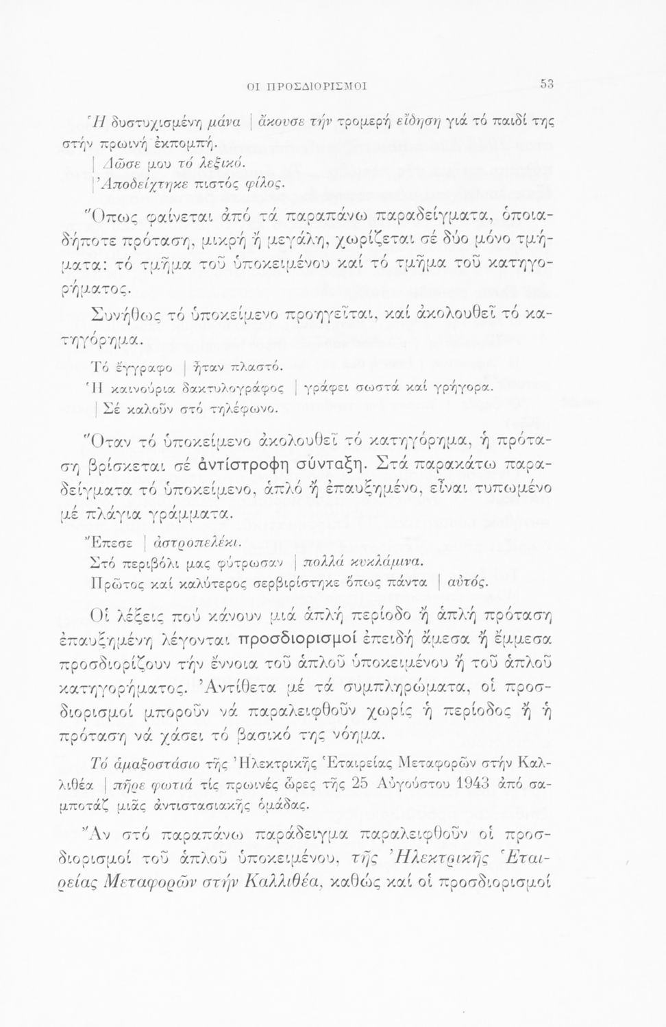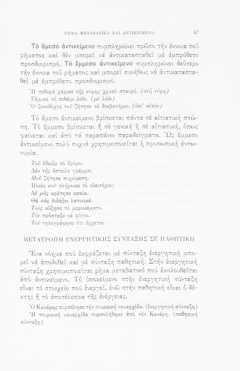 Σχολικό εγχειρίδιο Συντακτικού που γράφηκε από επιτροπή Καθηγητών που ορίστηκε από το Υπουργείο των Θρησκευμάτων και της Εθνικής Παιδείας. Περιλαμβάνει κανόνες και παραδείγματα του συντακτικού της Δημοτικής.