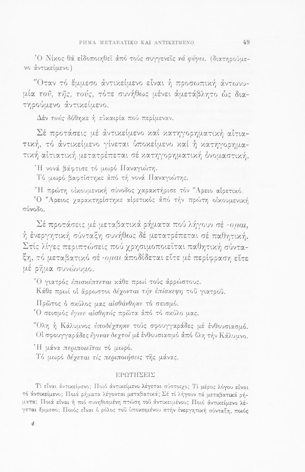 Παιδαγωγικό βοήθημα Νέων Ελληνικών που εξετάζει τα μέρη του λόγου και την σύνταξή τους.