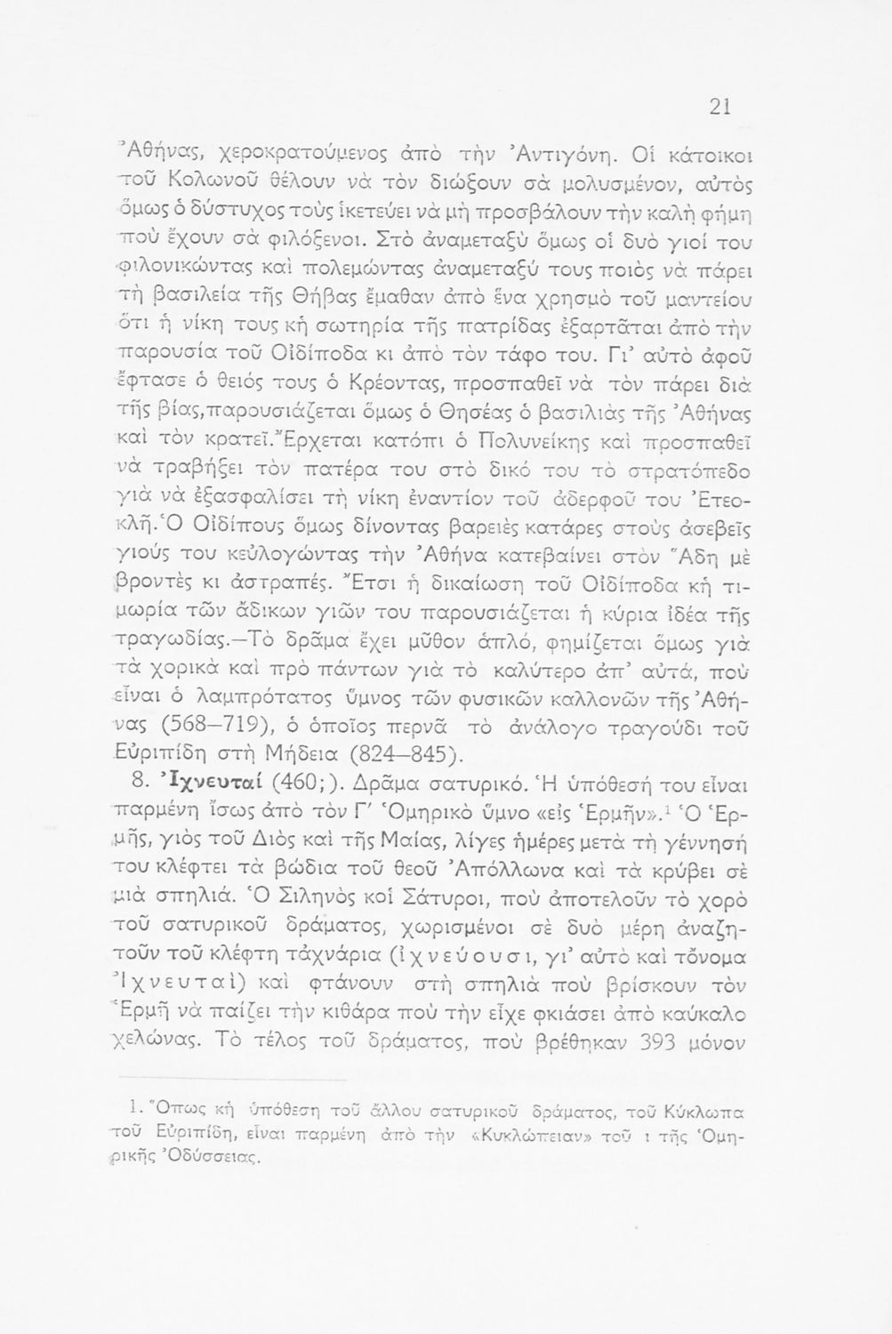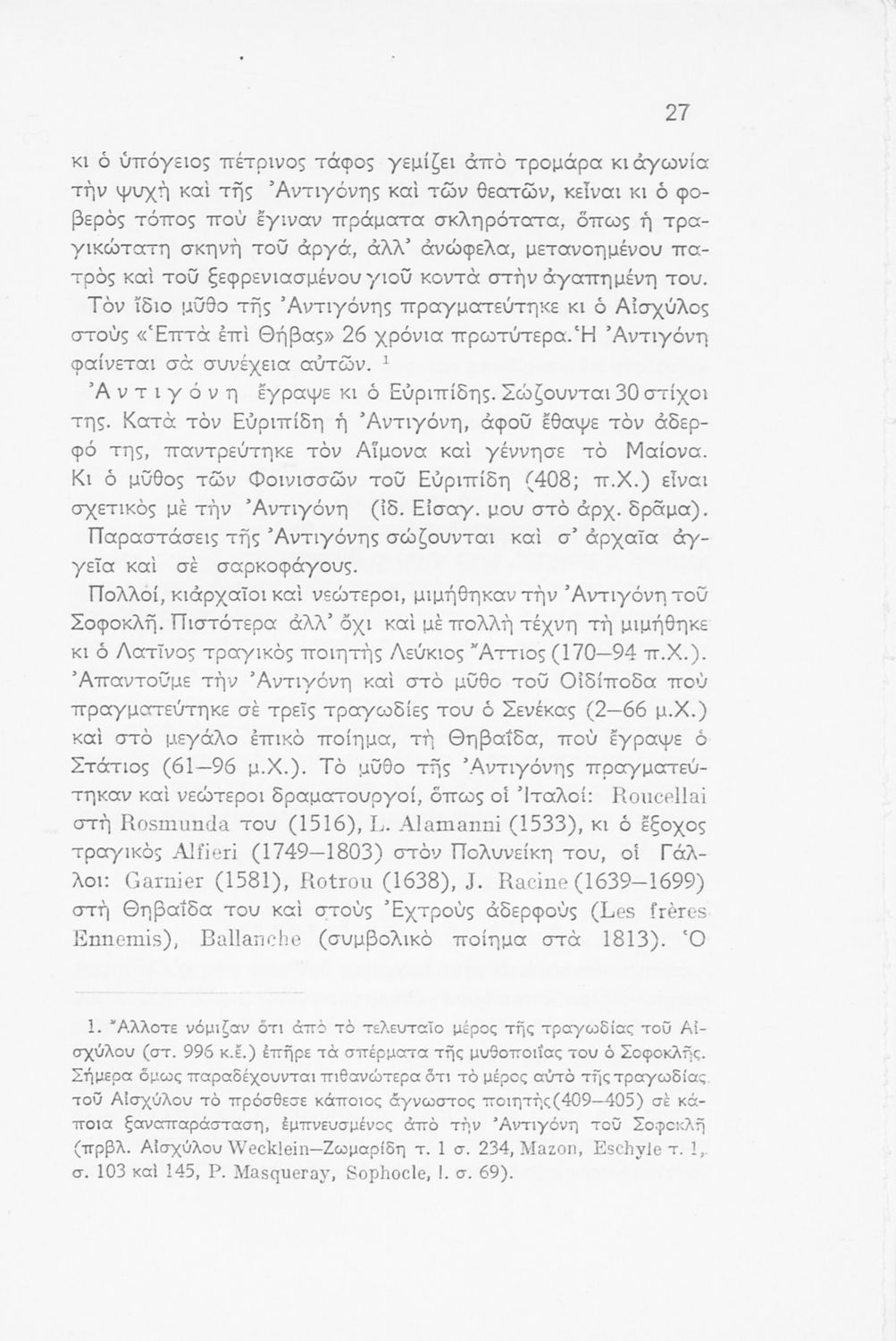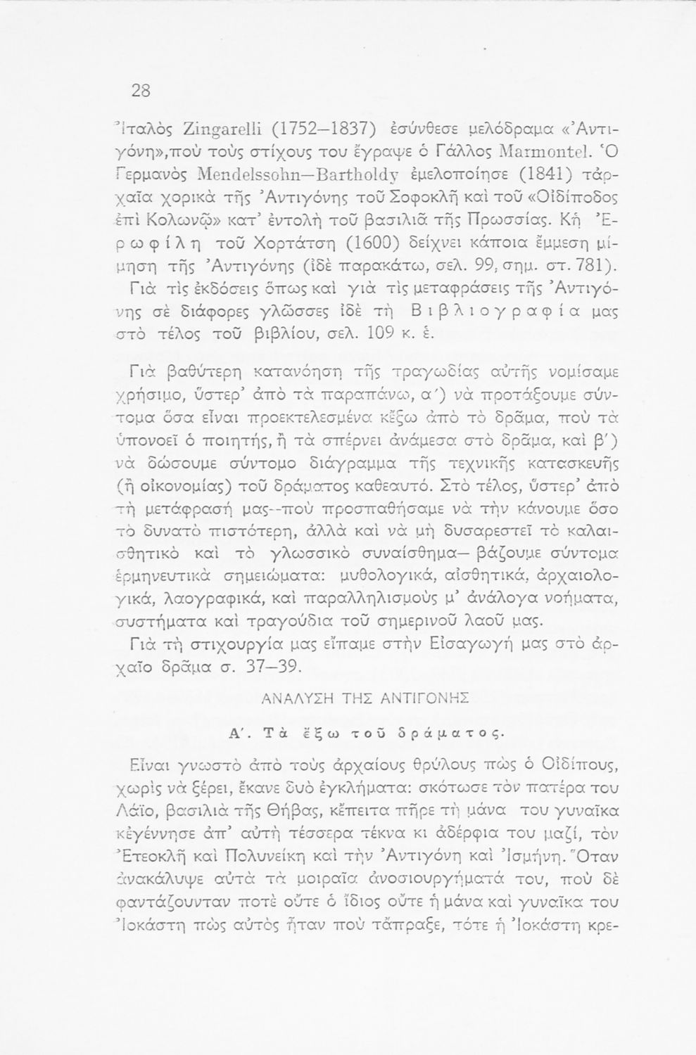 Παρουσίαση περιεχομένου: Μετάφραση της Αντιγόνης του Σοφοκλή στη δημοτική. Συνοδεύεται από ερμηνευτικές σημειώσεις.