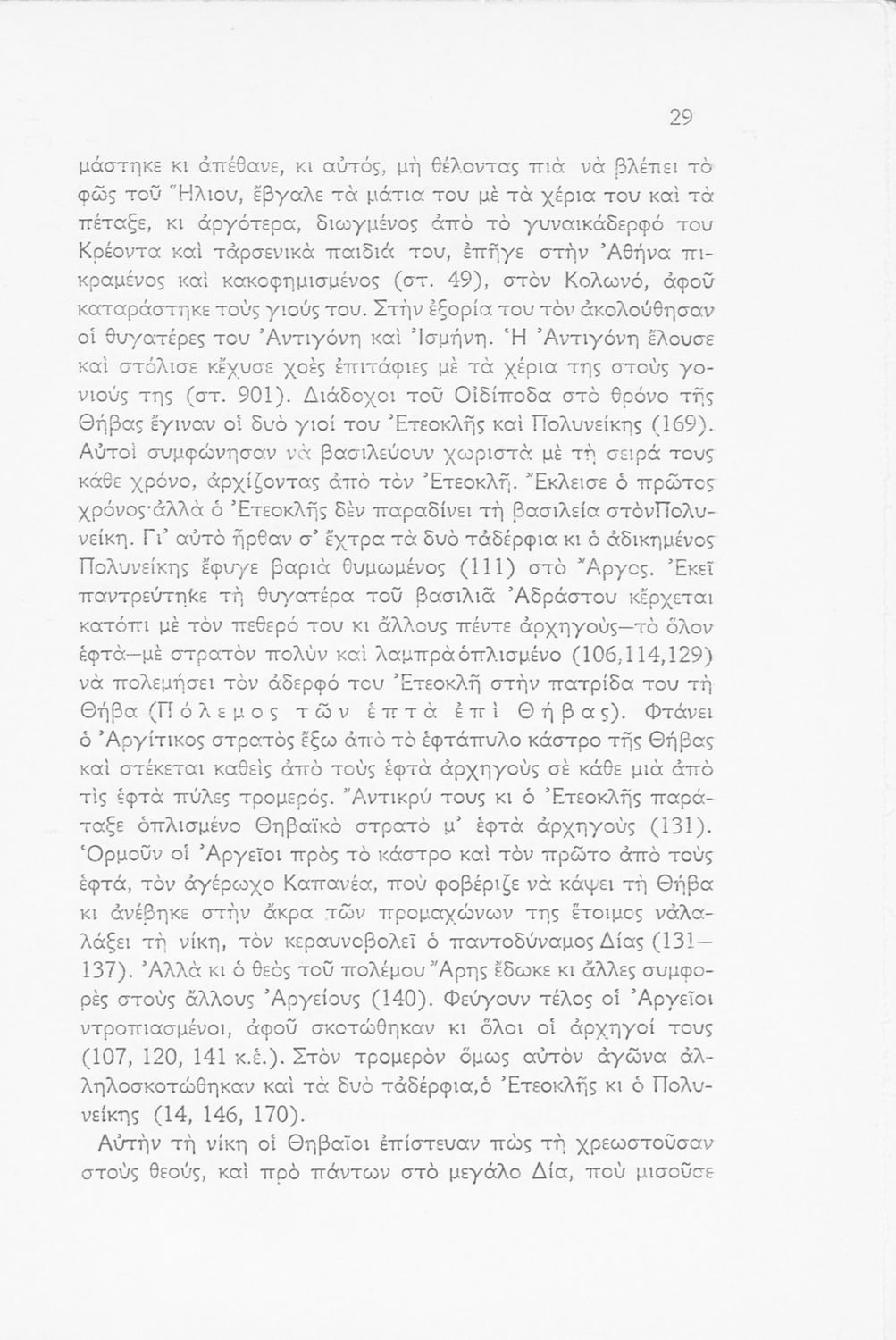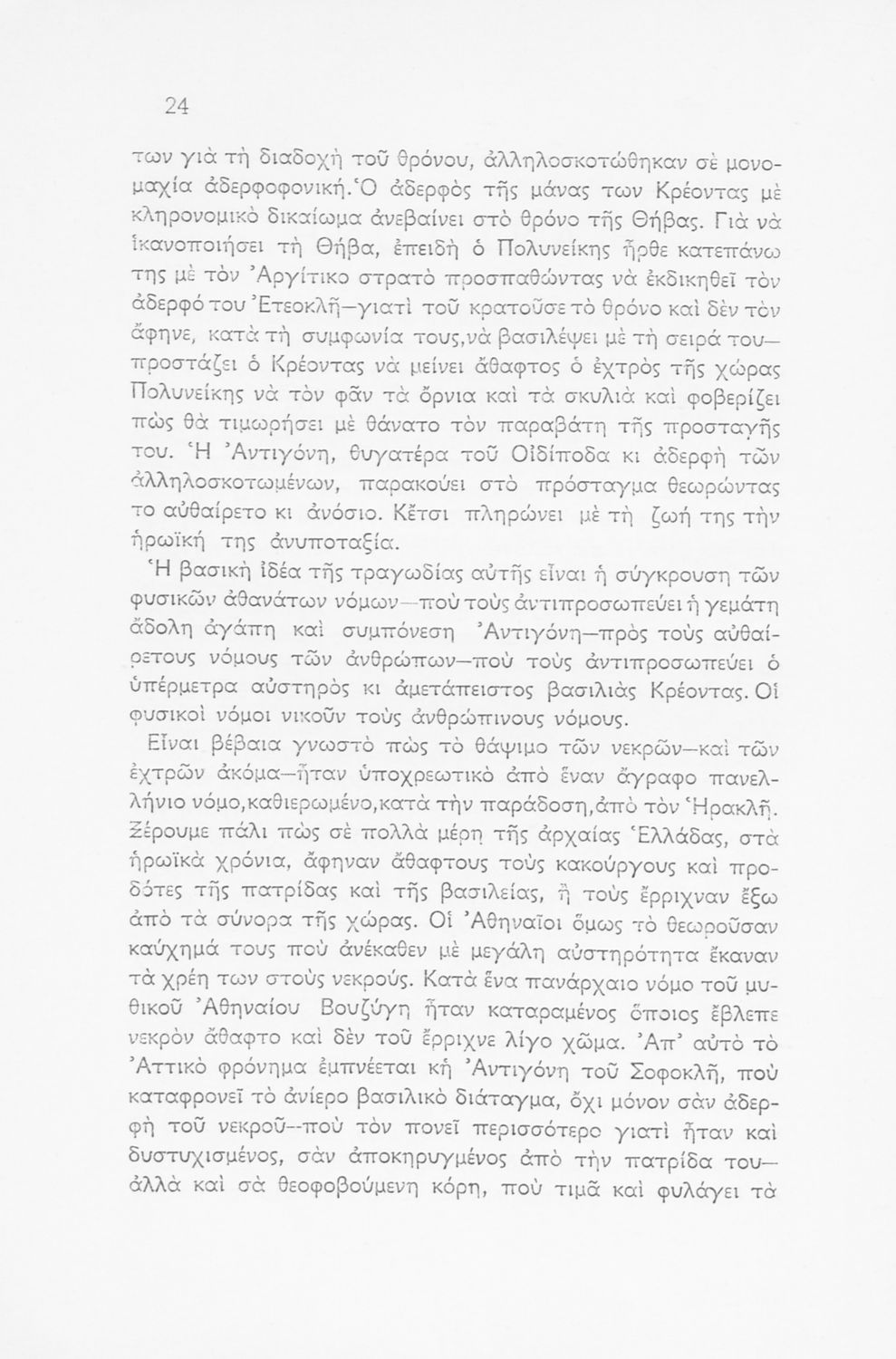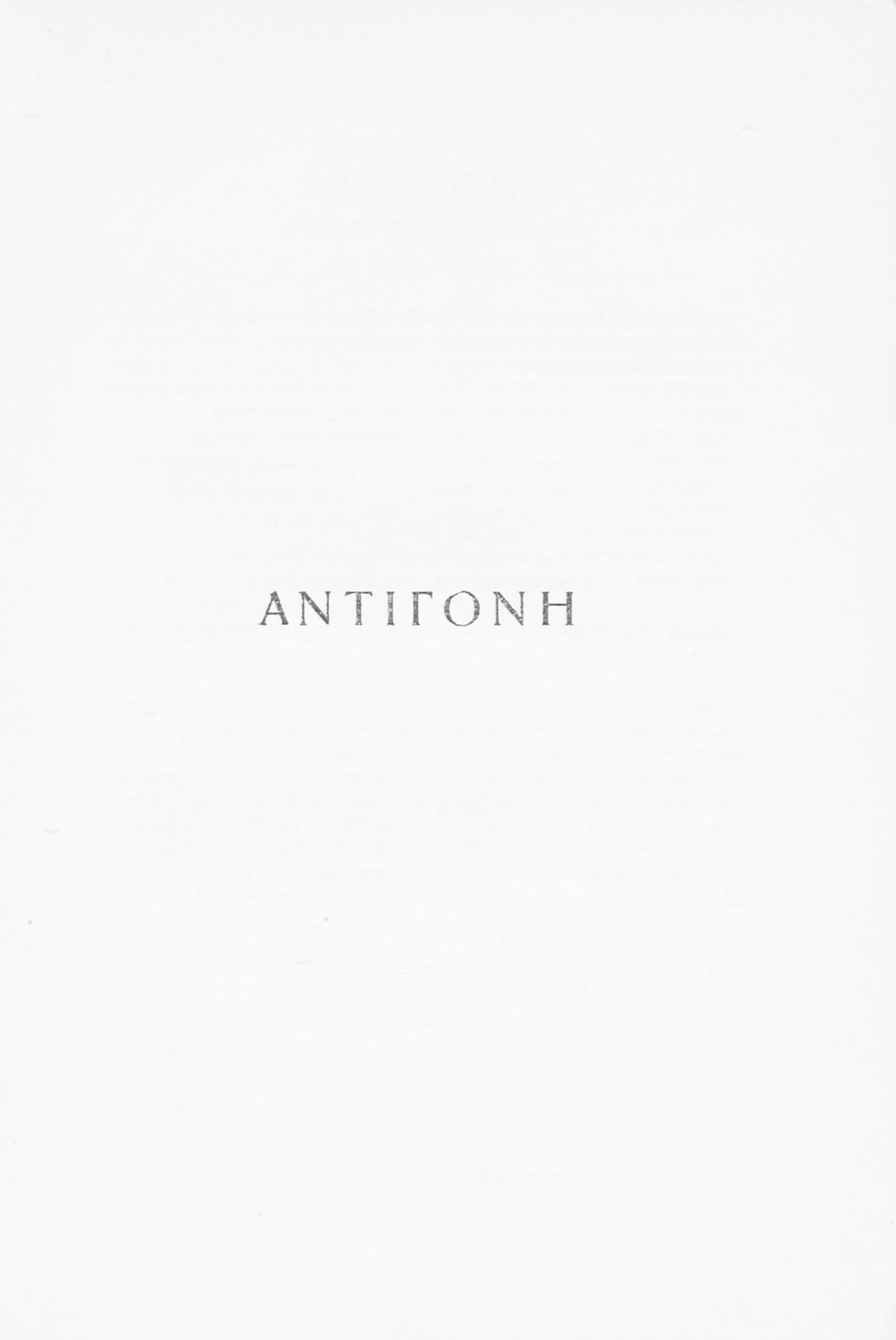 Μετάφραση της Αντιγόνης του Σοφοκλή στη δημοτική. Συνοδεύεται από ερμηνευτικές σημειώσεις.