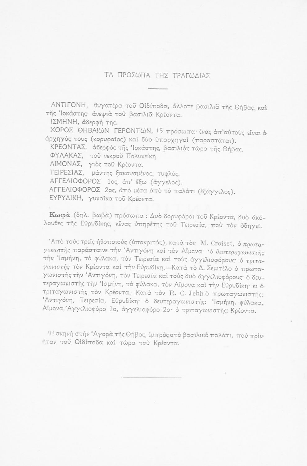 Τίτλος: Αντιγόνη. Σοφοκλής. Σε δημοτικούς στίχους με πρόλογο και σημειώματα ερμηνευτικά