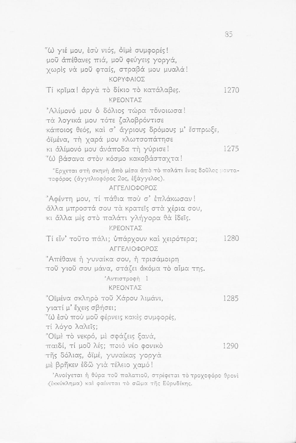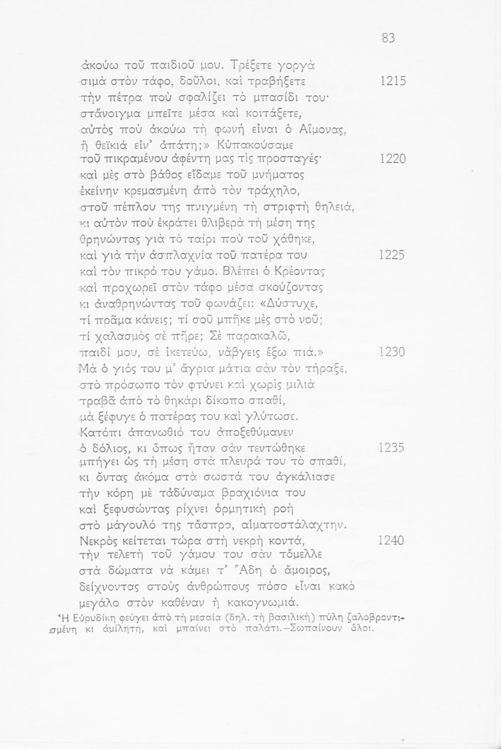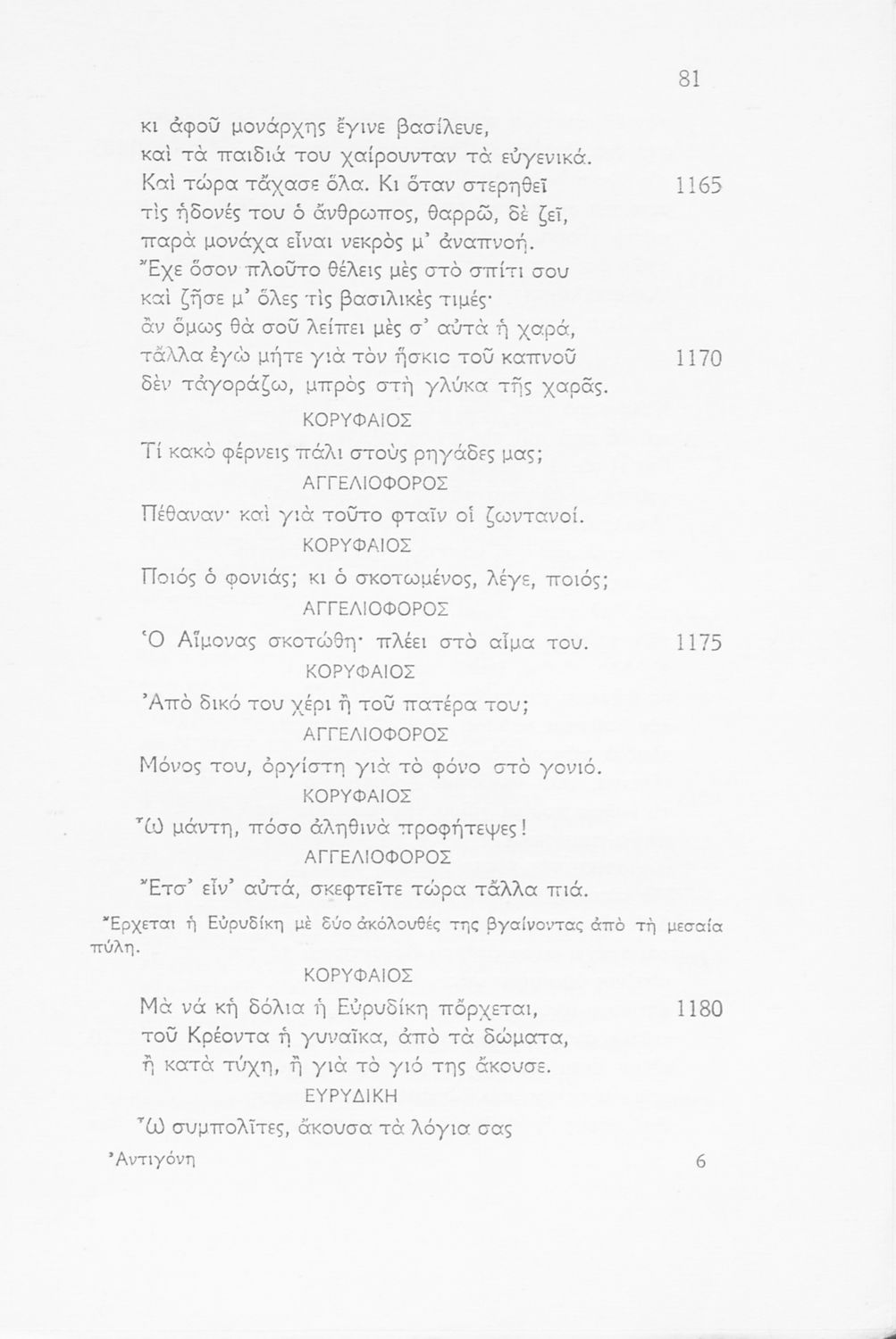 Μετάφραση της Αντιγόνης του Σοφοκλή στη δημοτική. Συνοδεύεται από ερμηνευτικές σημειώσεις.