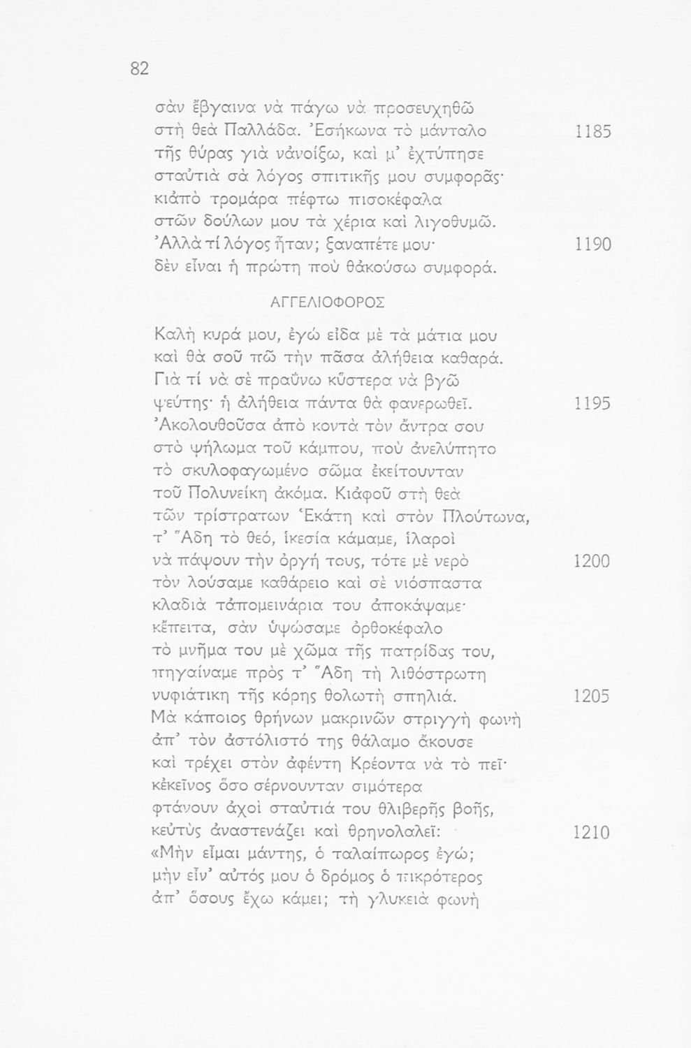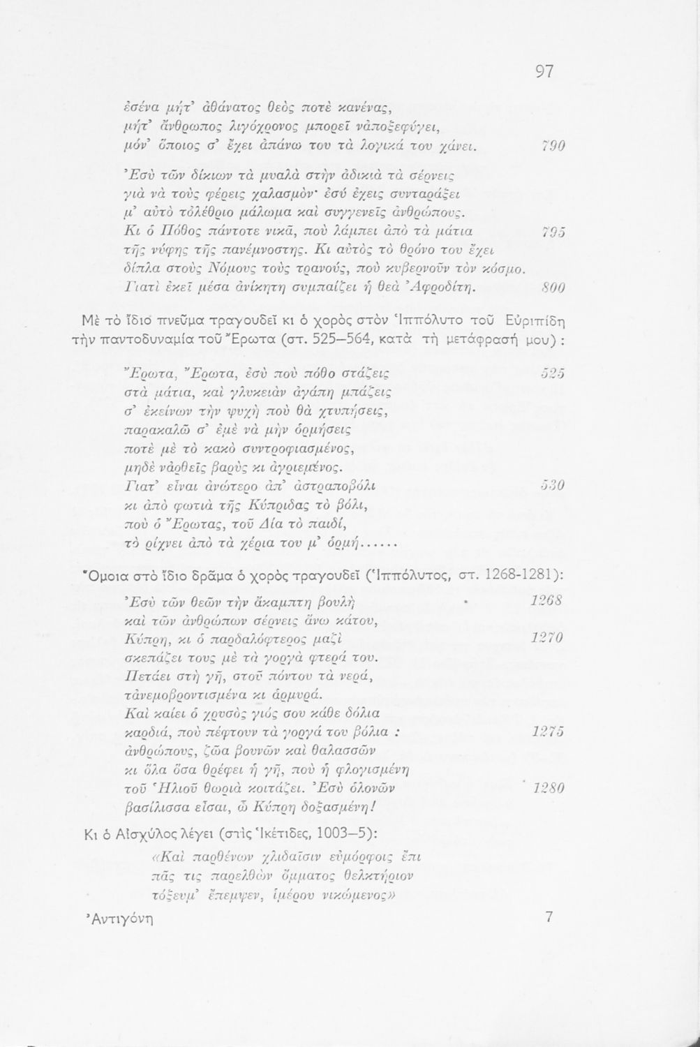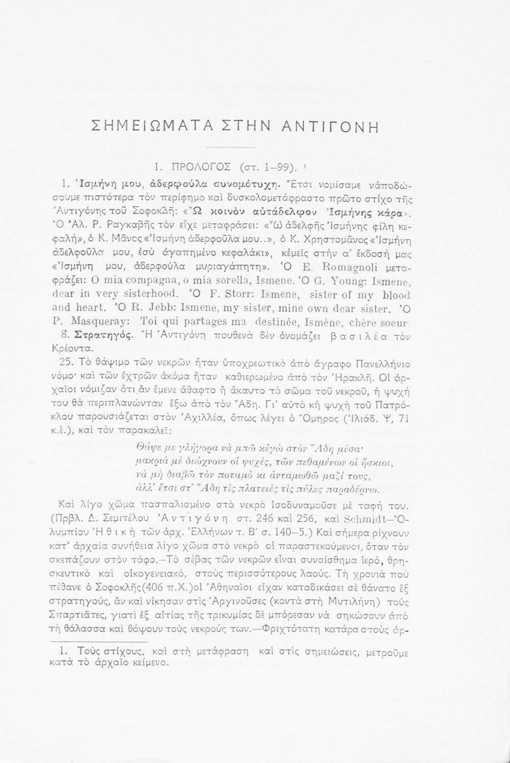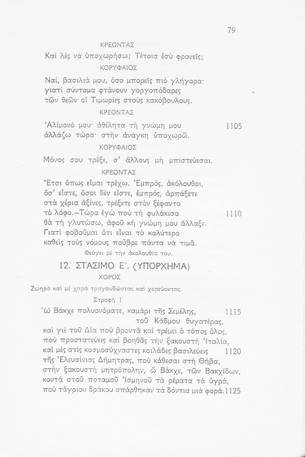 Μετάφραση της Αντιγόνης του Σοφοκλή στη δημοτική. Συνοδεύεται από ερμηνευτικές σημειώσεις.