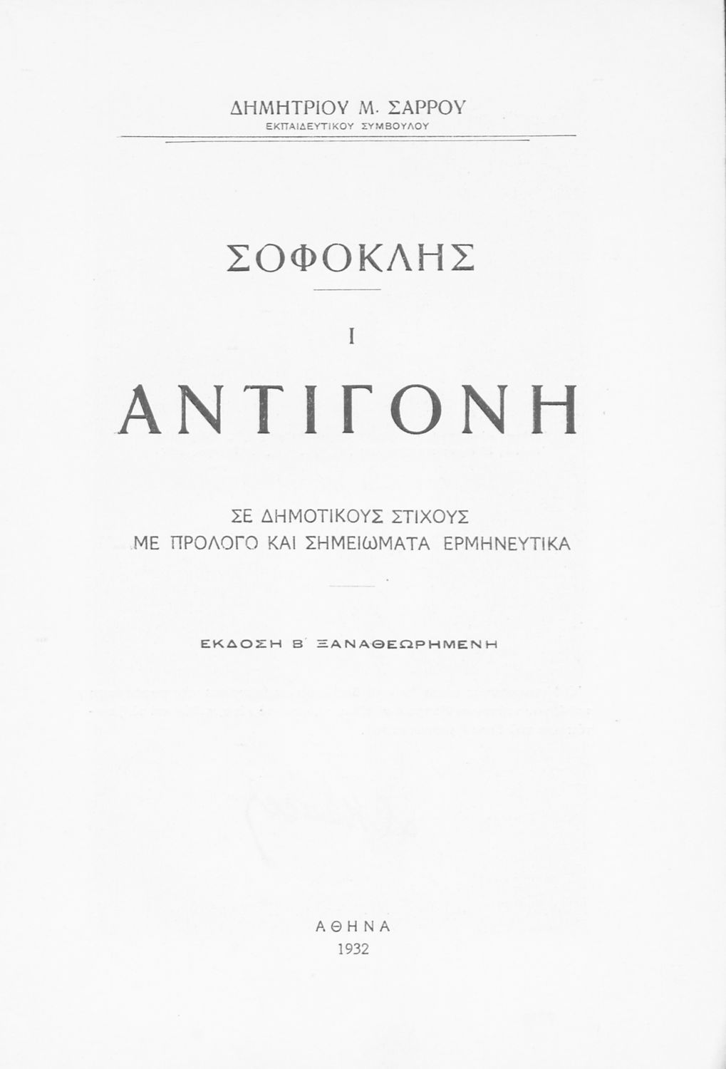 Σοφοκλής, Δημήτριος Μ. Σάρρος (μετάφραση)