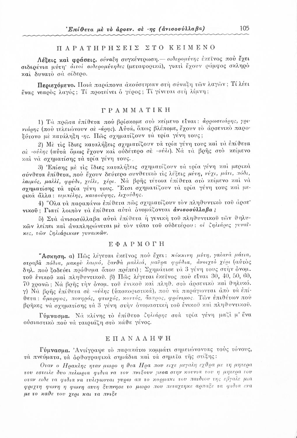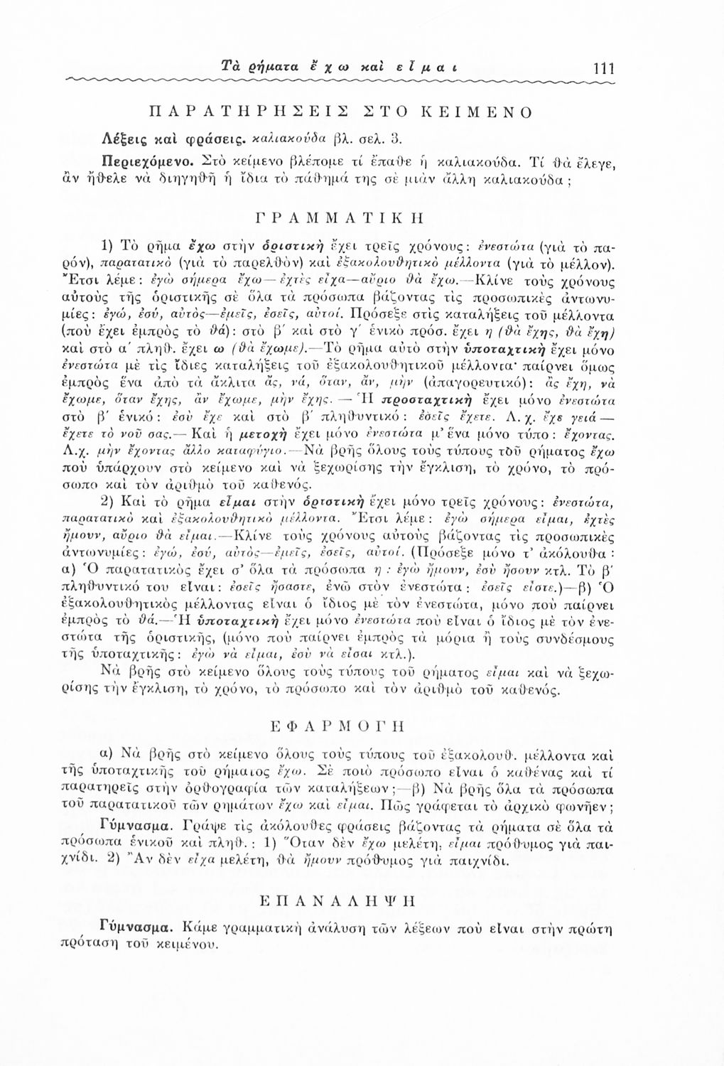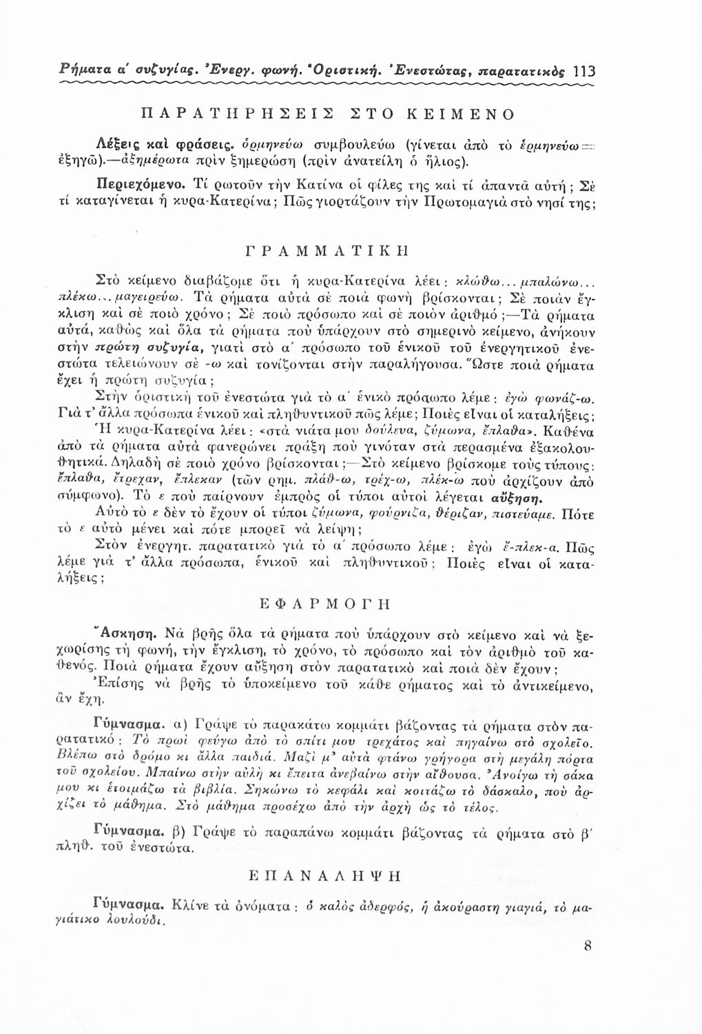 Μαθητικό βοήθημα Γλώσσας και Νέων Ελληνικών για μαθητές των Ε΄ και ΣΤ΄ Δημοτικού και Γυμνασίου που περιλαμβάνει πεζά και ποιήματα, προφορικές και γραπτές ασκήσεις, και βοηθητικούς γραμματικούς πίνακες για τη διδασκαλία των γραμματικών φαινομένων.