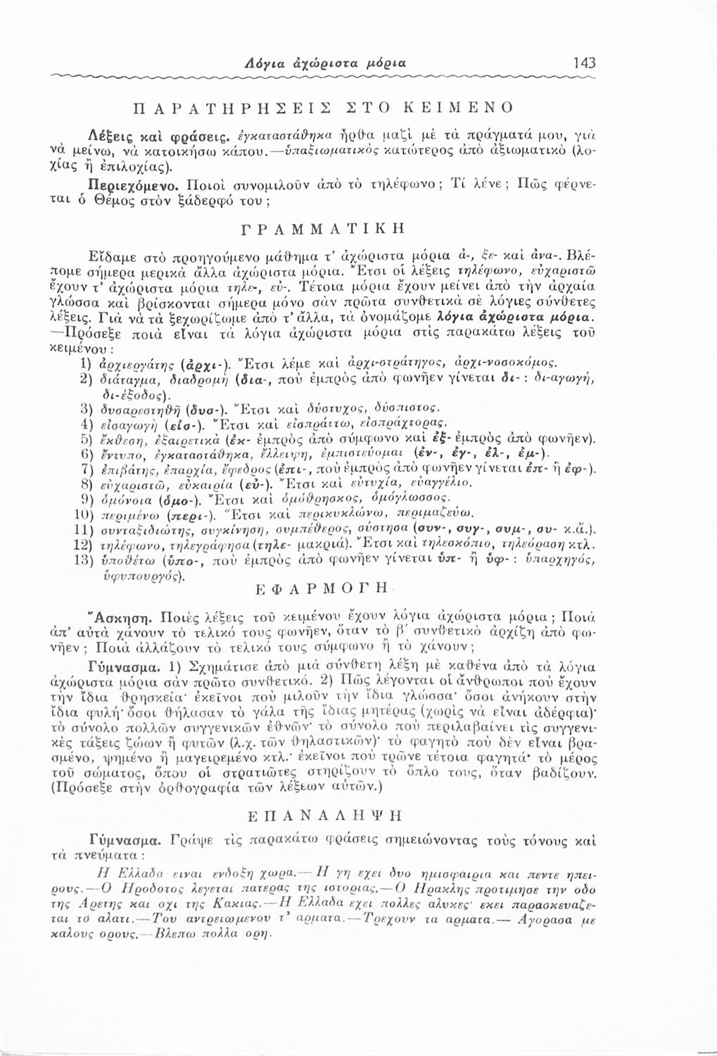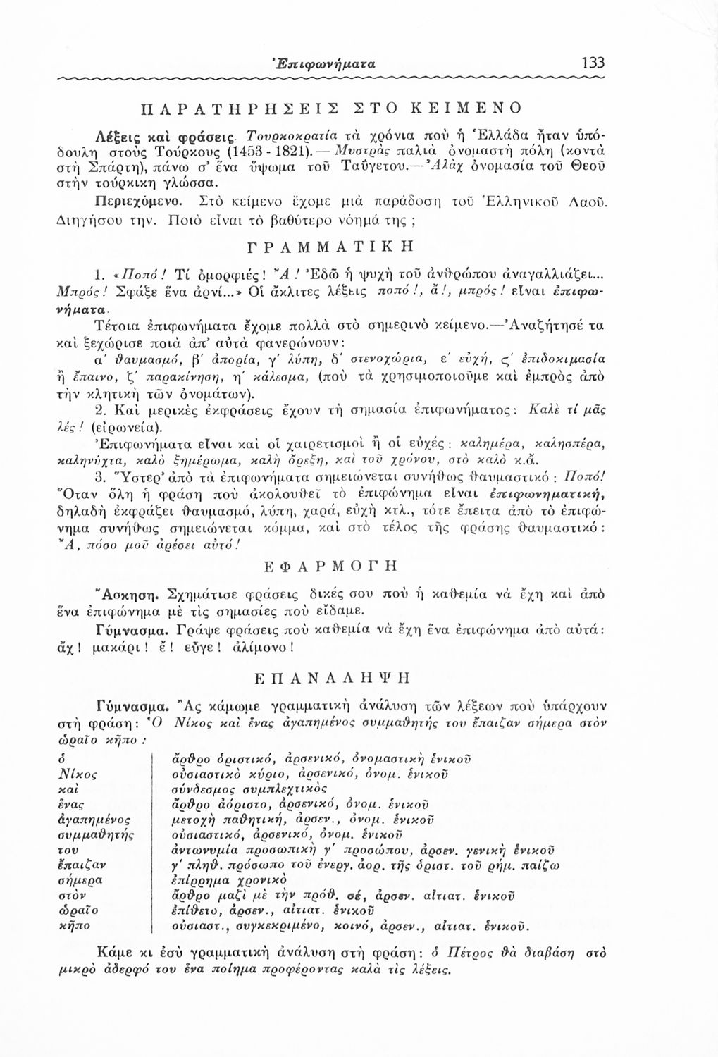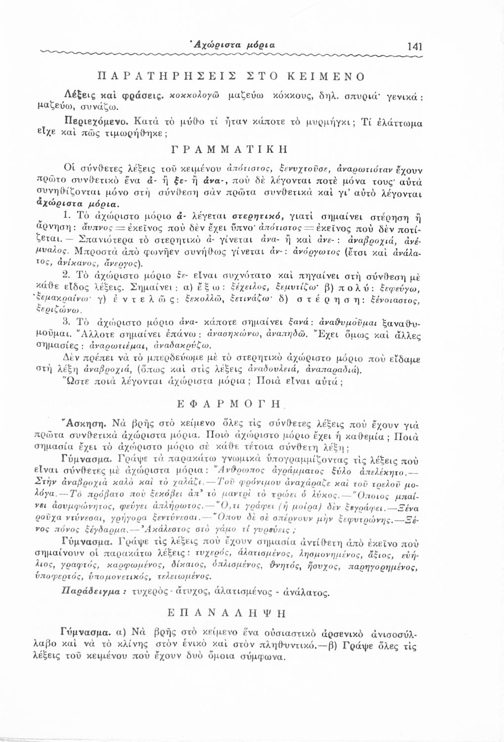 Μαθητικό βοήθημα Γλώσσας και Νέων Ελληνικών για μαθητές των Ε΄ και ΣΤ΄ Δημοτικού και Γυμνασίου που περιλαμβάνει πεζά και ποιήματα, προφορικές και γραπτές ασκήσεις, και βοηθητικούς γραμματικούς πίνακες για τη διδασκαλία των γραμματικών φαινομένων.