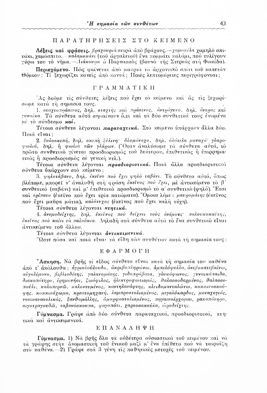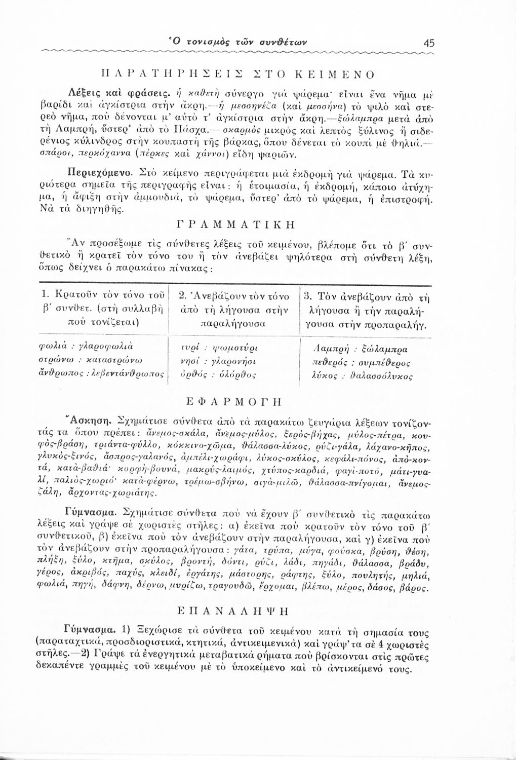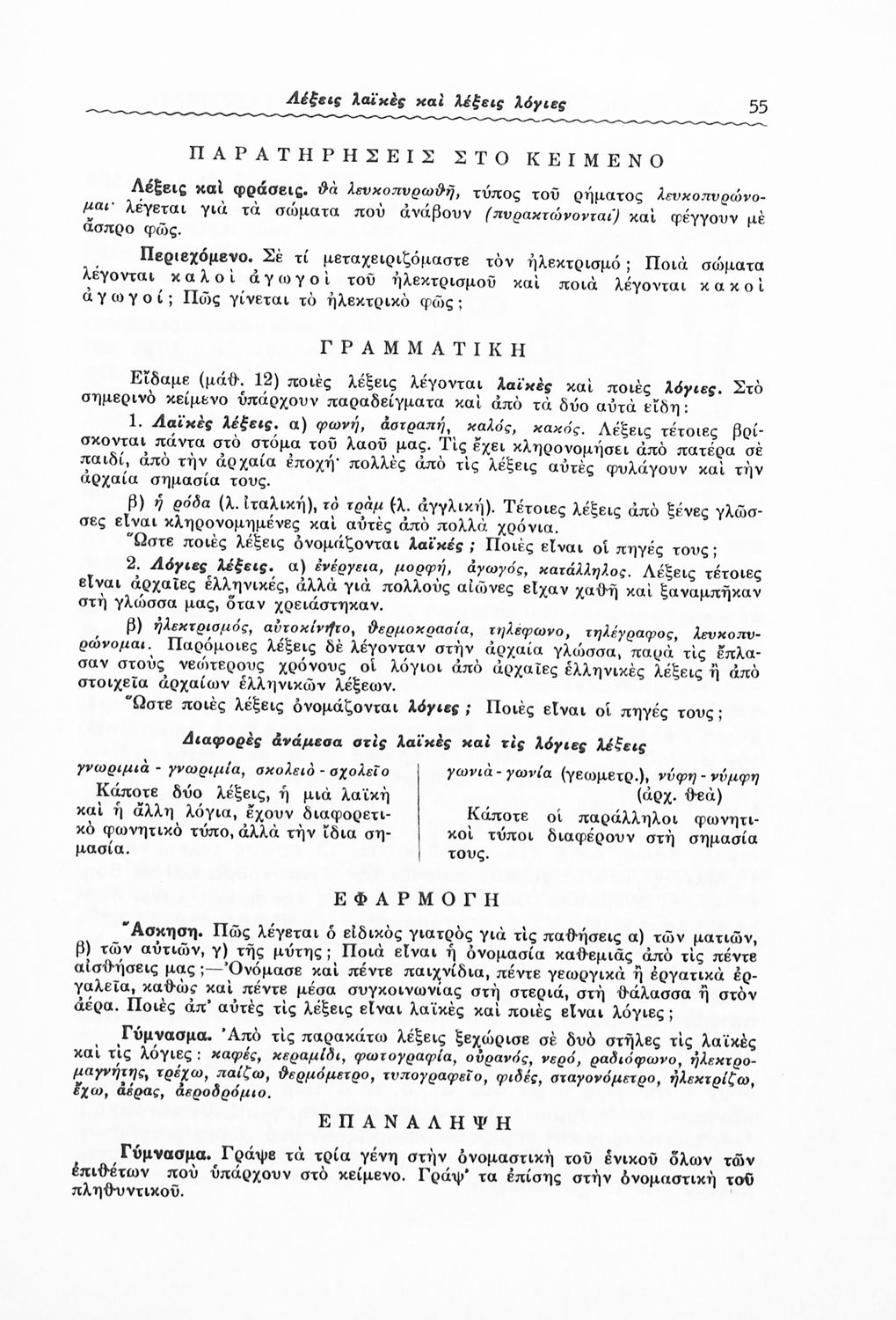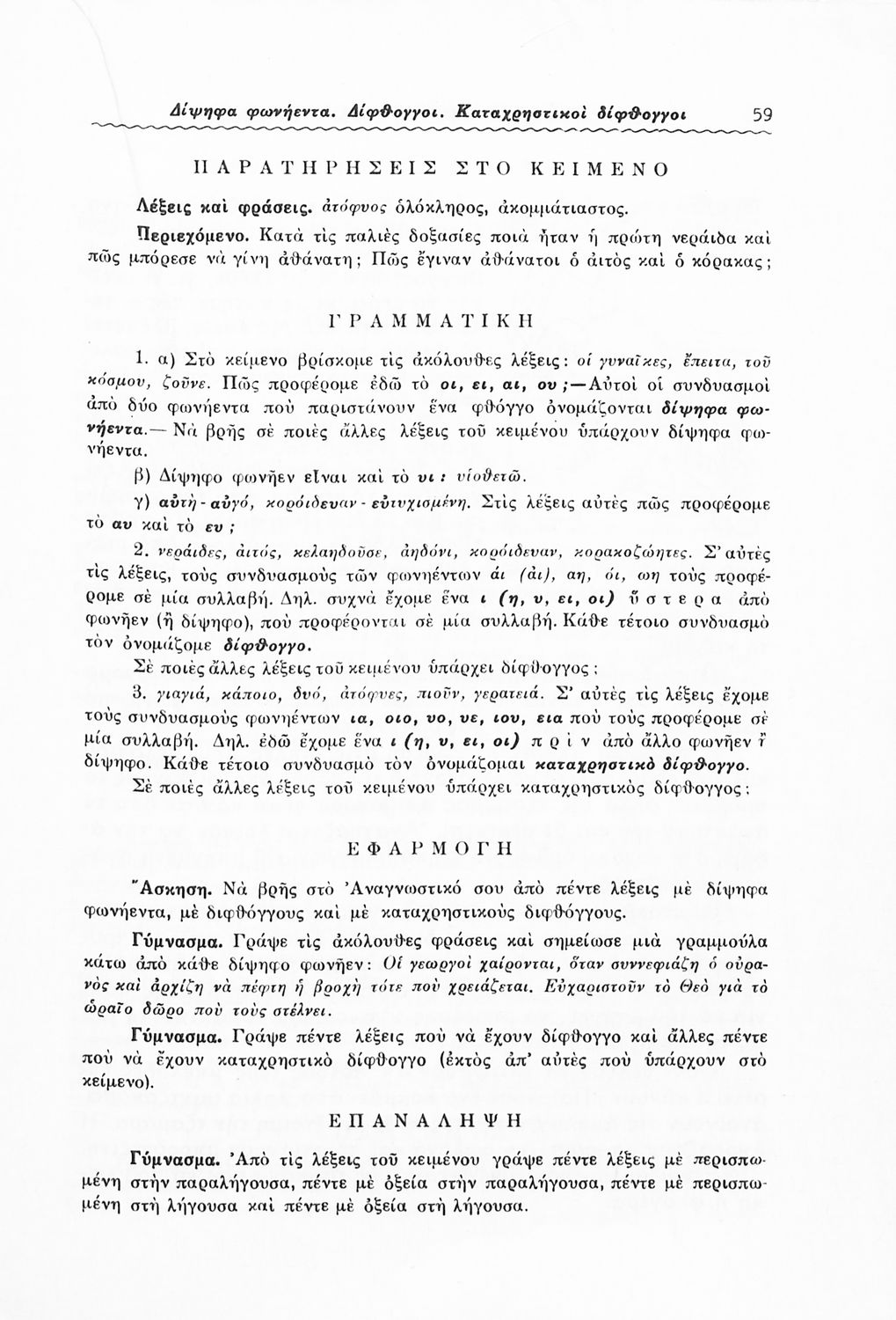 Μαθητικό βοήθημα Γλώσσας και Νέων Ελληνικών για μαθητές των Ε΄ και ΣΤ΄ Δημοτικού και Γυμνασίου που περιλαμβάνει πεζά και ποιήματα, προφορικές και γραπτές ασκήσεις, και βοηθητικούς γραμματικούς πίνακες για τη διδασκαλία των γραμματικών φαινομένων.