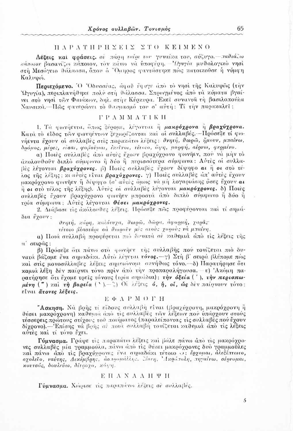 Μαθητικό βοήθημα Γλώσσας και Νέων Ελληνικών για μαθητές των Ε΄ και ΣΤ΄ Δημοτικού και Γυμνασίου που περιλαμβάνει πεζά και ποιήματα, προφορικές και γραπτές ασκήσεις, και βοηθητικούς γραμματικούς πίνακες για τη διδασκαλία των γραμματικών φαινομένων.