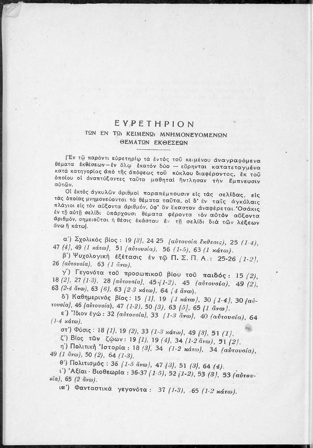Παιδαγωγικό βοήθημα για τους υποψηφίους των ανωτέρων και ανωτάτων σχολών και τους μαθητές Γυμνασίου που περιλαμβάνει θέματα εκθέσεων ιδεών ιστορικού και φιλοσοφικού περιεχομένου.