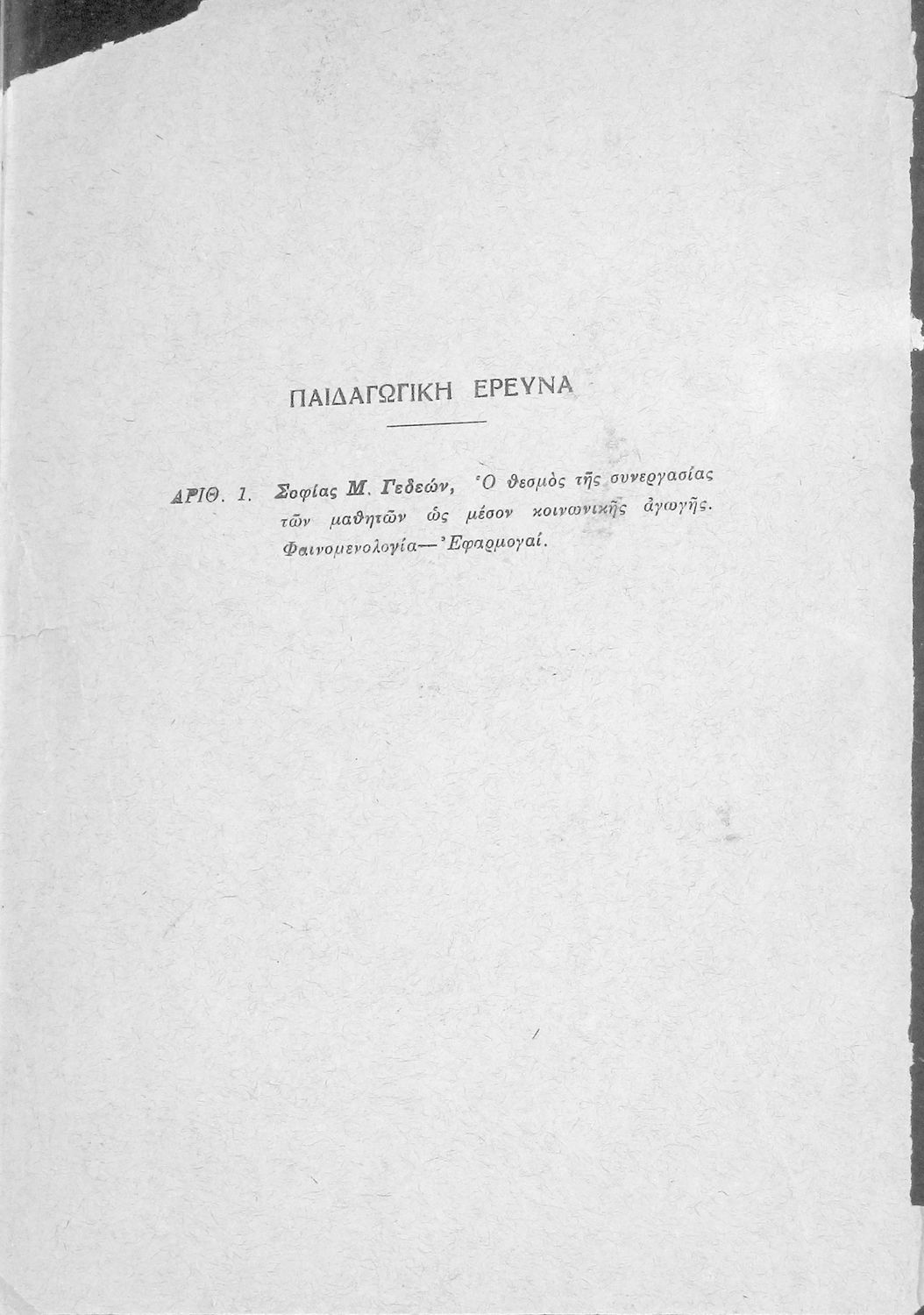Τίτλος: Συμβολή εις την διδακτικήν των εκθέσεων ιδεών εις τα σχολεία Μ. Εκπαιδεύσεως (συστηματική παιδαγωγική έρευνα)