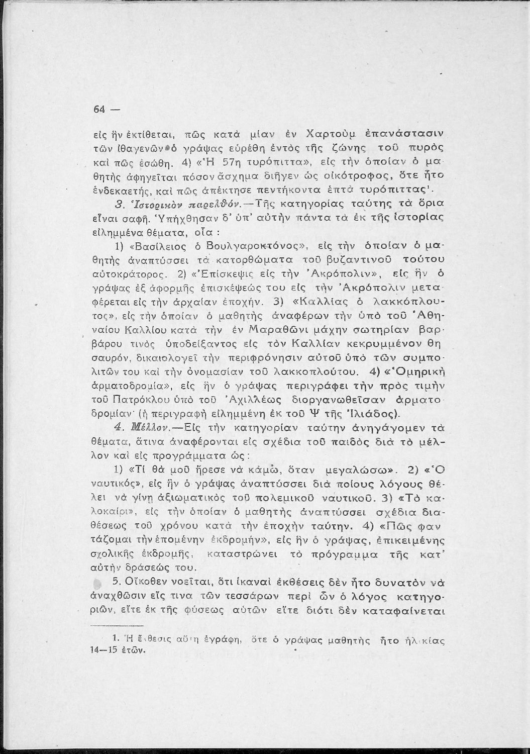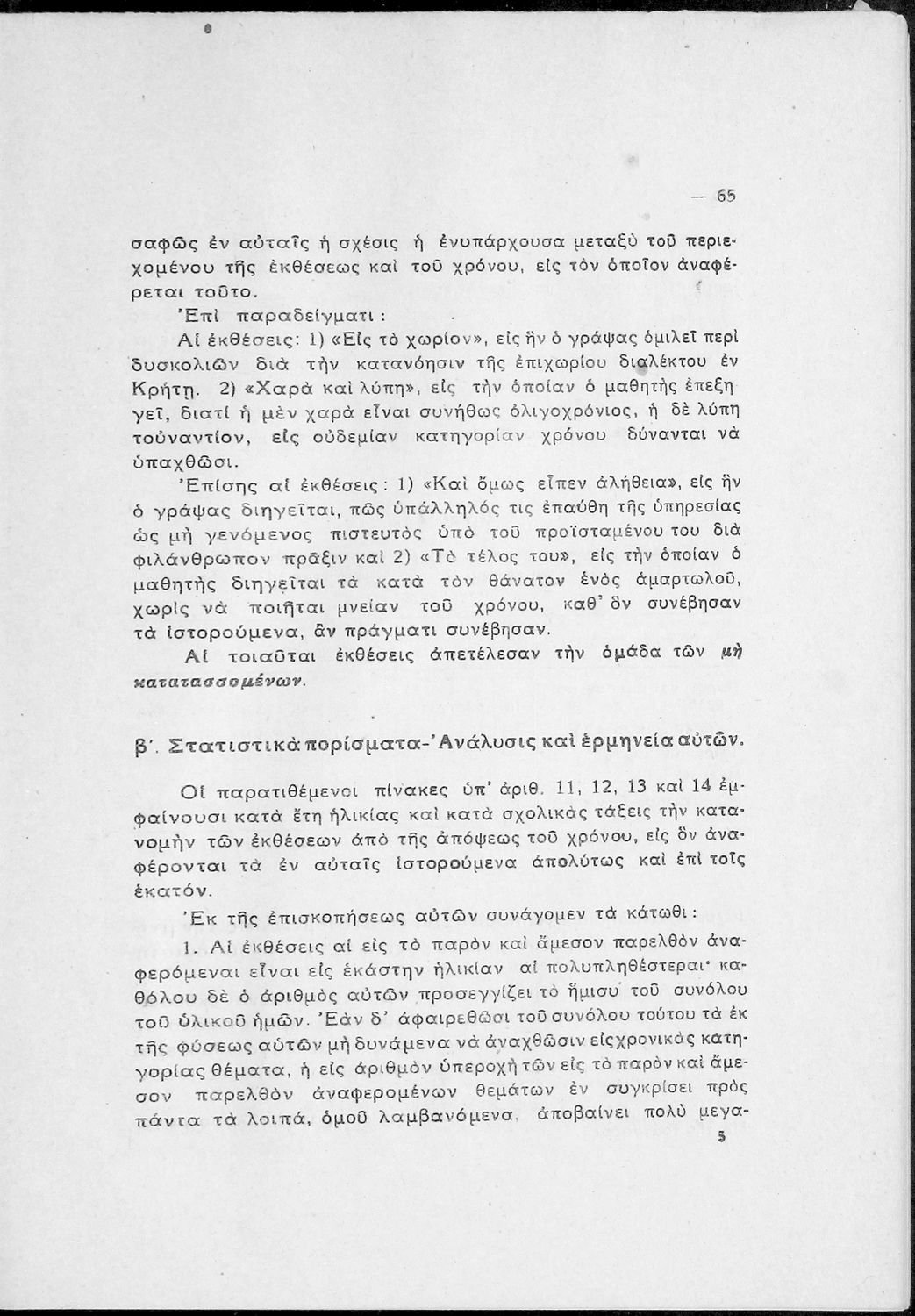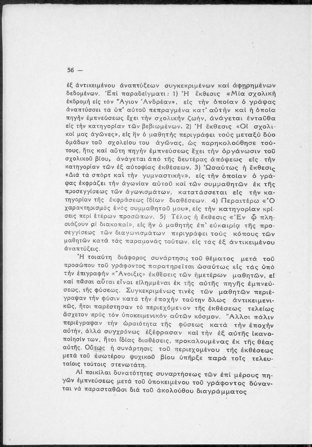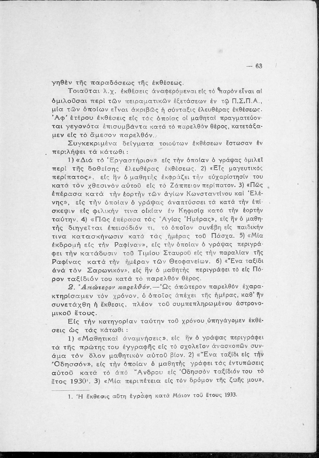 Διδακτορική διατριβή που υποβλήθηκε στη Φιλοσοφική Σχολή Αθηνών και πραγματεύεται τις εκθέσεις ιδεών των μαθητών. Ο συγγραφέας ήταν καθηγητής του Πειραματικού Σχολείου Πανεπιστημίου Αθηνών.