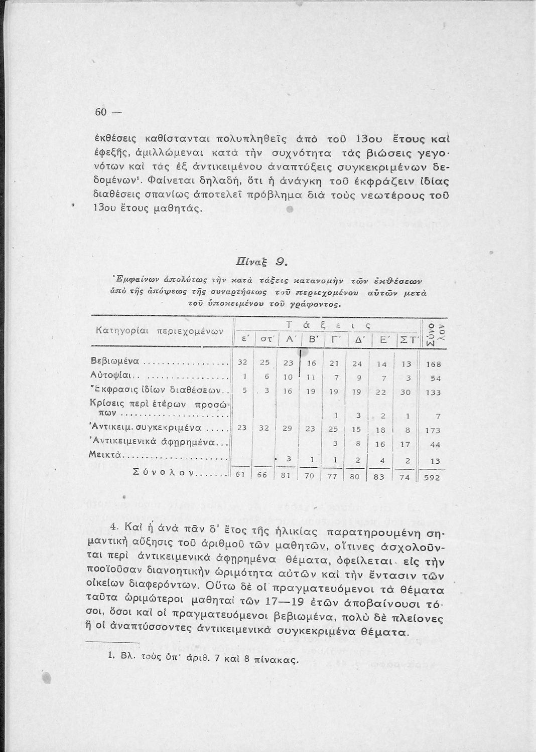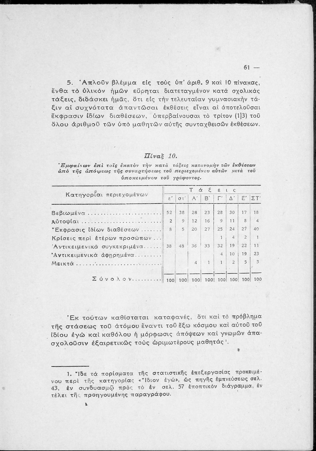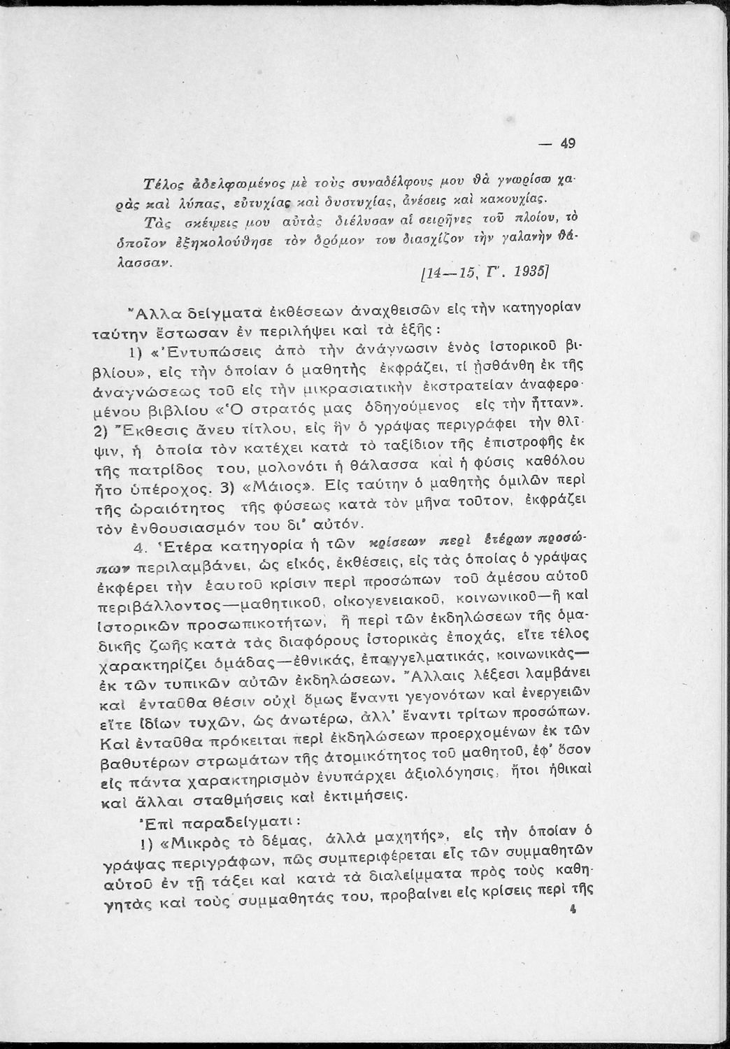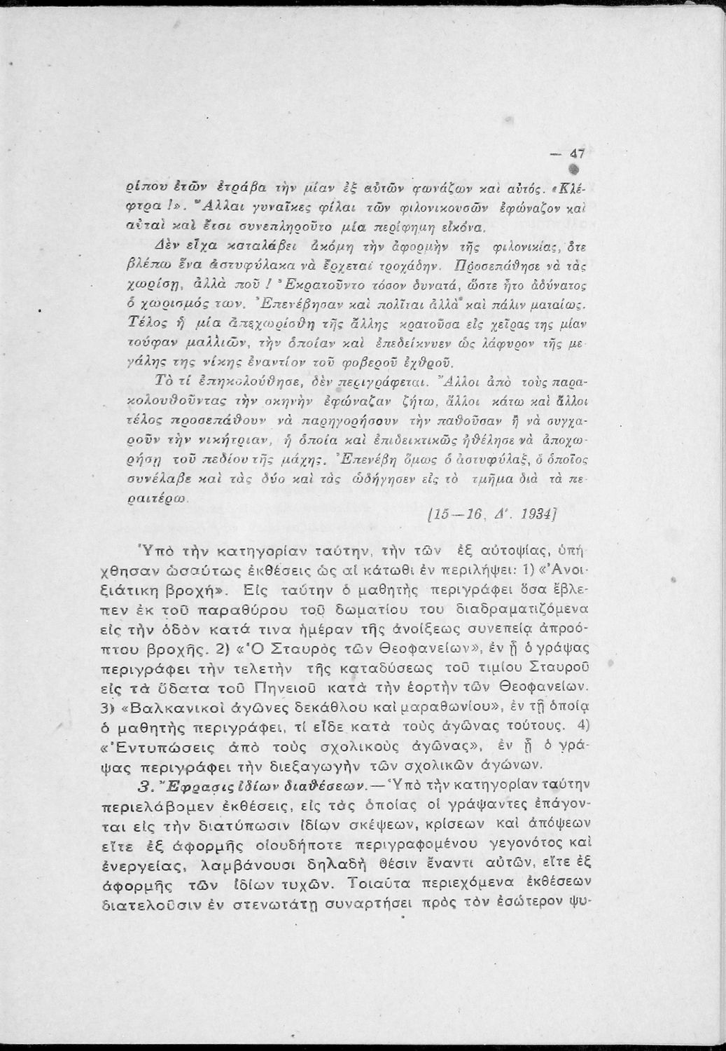 Διδακτορική διατριβή που υποβλήθηκε στη Φιλοσοφική Σχολή Αθηνών και πραγματεύεται τις εκθέσεις ιδεών των μαθητών. Ο συγγραφέας ήταν καθηγητής του Πειραματικού Σχολείου Πανεπιστημίου Αθηνών.
