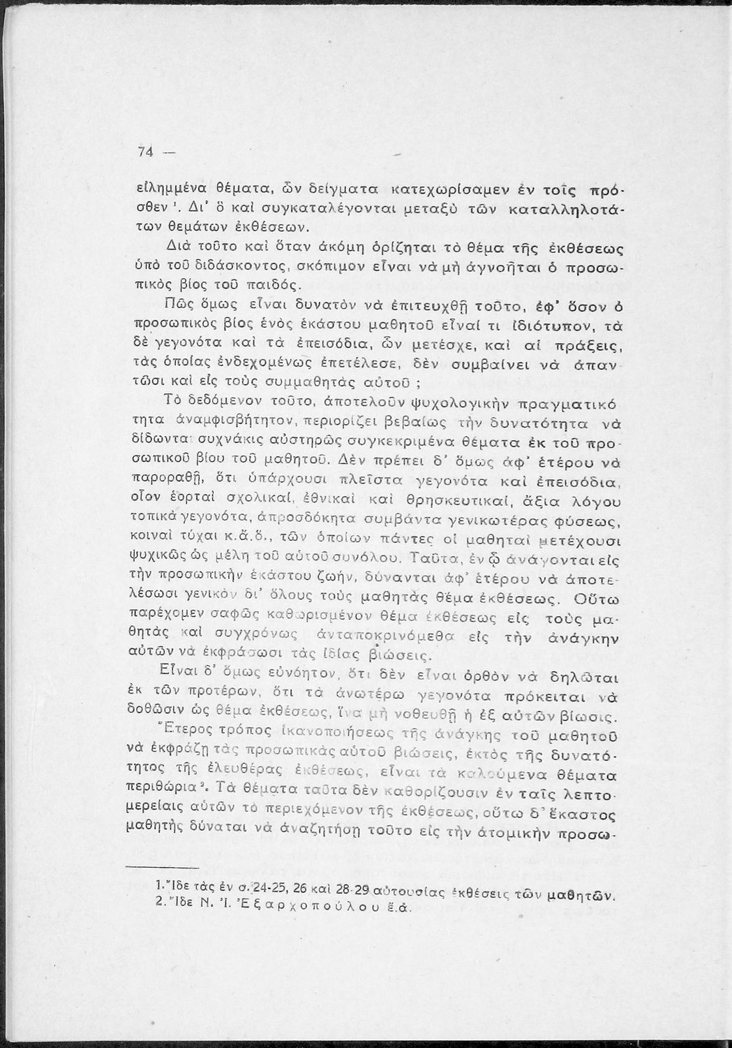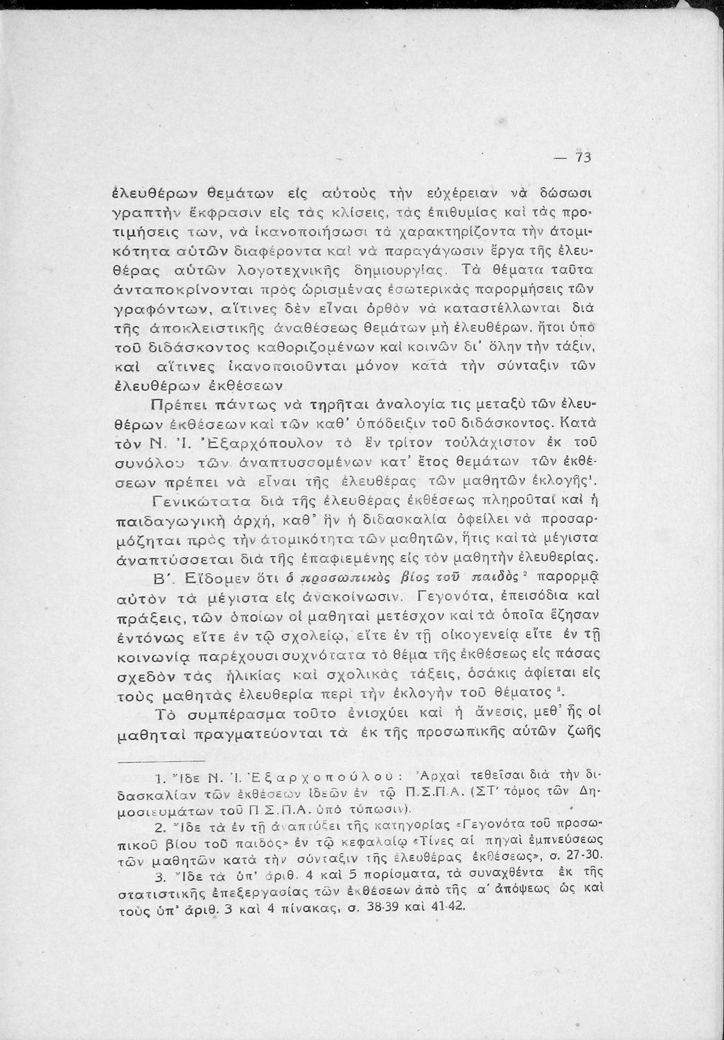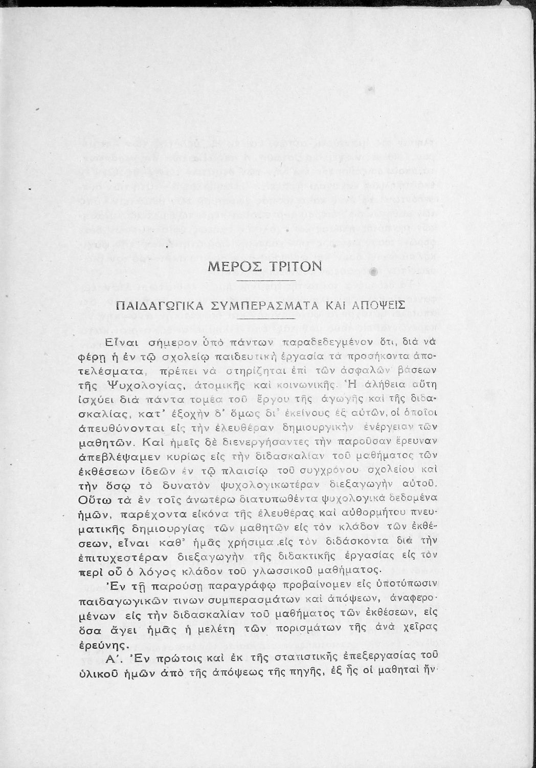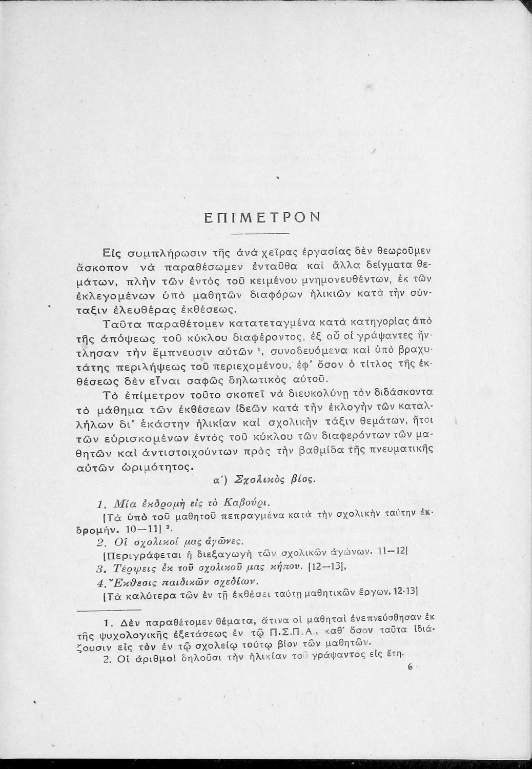 Διδακτορική διατριβή που υποβλήθηκε στη Φιλοσοφική Σχολή Αθηνών και πραγματεύεται τις εκθέσεις ιδεών των μαθητών. Ο συγγραφέας ήταν καθηγητής του Πειραματικού Σχολείου Πανεπιστημίου Αθηνών.