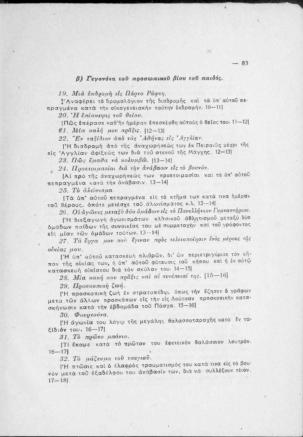 Βαθμίδα εκπαίδευσης: Δευτεροβάθμια Μάθημα: Νέα Ελληνικά Γλώσσα: Καθαρεύουσα Παρουσίαση περιεχομένου: Διδακτορική διατριβή που υποβλήθηκε στη Φιλοσοφική Σχολή Αθηνών και πραγματεύεται τις εκθέσεις ιδεών των μαθητών. Ο συγγραφέας ήταν καθηγητής του Πειραματικού Σχολείου Πανεπιστημίου Αθηνών. |