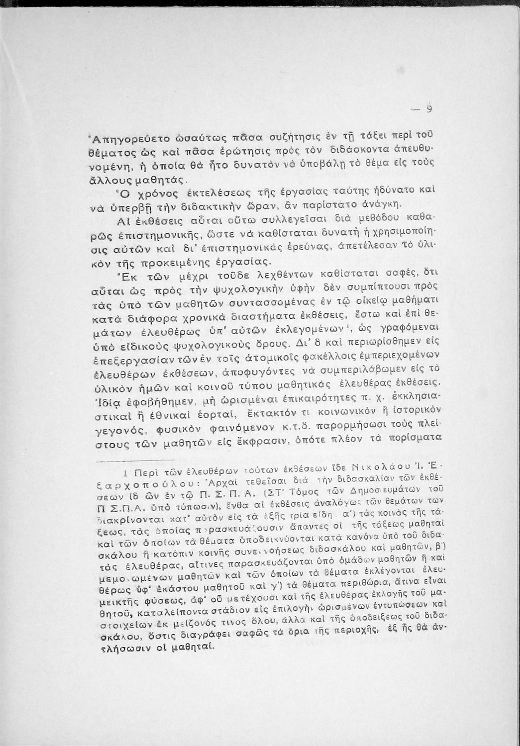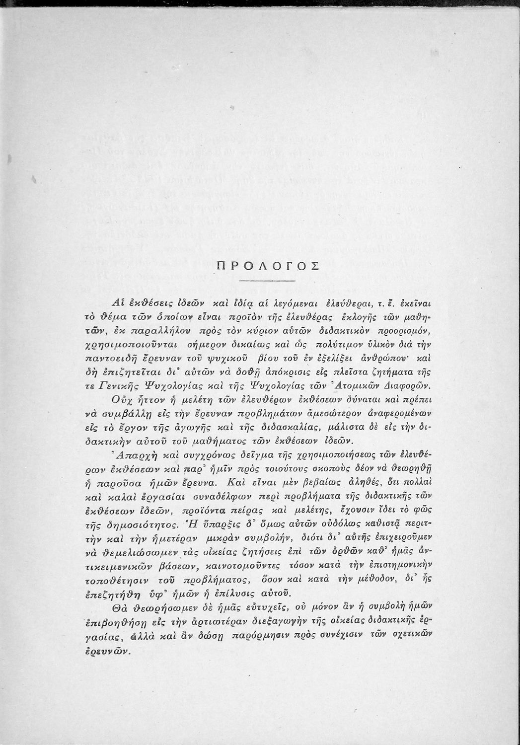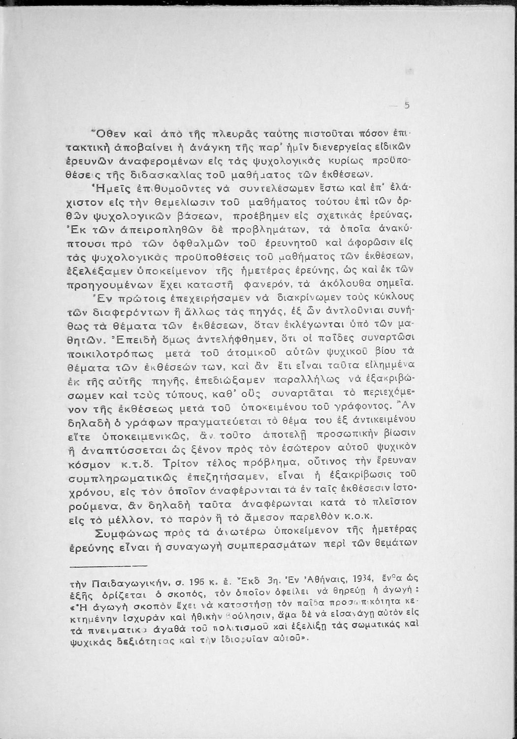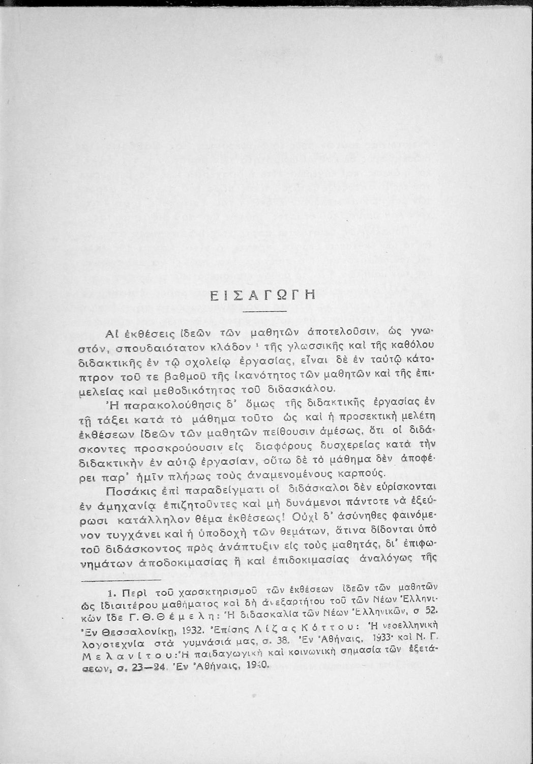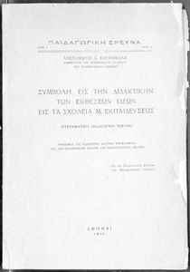 Διδακτορική διατριβή που υποβλήθηκε στη Φιλοσοφική Σχολή Αθηνών και πραγματεύεται τις εκθέσεις ιδεών των μαθητών. Ο συγγραφέας ήταν καθηγητής του Πειραματικού Σχολείου Πανεπιστημίου Αθηνών.