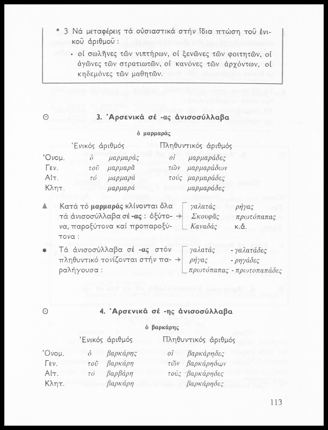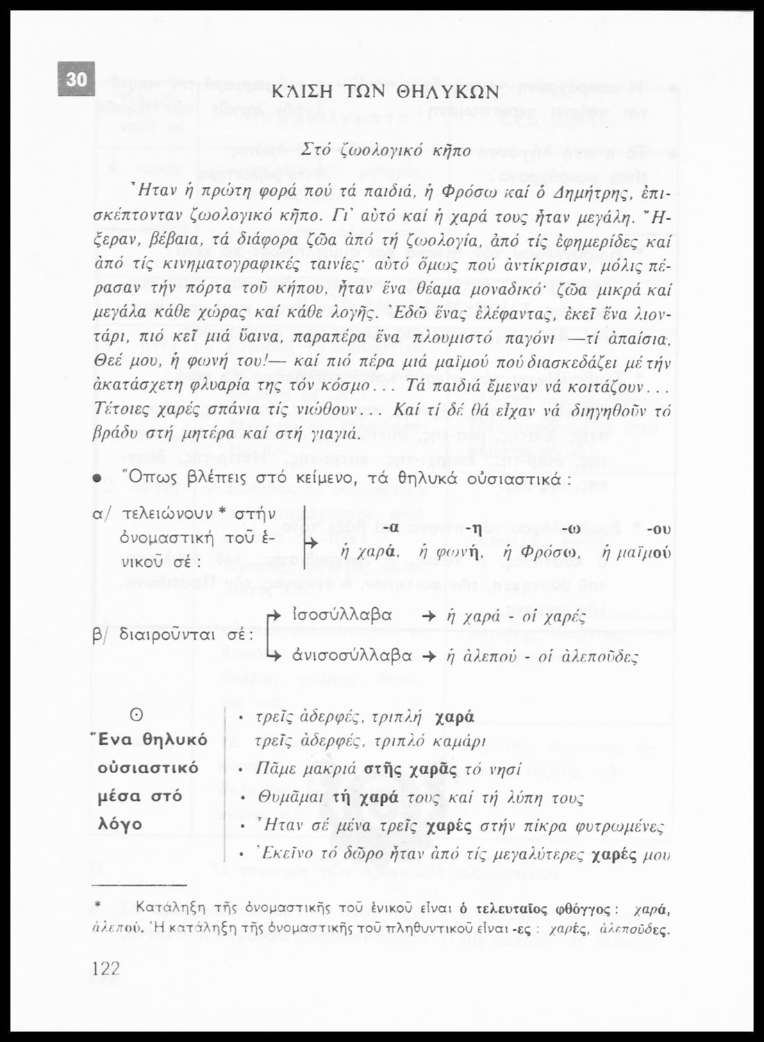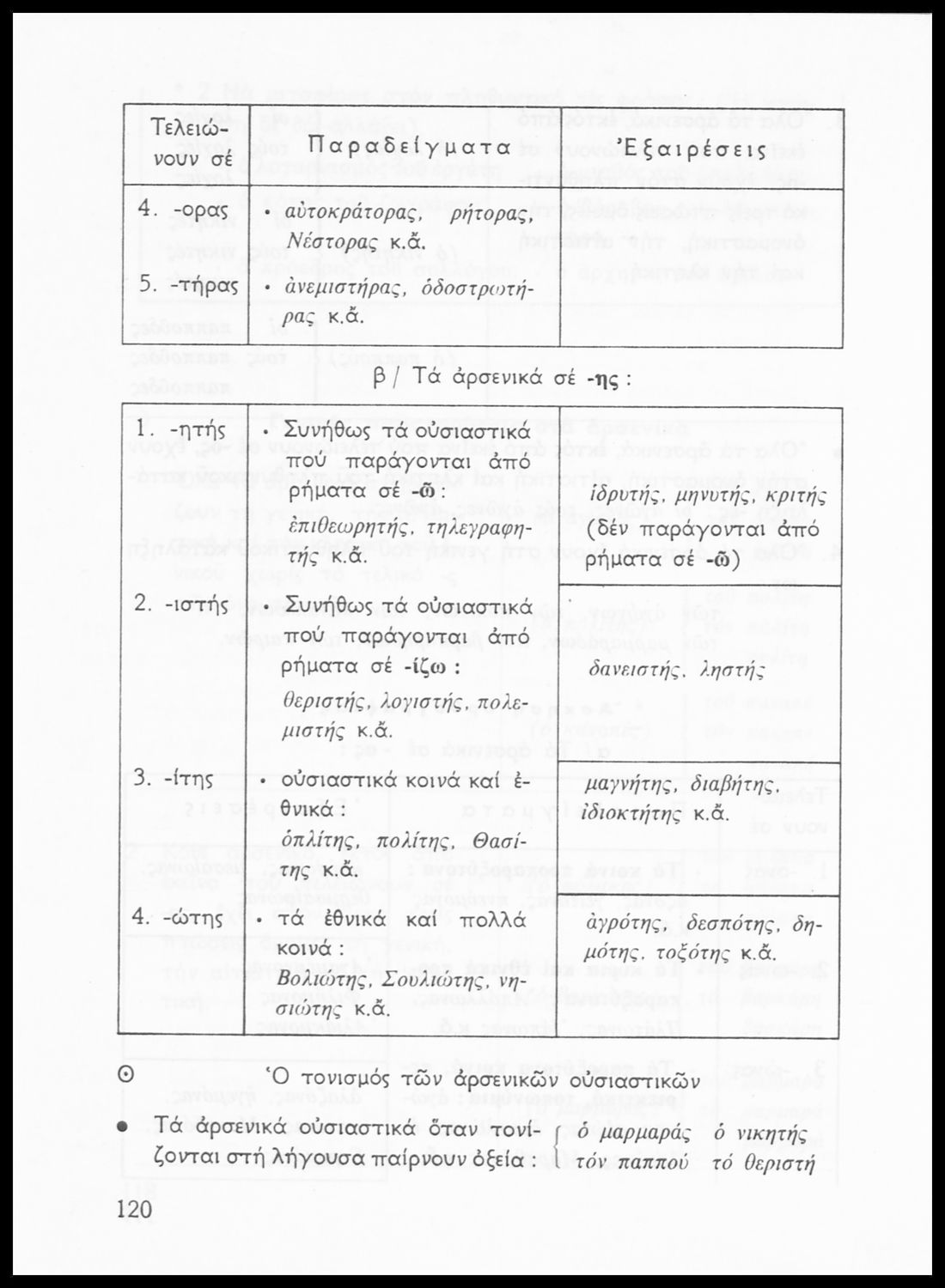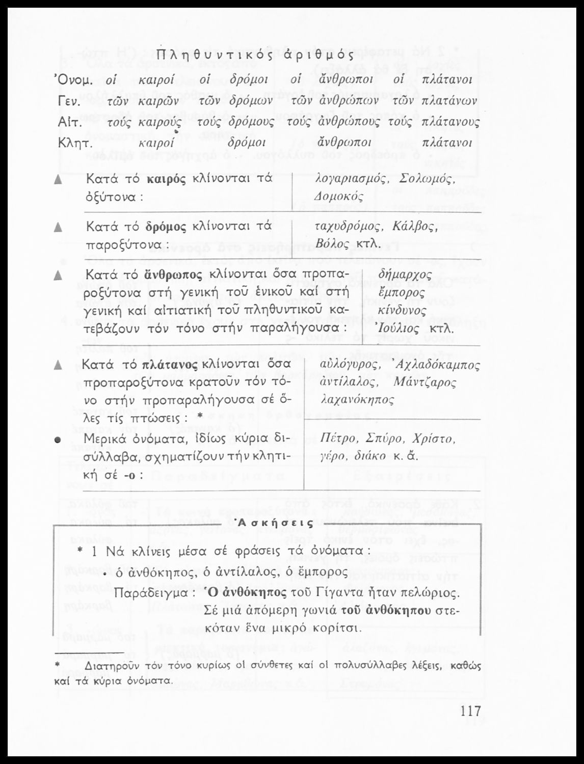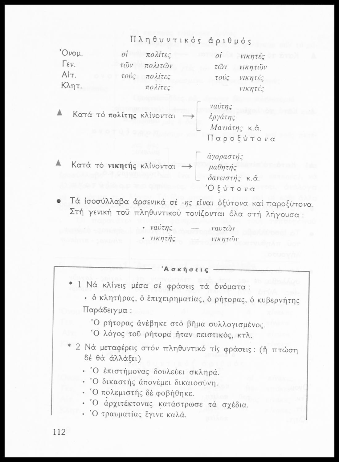 Σχολικό εγχειρίδιο της Ε΄ και ΣΤ΄ τάξης Δημοτικού για την γραμματική της ελληνικής γλώσσας με κανόνες και παραδείγματα. Στο επίμετρο υπάρχουν πίνακες με ανώμαλους σχηματισμούς ρημάτων.