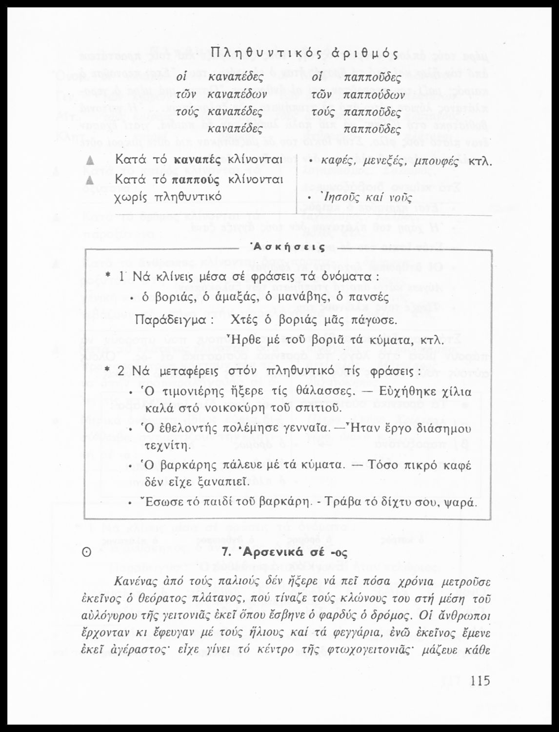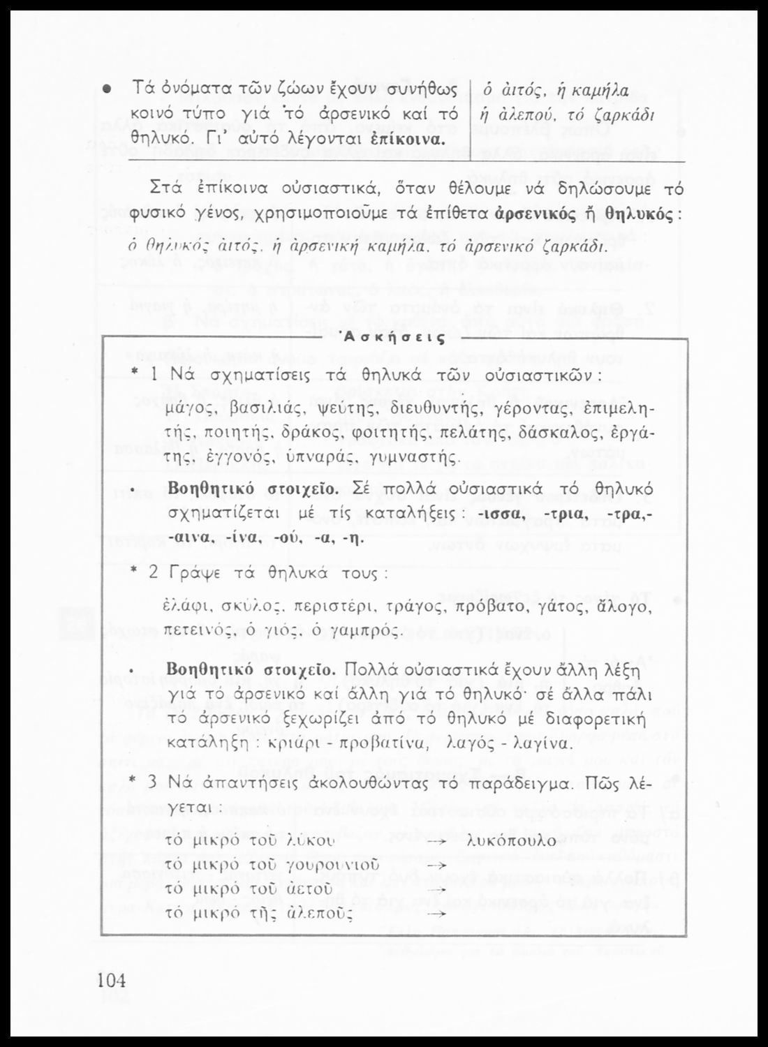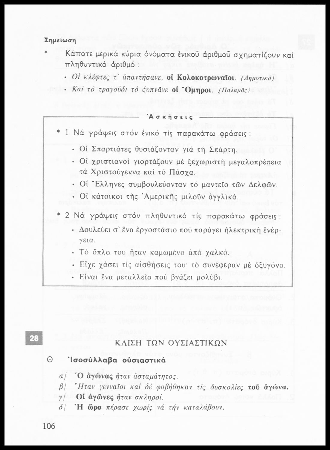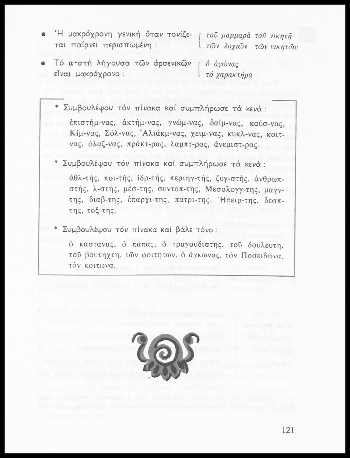Σχολικό εγχειρίδιο της Ε΄ και ΣΤ΄ τάξης Δημοτικού για την γραμματική της ελληνικής γλώσσας με κανόνες και παραδείγματα. Στο επίμετρο υπάρχουν πίνακες με ανώμαλους σχηματισμούς ρημάτων.