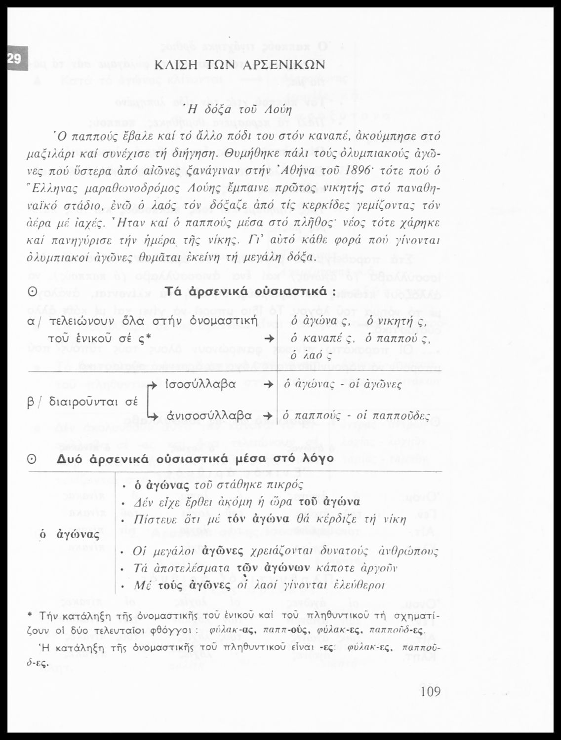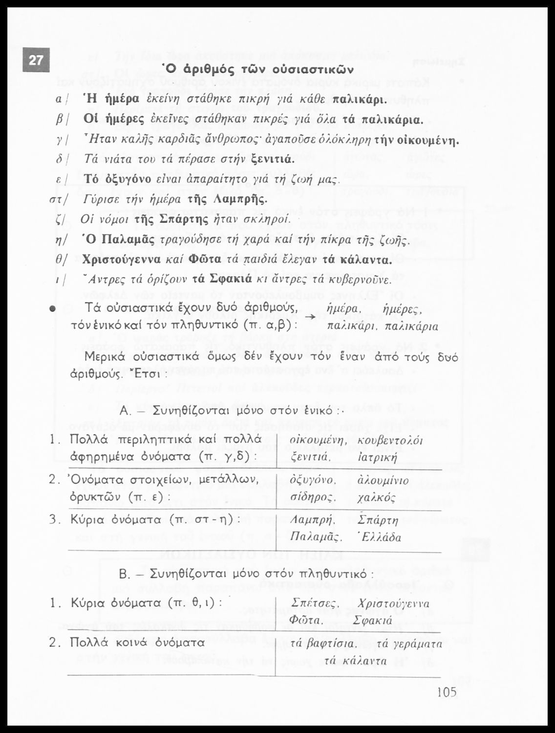 Σχολικό εγχειρίδιο για την Ε΄ και ΣΤ΄ τάξη Δημοτικού με γραμματικούς κανόνες και παραδείγματα για τα κλιτά και άκλιτα μέρη του λόγου.