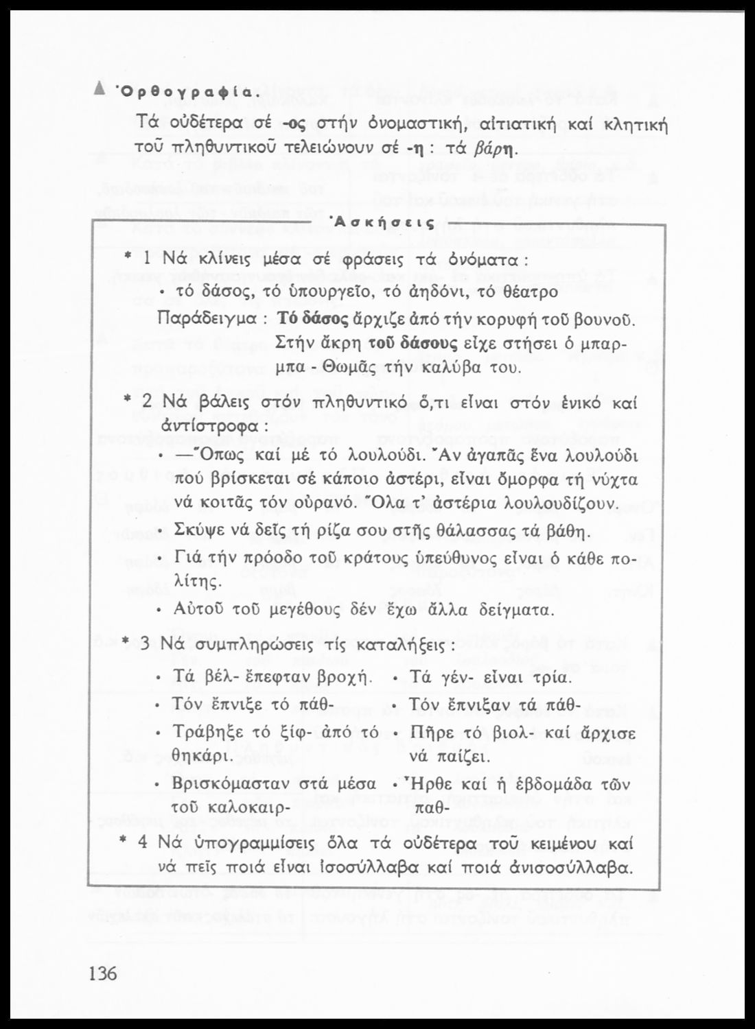 Κωδικός αναγνώρισης: 05-00175 Τίτλος: Νεοελληνική γραμματική της Ε΄ και ΣΤ΄ Δημοτικού Συγγραφέας: Χρ. Τσολάκης Εικονογράφος: Αναστ. Μουσταφέλλος Μέγεθος και υπόστρωμα: Σχολικό εγχειρίδιο, σκληρό εξώφυλλο, 303 σελίδες. Εξώφυλλο (έγχρωμο), σκίτσα (έγχρωμα). |