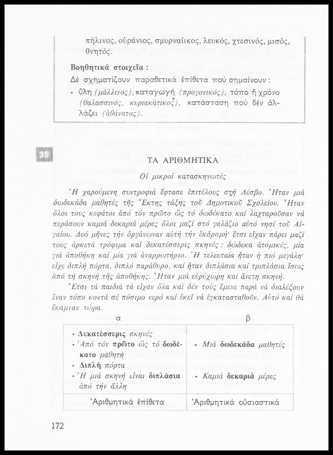 LDR 01271 2200229 4500 035 ## _a05-00175 040 ## _aΕργαστήρι Ιστορίας Ν.Ε. Εκπαίδευσης, Πανεπιστήμιο Ιωαννίνων 041 ## _ael 100 ## _aΧρ. Τσολάκης 110 ## _a175 245 0# _aΝεοελληνική γραμματική της Ε΄ και ΣΤ΄ Δημοτικού 250 ## _a1η Έκδοση 260 ## _aΑθήνα _bΟργανισμός Εκδόσεως Διδακτικών Βιβλίων _c1978 300 ## _a303 _bΕξώφυλλο (έγχρωμο), Σκίτσα (έγχρωμα) 520 ## _aΓραμματική της δημοτικής για τους μαθητές της Ε΄ και ΣΤ΄ Δημοτικού που εστιάζει στις προτάσεις, στους φθόγγους και στα κλιτά και άκλιτα μέρη του λόγου. 521 ## _aΕ' Δημοτικού / ΣΤ' Δημοτικού 522 ## _aΕλλάδα 546 ## _aΔημοτική 563 ## _aΣκληρό Εξώφυλλο 583 ## _a3060/8-6-1978 _c1978 650 #4 _aΓράμματα _aΛέξεις _aΝεοελληνική γραμματική _aΤύποι _aΦθόγγοι 700 ## _aΑναστ. Μουσταφέλλος
