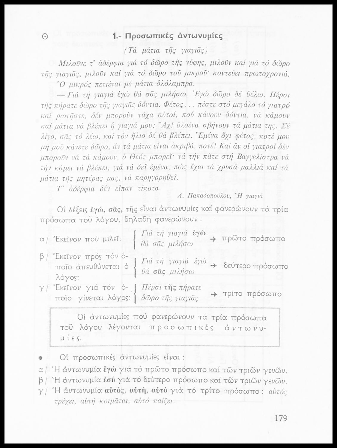 Κωδικός αναγνώρισης: 05-00175 Τίτλος: Νεοελληνική γραμματική της Ε΄ και ΣΤ΄ Δημοτικού Συγγραφέας: Χρ. Τσολάκης Εικονογράφος: Αναστ. Μουσταφέλλος Μέγεθος και υπόστρωμα: Σχολικό εγχειρίδιο, σκληρό εξώφυλλο, 303 σελίδες. Εξώφυλλο (έγχρωμο), σκίτσα (έγχρωμα). |