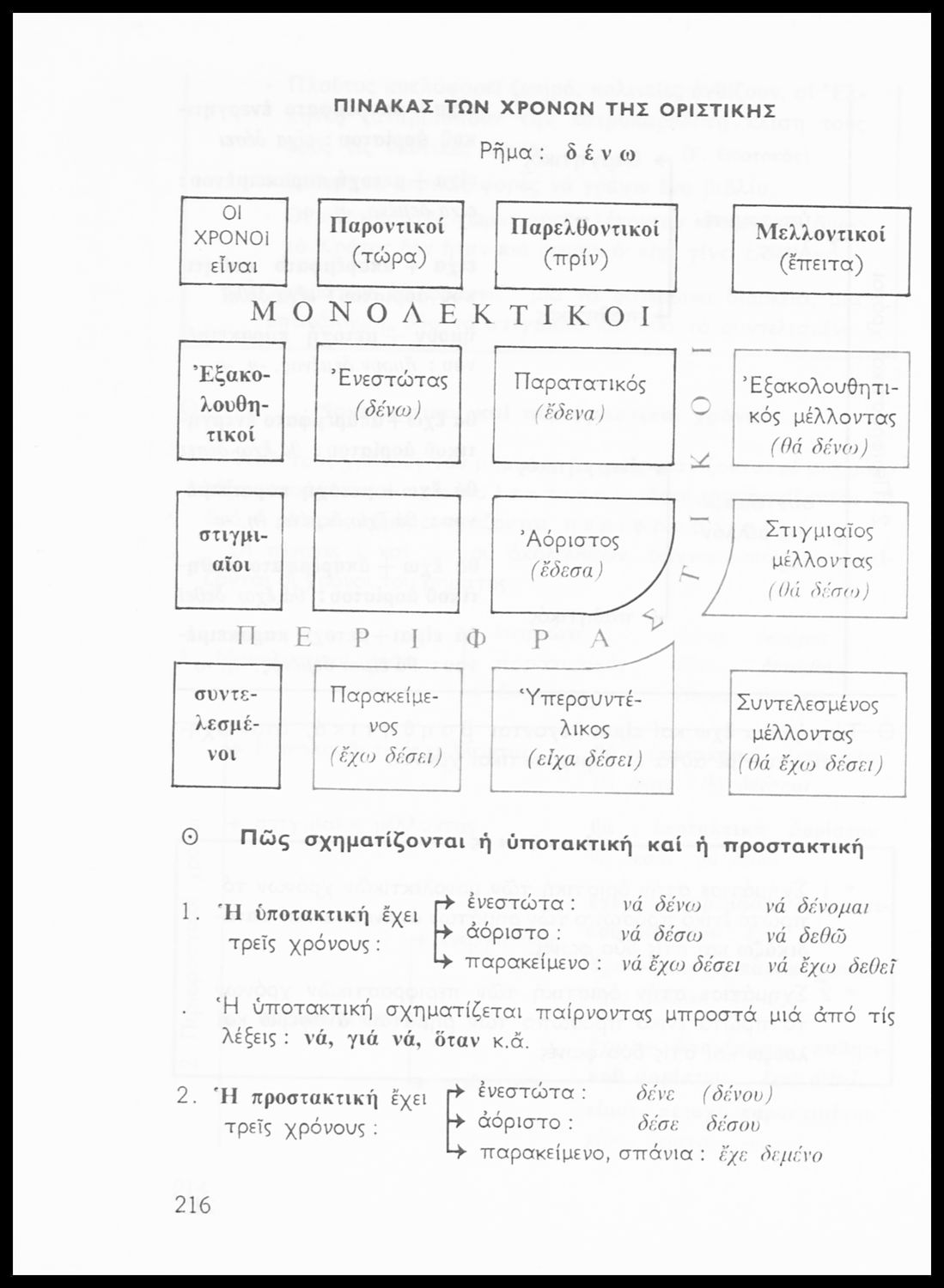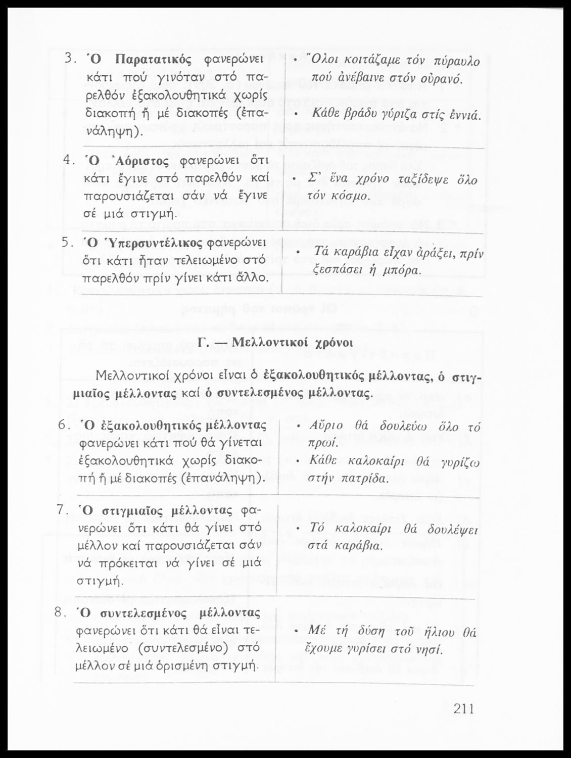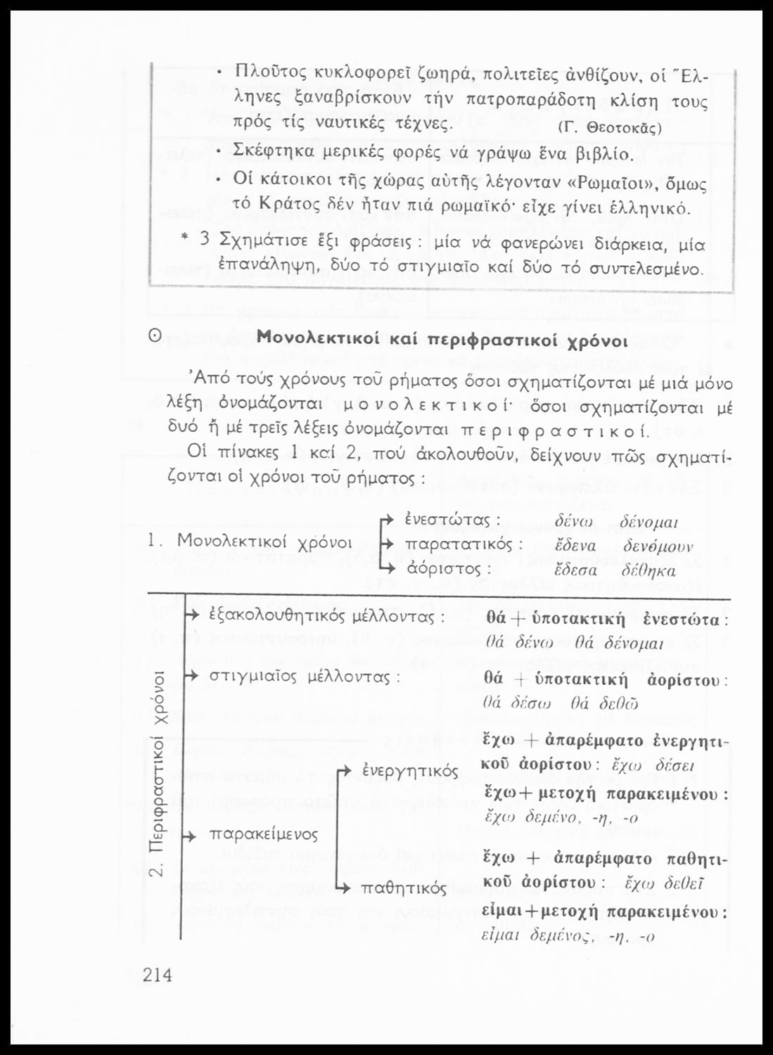 Σχολικό εγχειρίδιο της Ε΄ και ΣΤ΄ τάξης Δημοτικού για την γραμματική της ελληνικής γλώσσας με κανόνες και παραδείγματα. Στο επίμετρο υπάρχουν πίνακες με ανώμαλους σχηματισμούς ρημάτων.