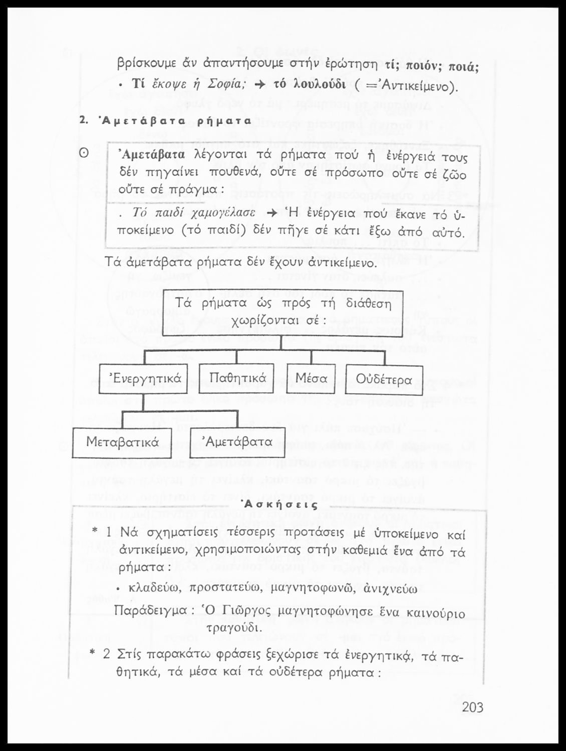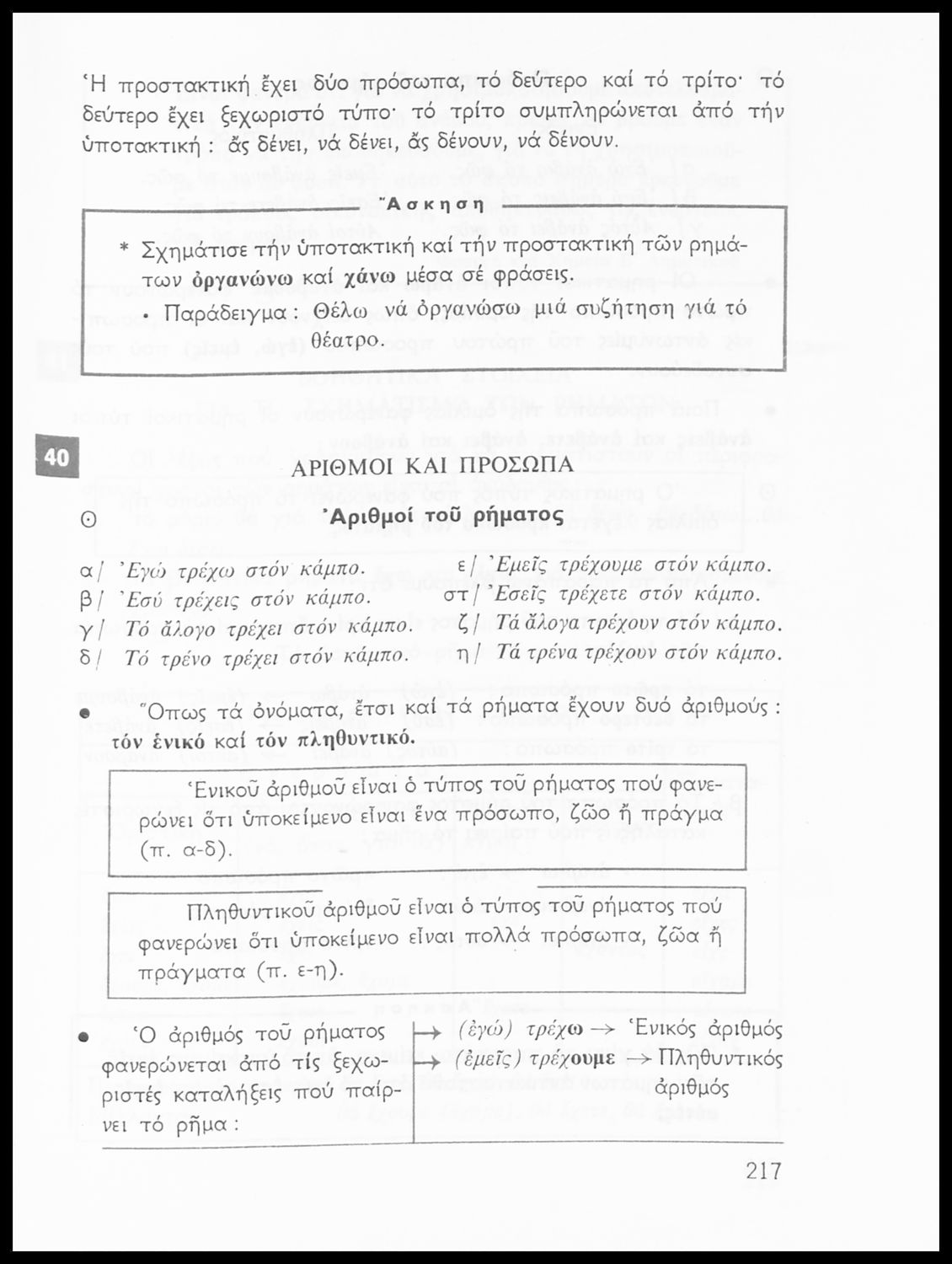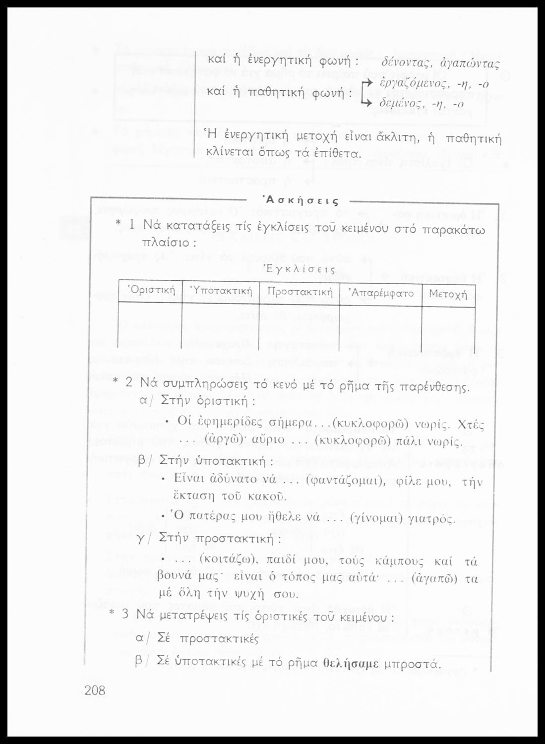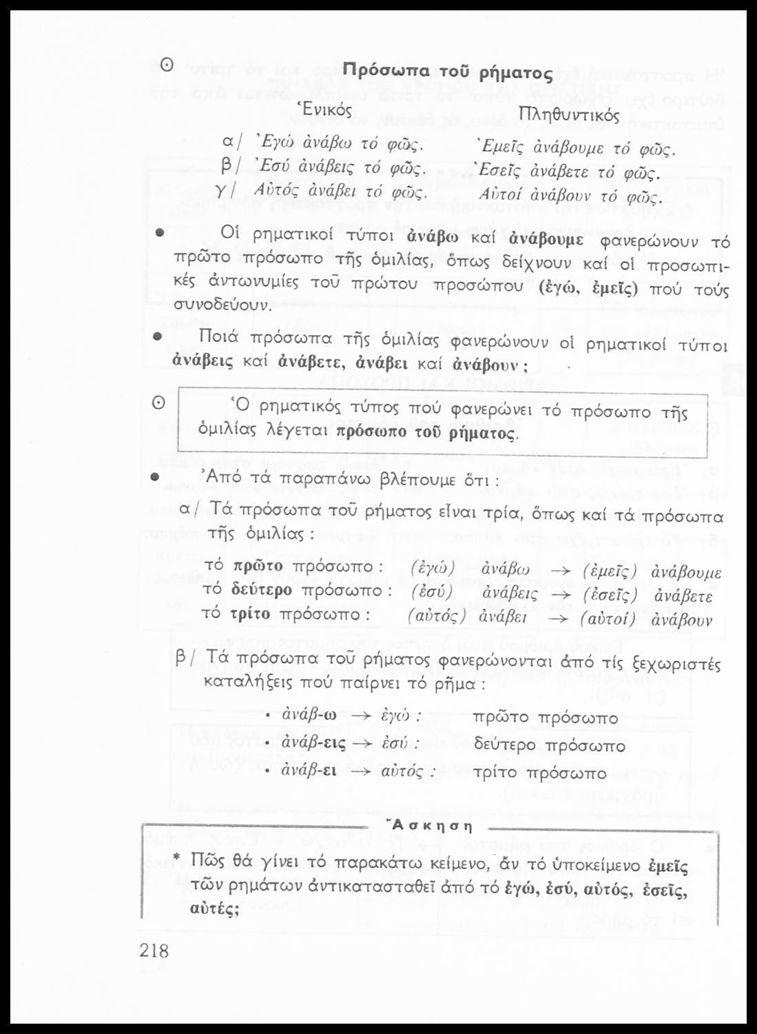 Σχολικό εγχειρίδιο της Ε΄ και ΣΤ΄ τάξης Δημοτικού για την γραμματική της ελληνικής γλώσσας με κανόνες και παραδείγματα. Στο επίμετρο υπάρχουν πίνακες με ανώμαλους σχηματισμούς ρημάτων.